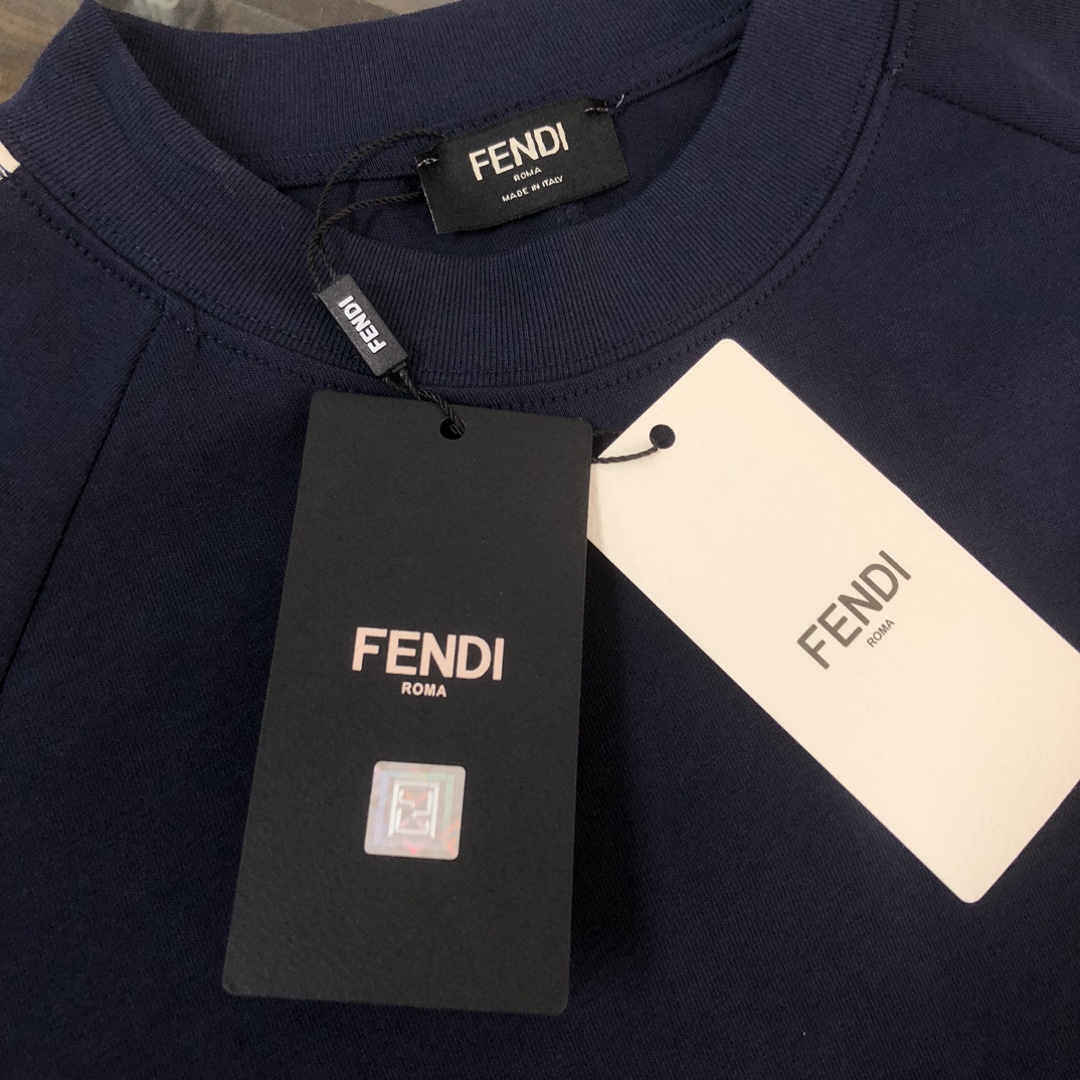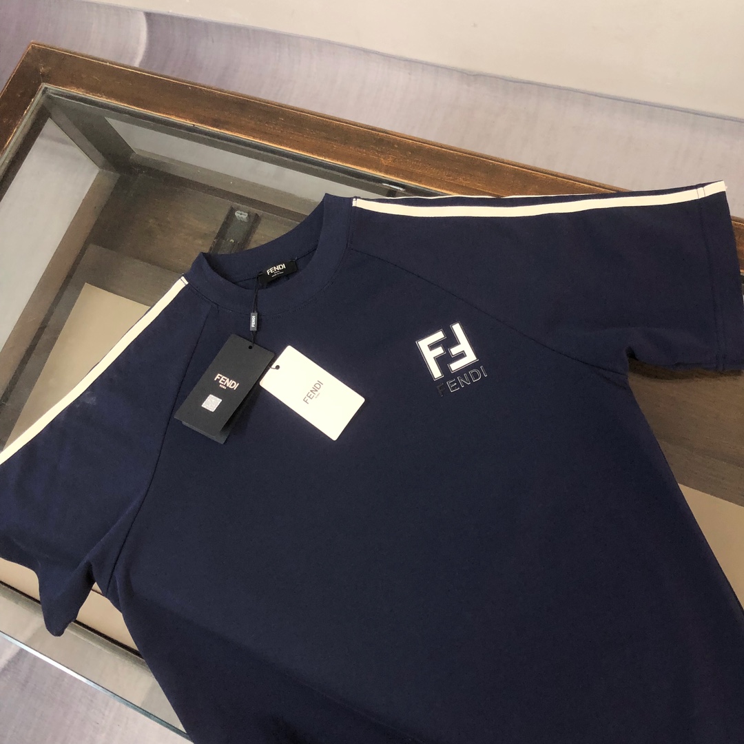 FENDI 2025 unisex casual set. Brand design, simple yet elegant. Comfortable, breathable fabric. Colors: Black, White, Light Gray, Navy. Sizes: S-XXL (runs large).