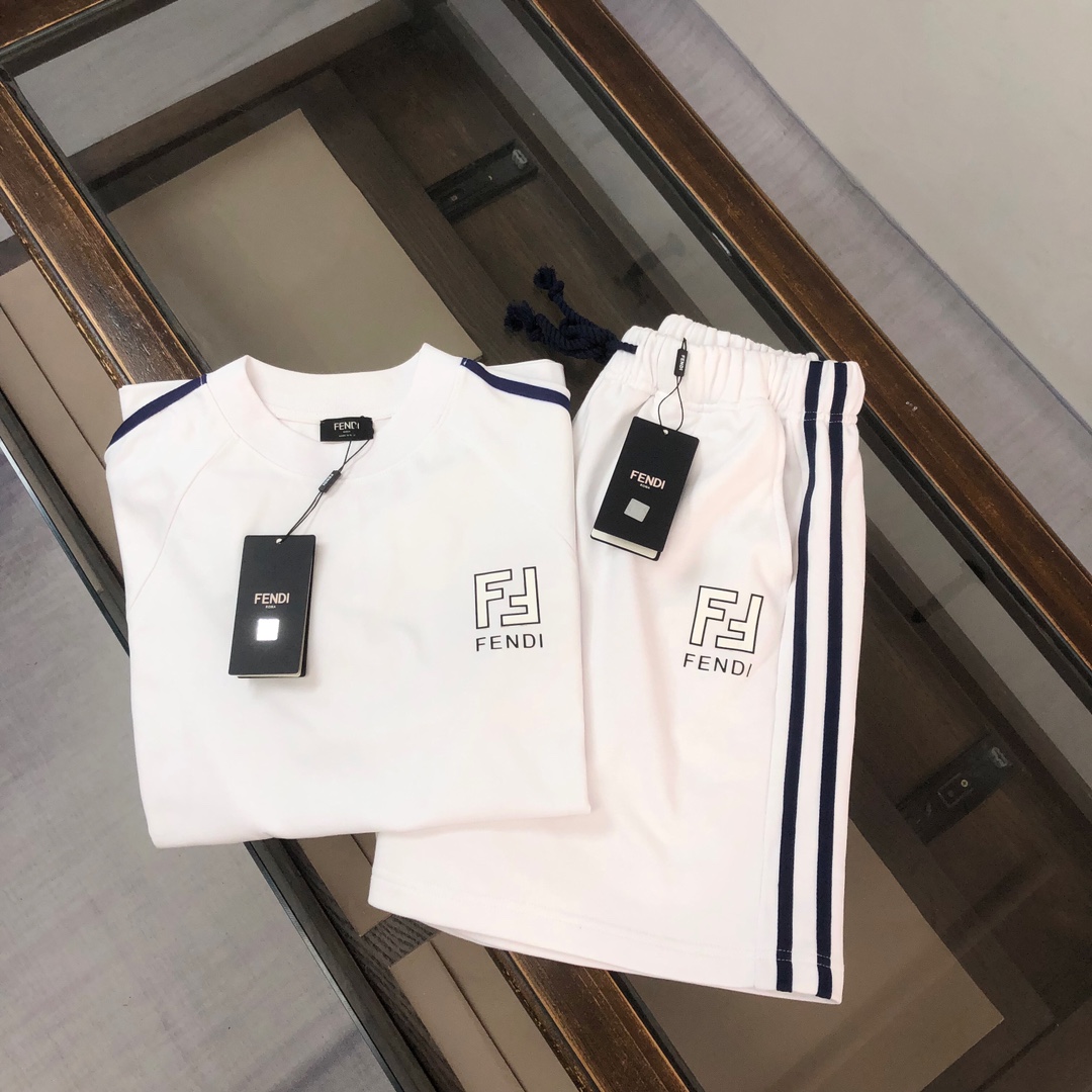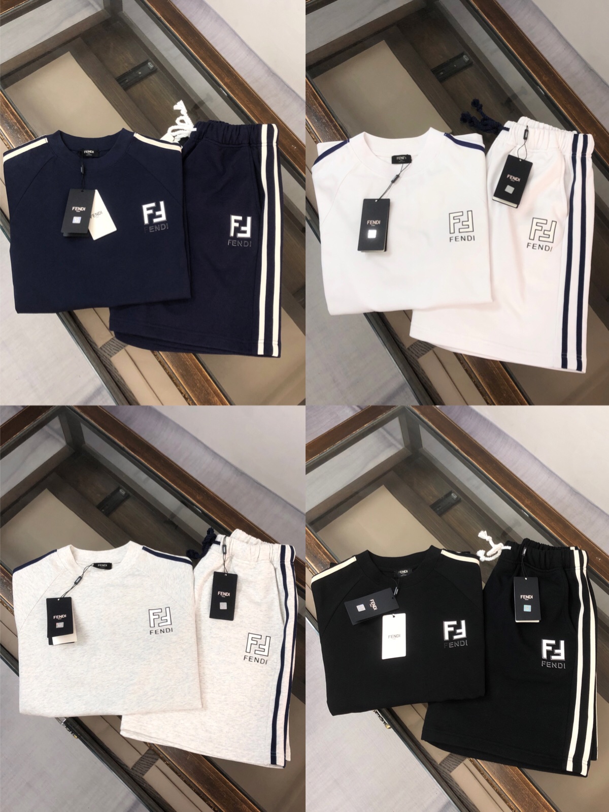 FENDI 2025 unisex casual set. Brand design, simple yet elegant. Comfortable, breathable fabric. Colors: Black, White, Gray, Navy. Sizes: S to XXL (runs large).