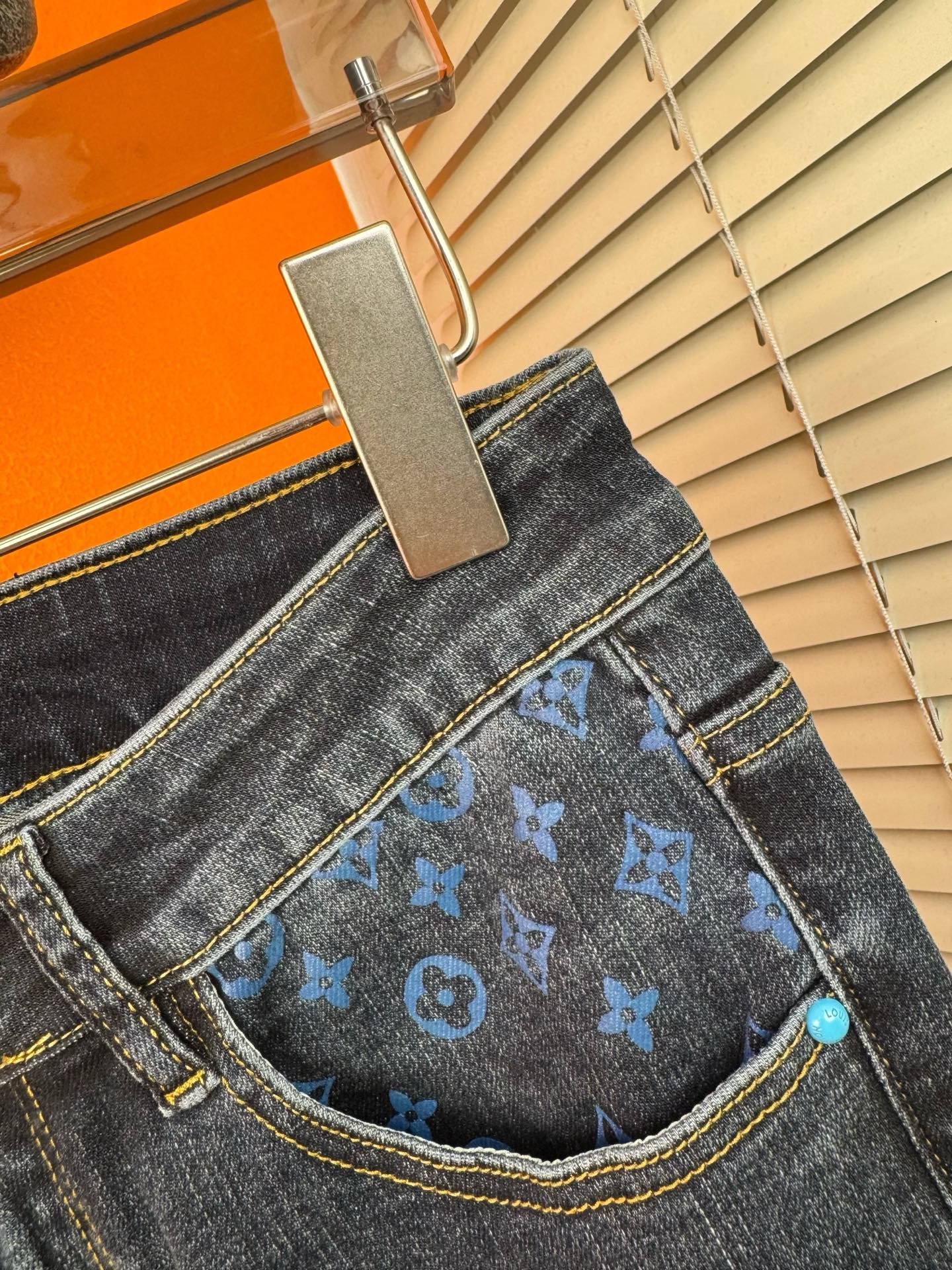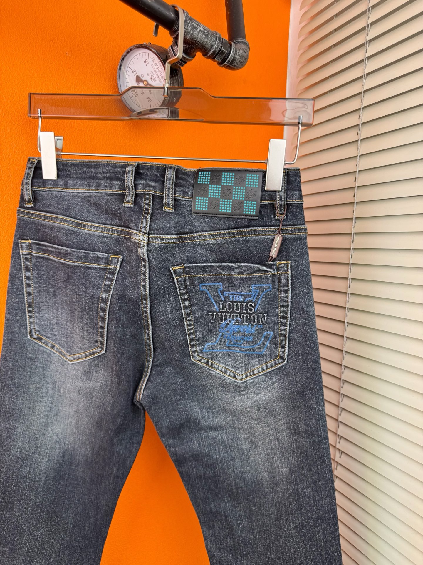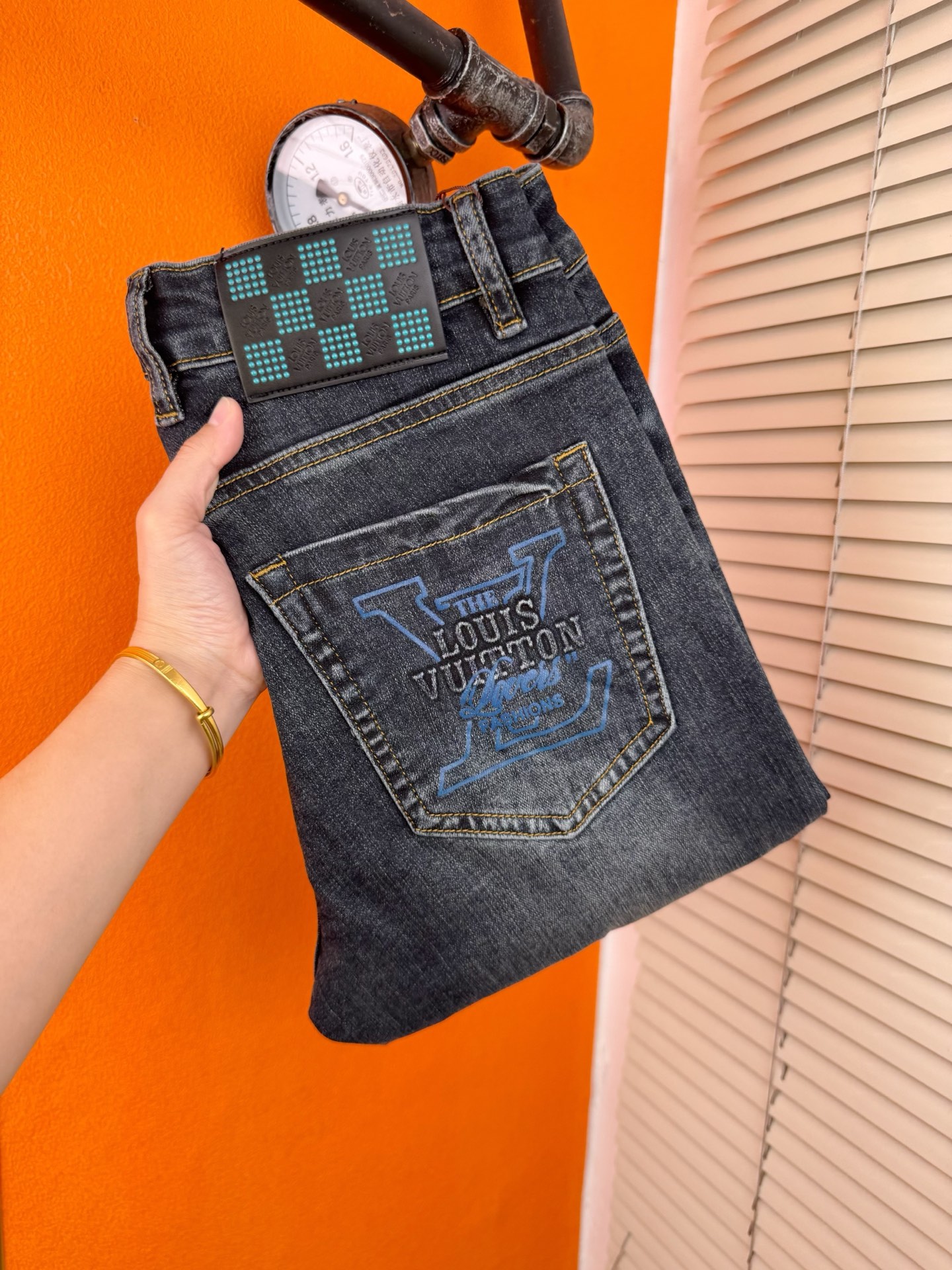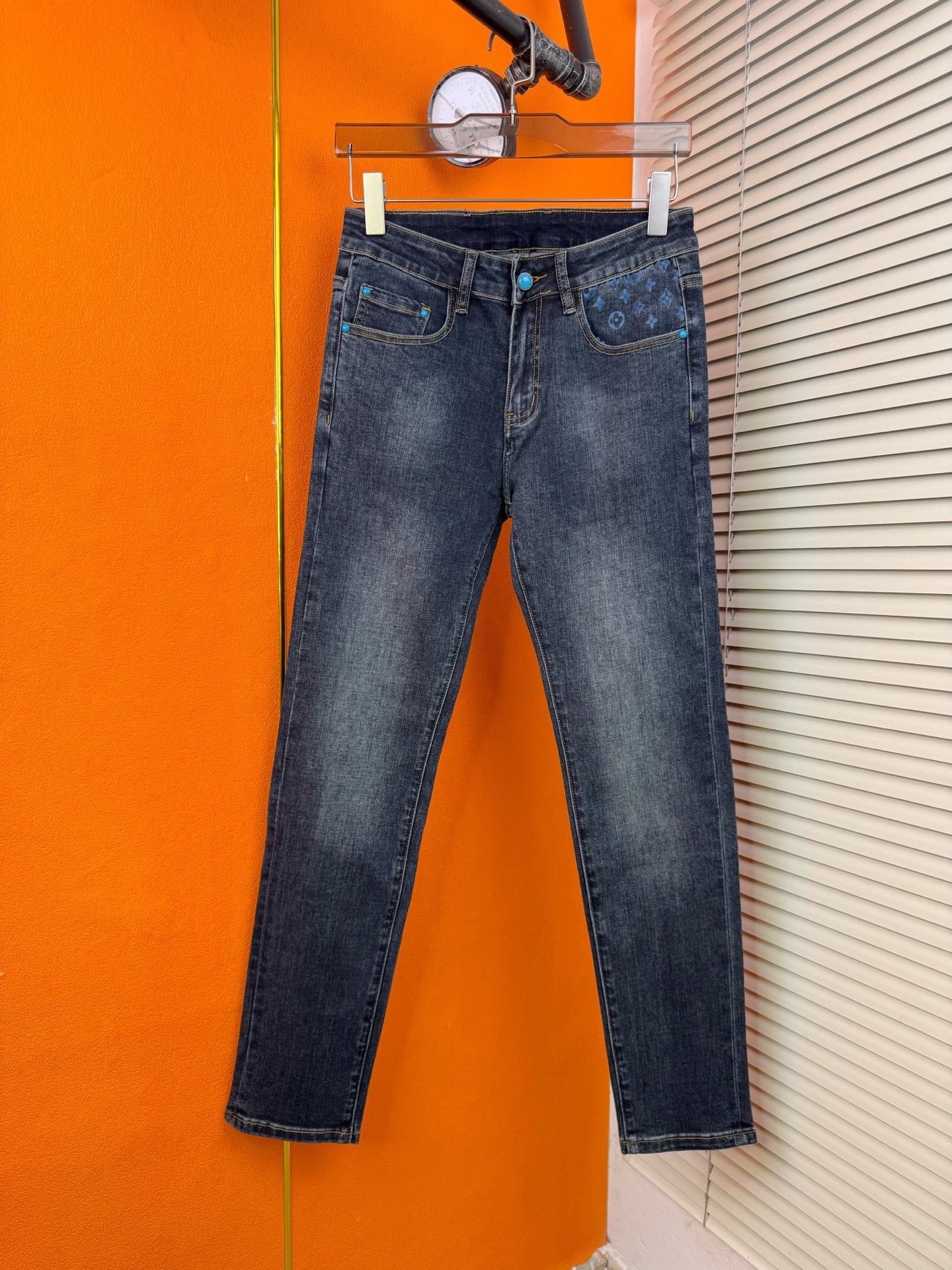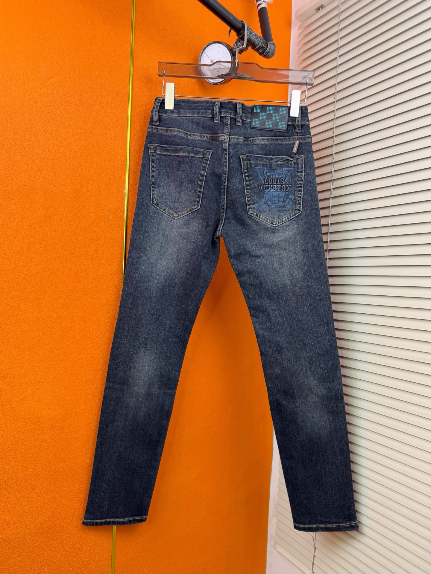 LV Thin Denim Jeans. 2025 latest style. 98% cotton, 2% spandex. Solid, slightly stretchy, comfortable. Simple design, hidden zipper, embossed pockets. Excellent fit.