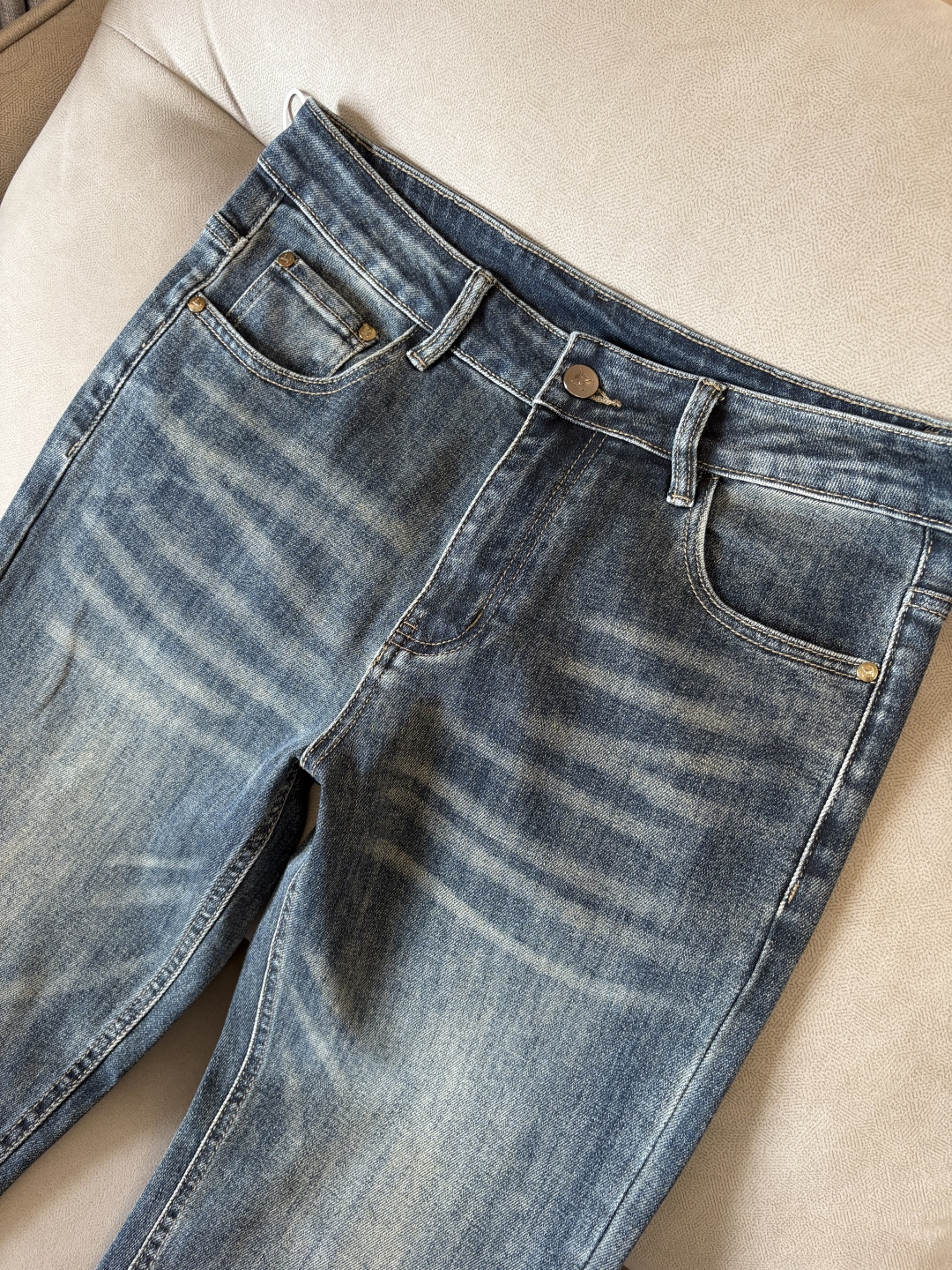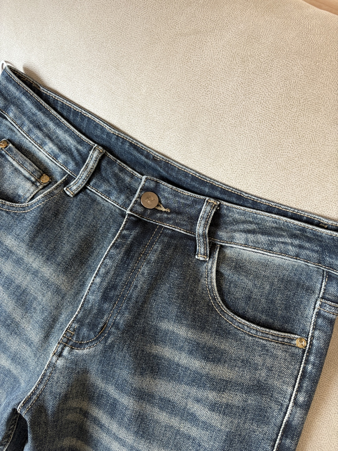 LV jeans: custom small straight-leg, original wash denim. Unique design, top embroidery, logo, hardware. Luxurious materials, excellent craftsmanship. Stylish fit. Sizes: 29-38 (no 35, 37).