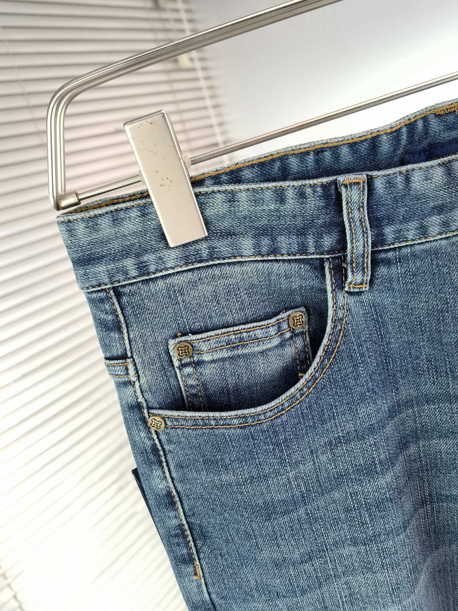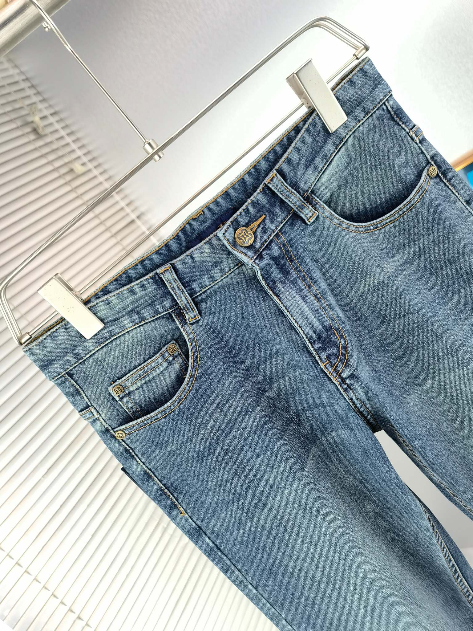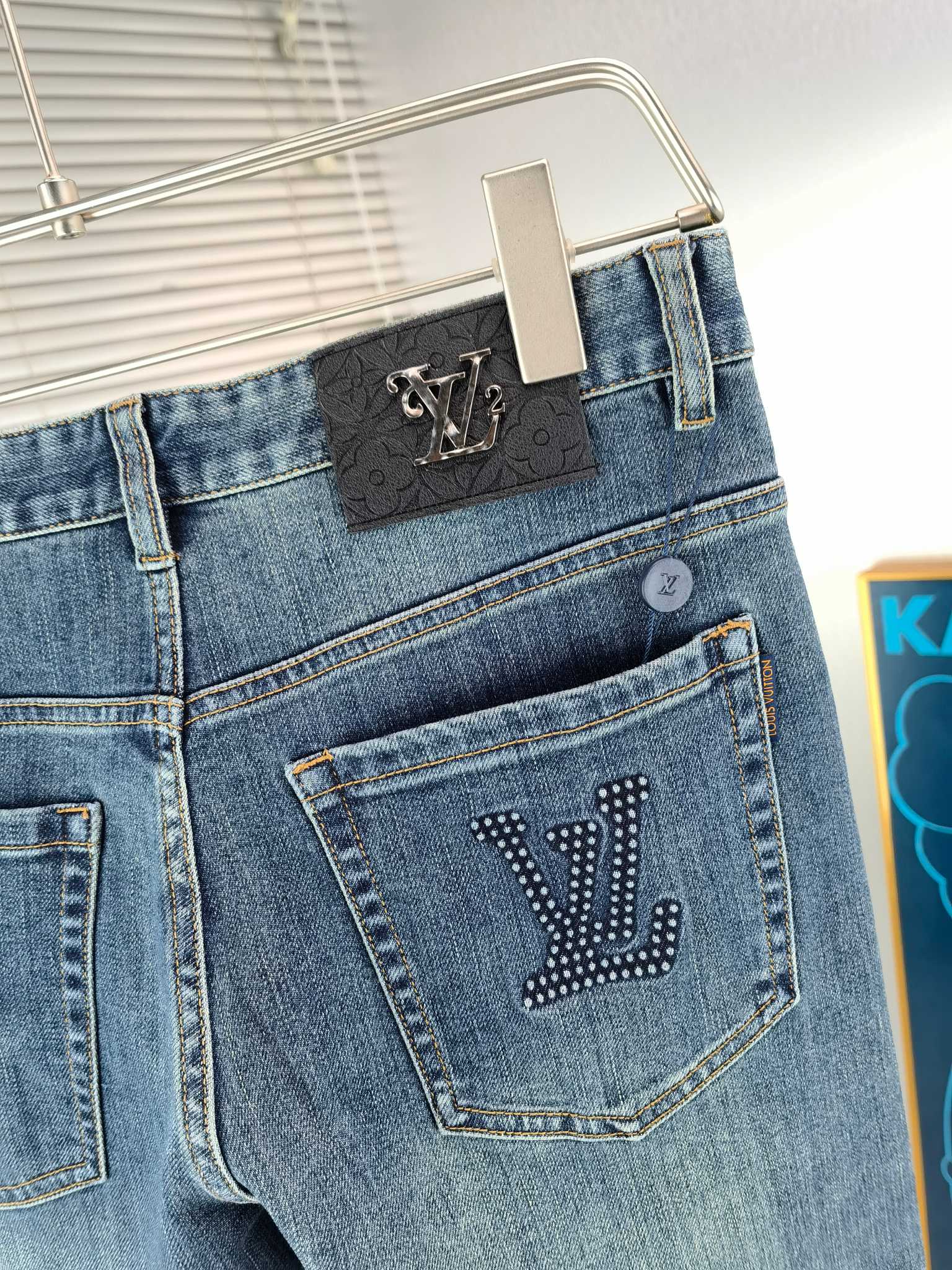 LV Thin Denim Jeans. 2025 latest style. 98% cotton, 2% spandex. Solid, slightly stretchy, comfortable. Simple design, hidden zipper, embossed pockets. Excellent fit.
