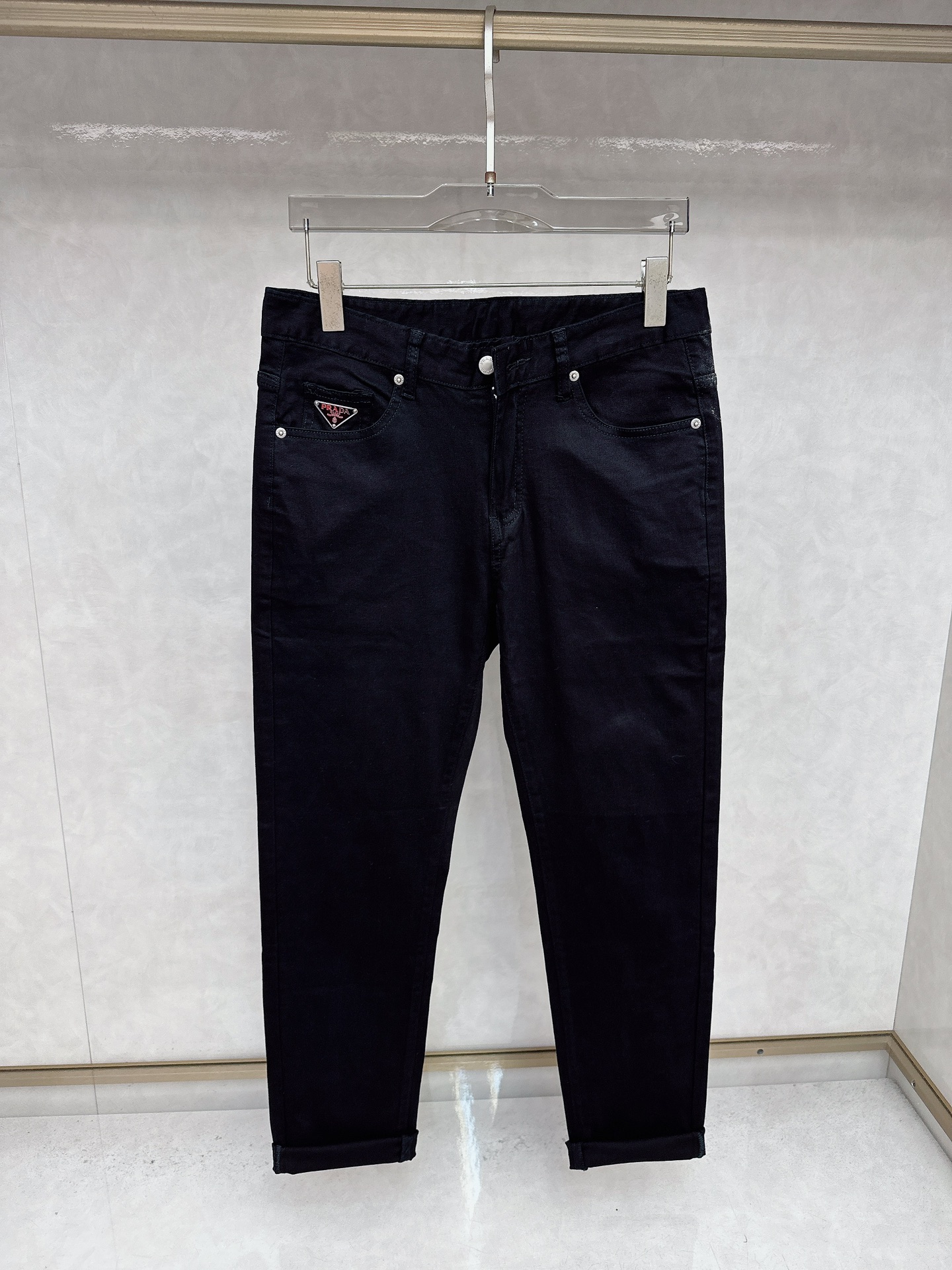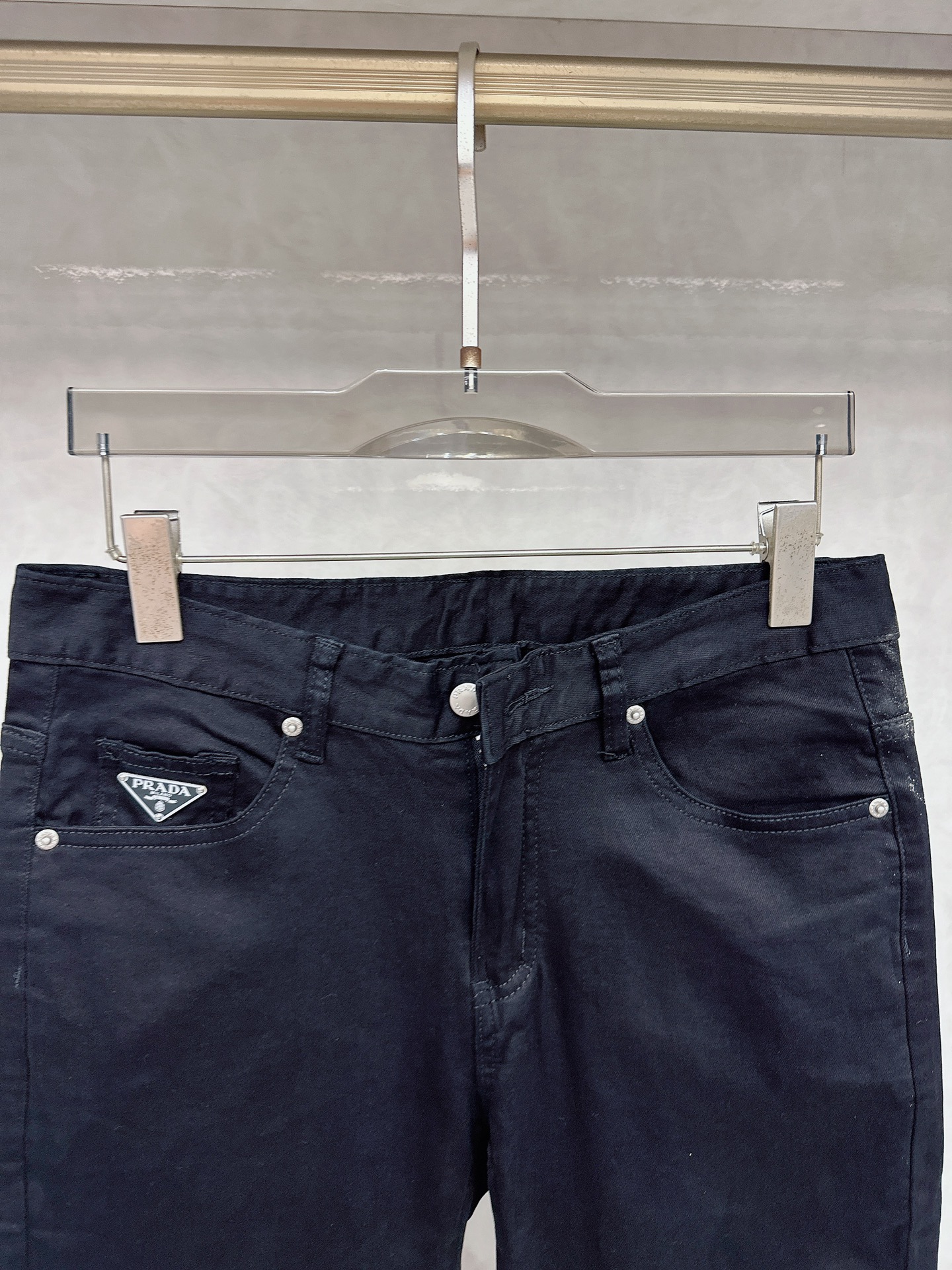 Prada 2025 Fall/Winter new jeans available. Custom design, original hardware, heavyweight craftsmanship. Flattering fit, exquisite details. Sizes 29-38.