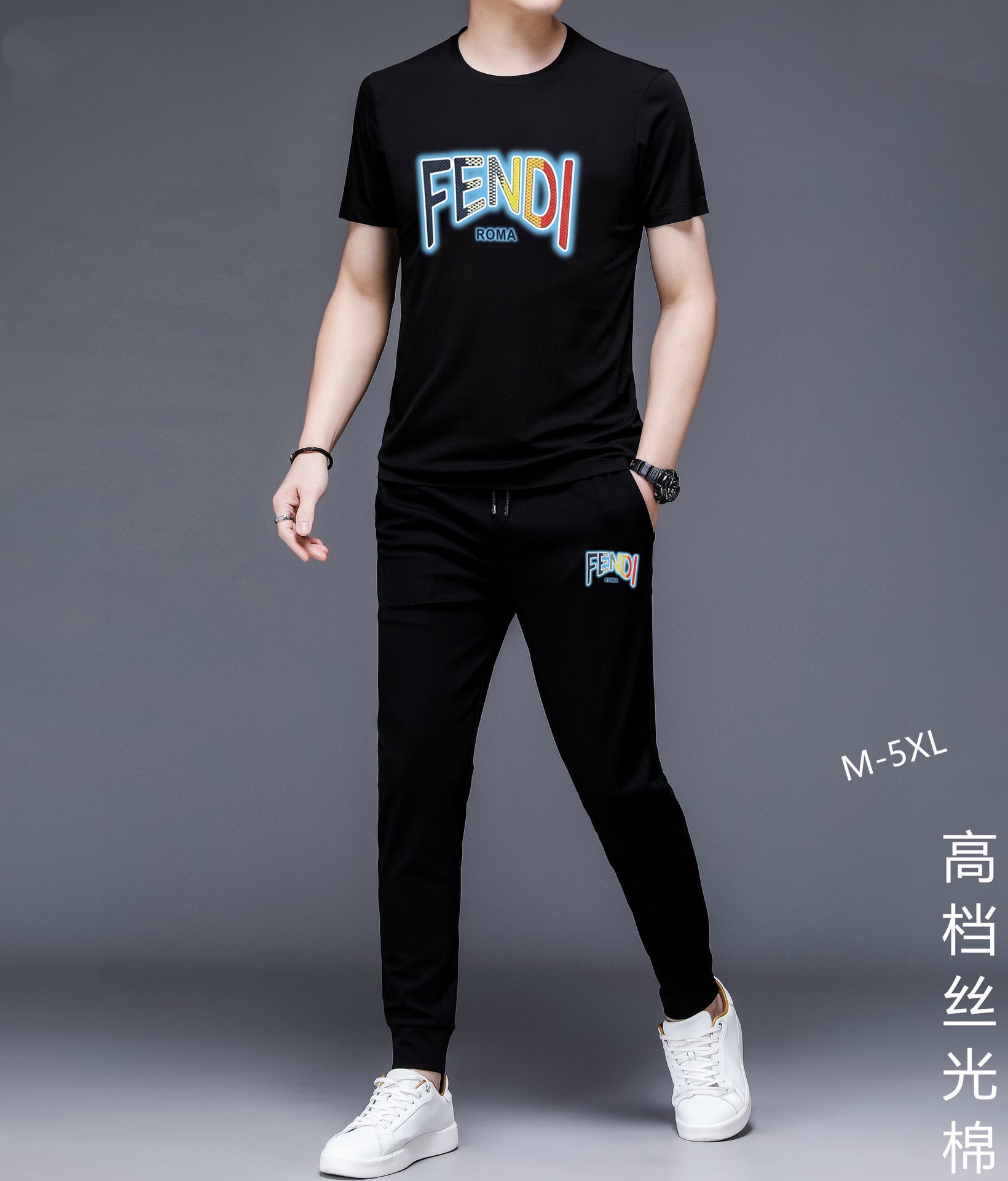 FENDI men's summer dual-gloss luxury set. Imported fabric, trendy versatile design. Sizes M-5XL.