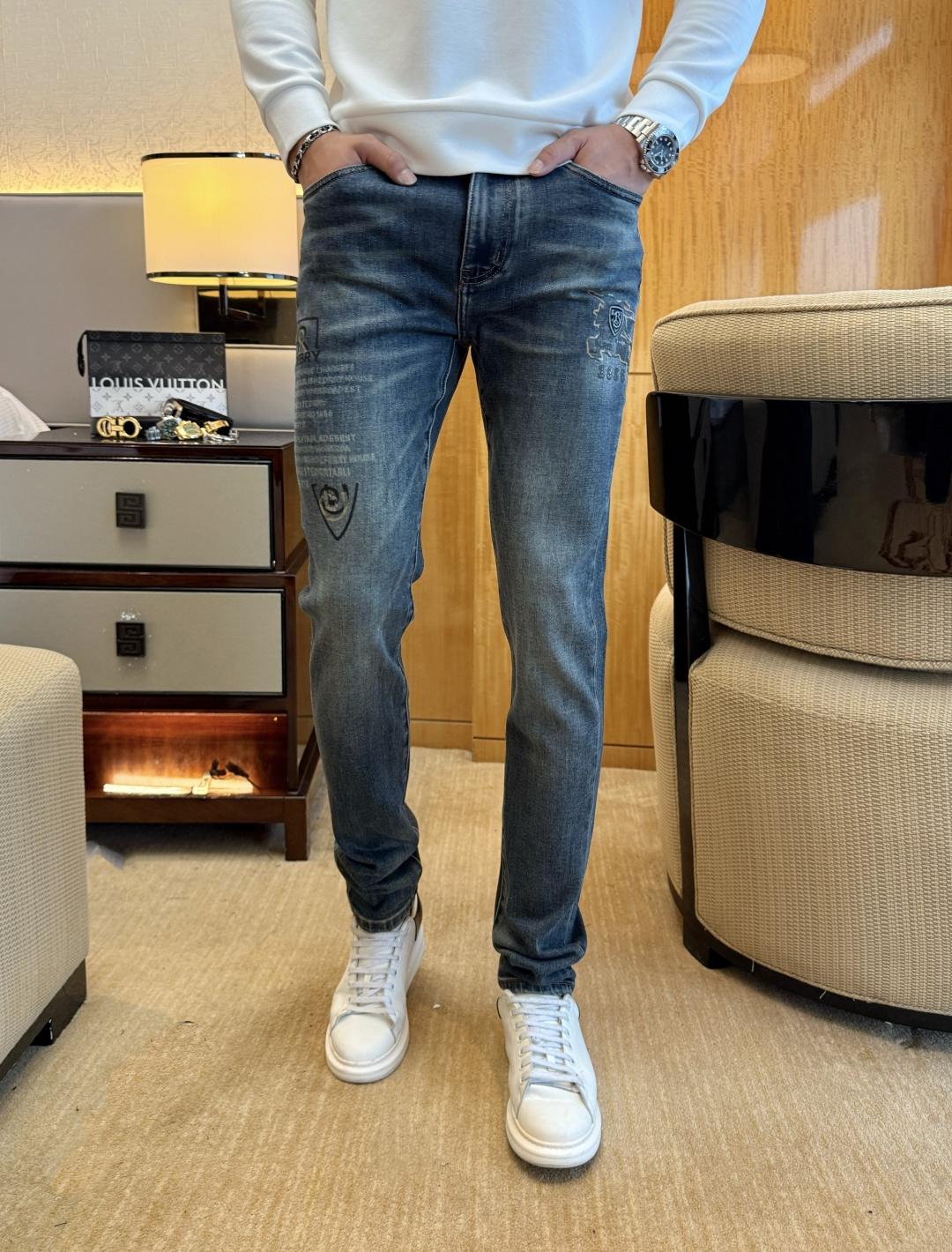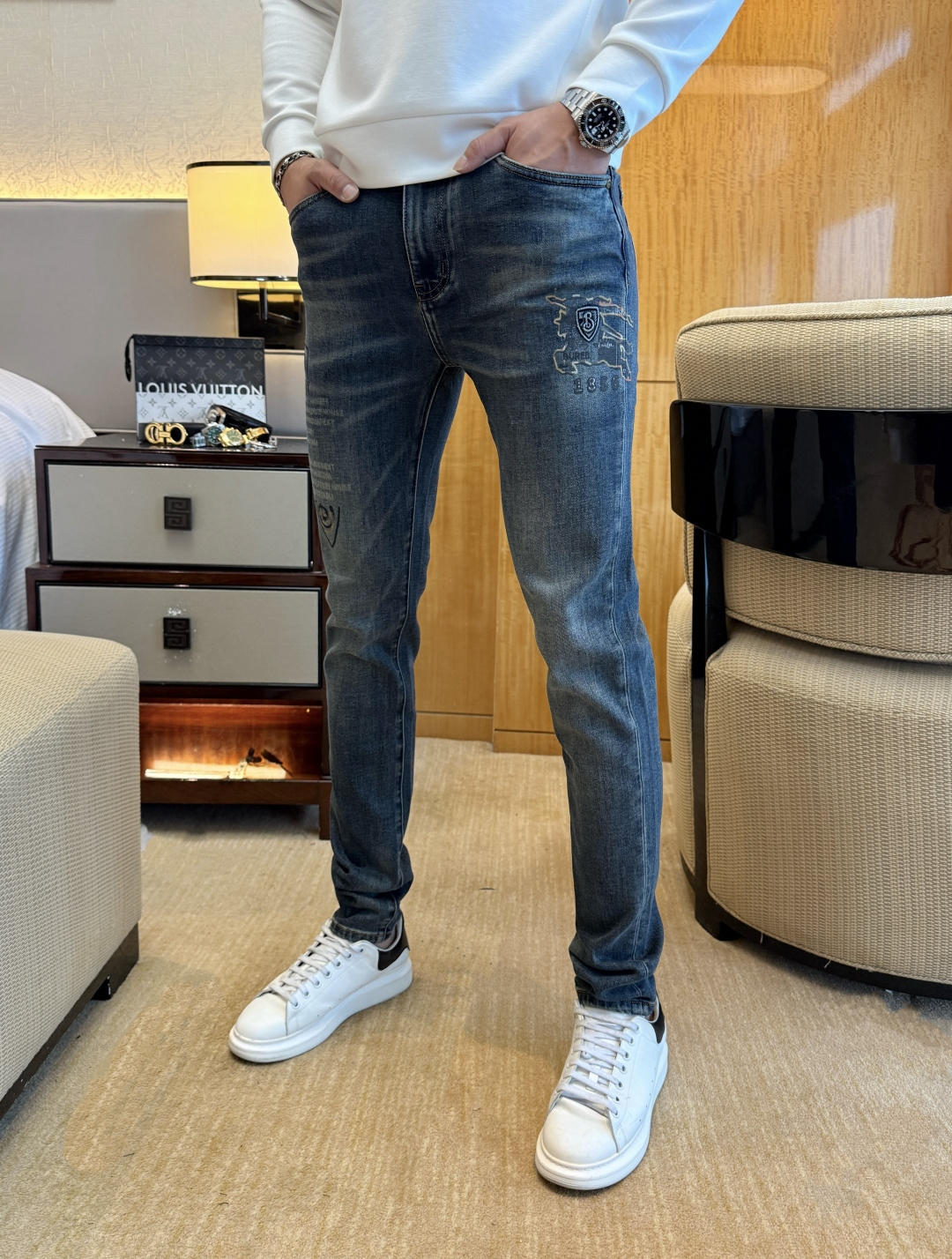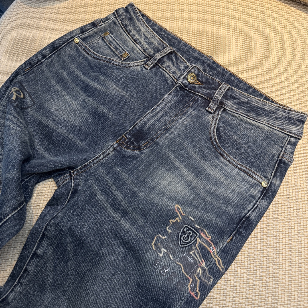 Burberry 2025ss Snake Year autumn-winter jeans. 1:1 replica, essential versatile style. Custom imported denim, complex washing techniques. Soft, stretchy, comfortable fit. Sizes 29-38.