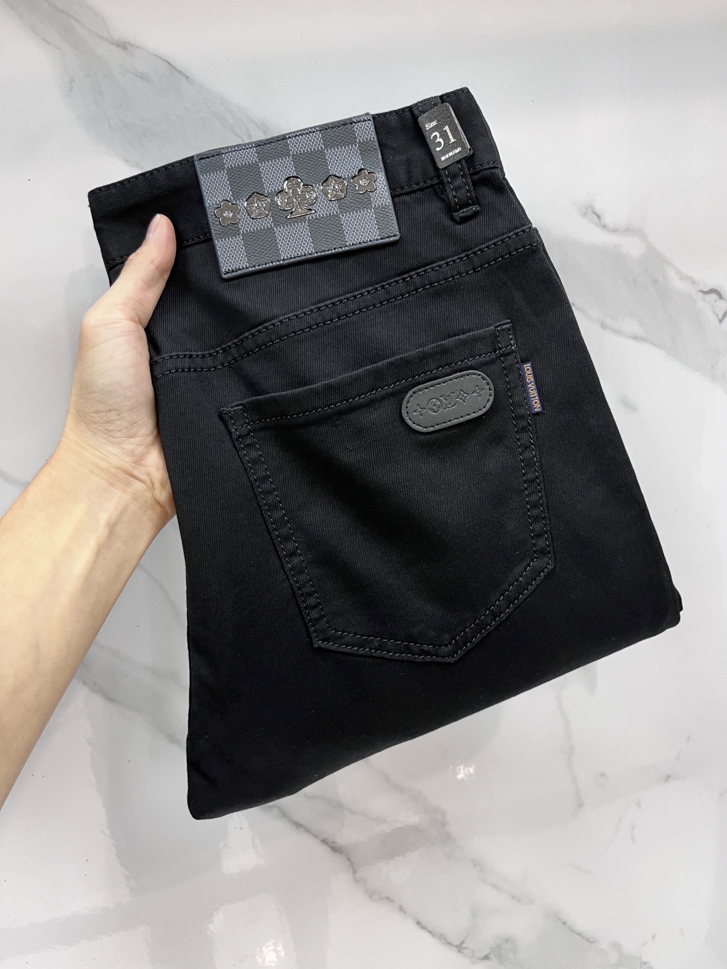 LV 2025SS early spring lightweight distressed jeans. Imported stretch denim, comfortable and breathable. Custom hardware details, flattering fit. Sizes 29-38.