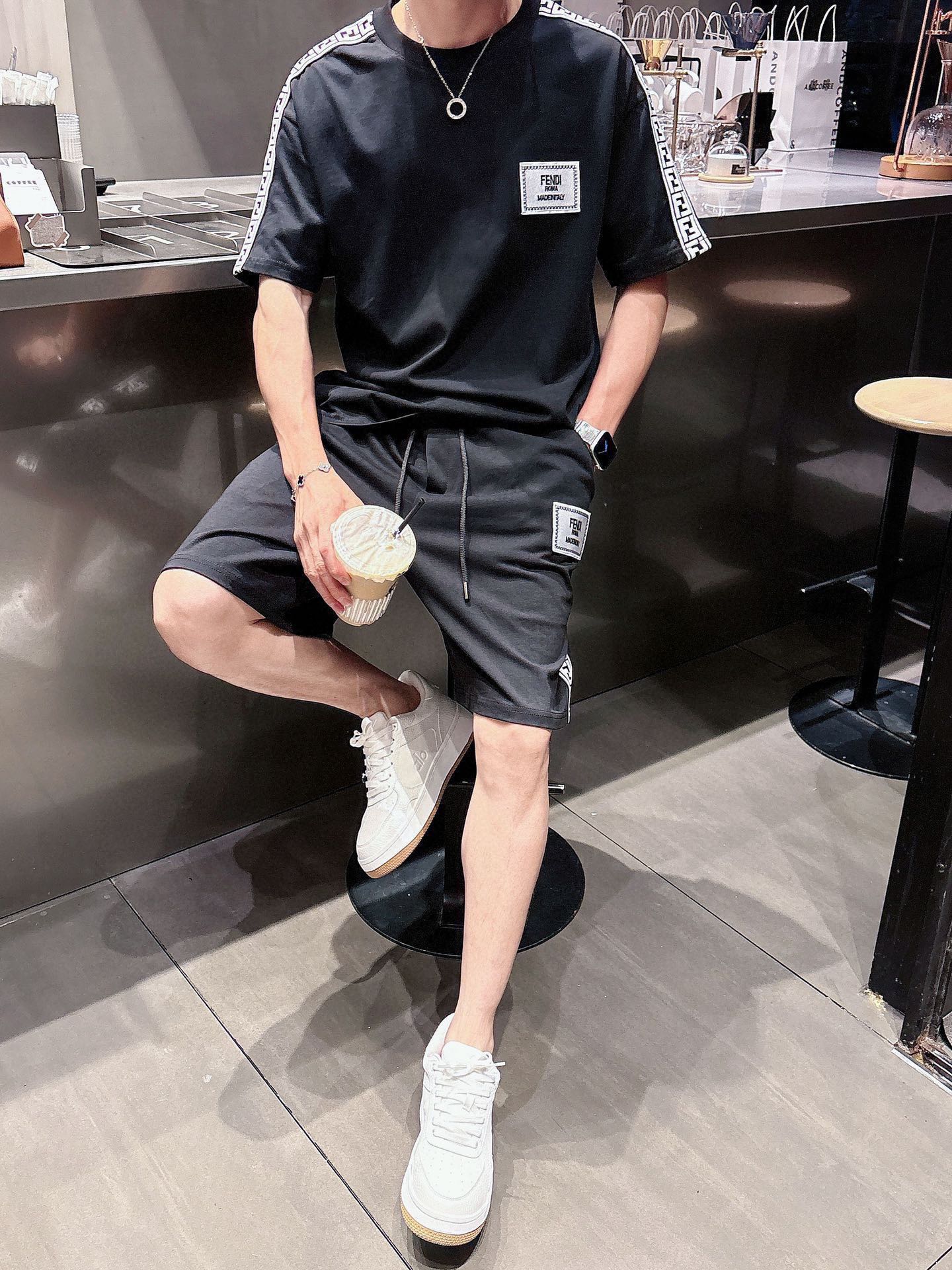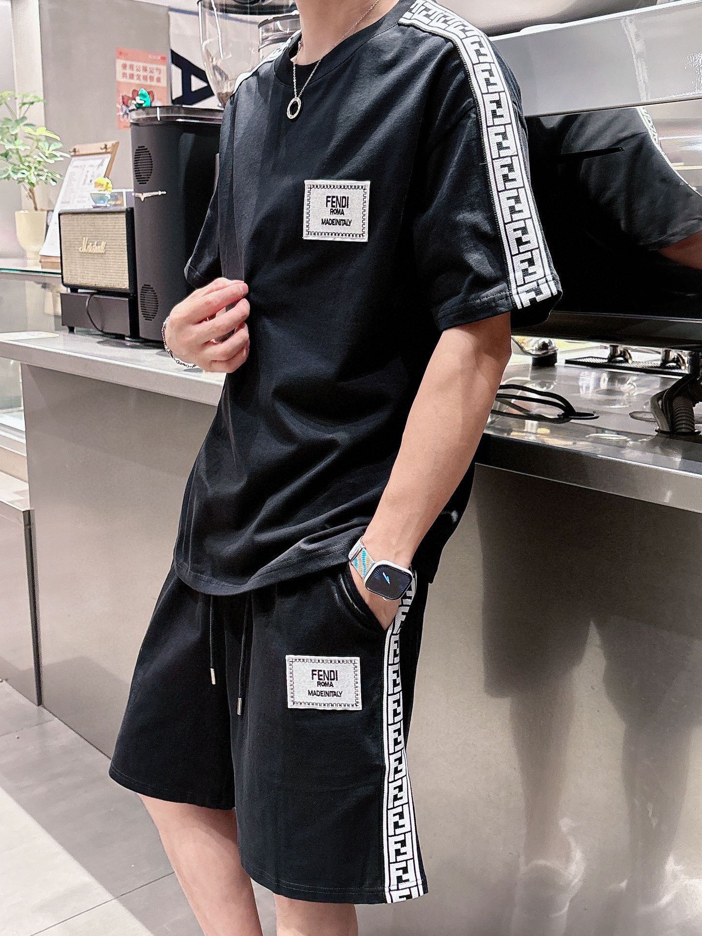 FENDI 2025 cotton short-sleeve & shorts set. Breathable, smooth fabric with classic logo. Sizes M-3XL (up to 190kg).