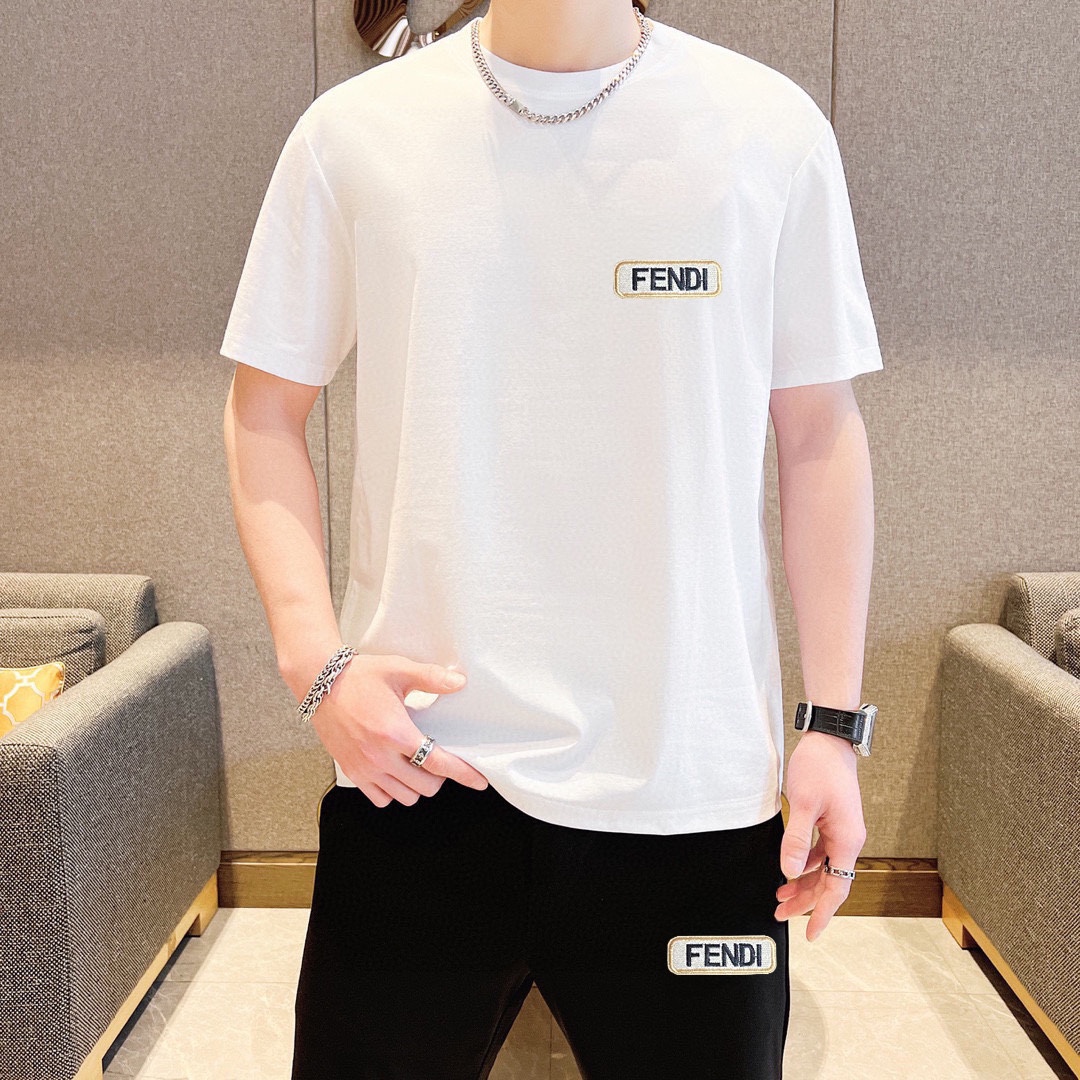 FENDI men's 2025 short sleeve & shorts set. High-end version, soft fabric, comfortable fit, 3D cut. Sizes: M-5XL.
