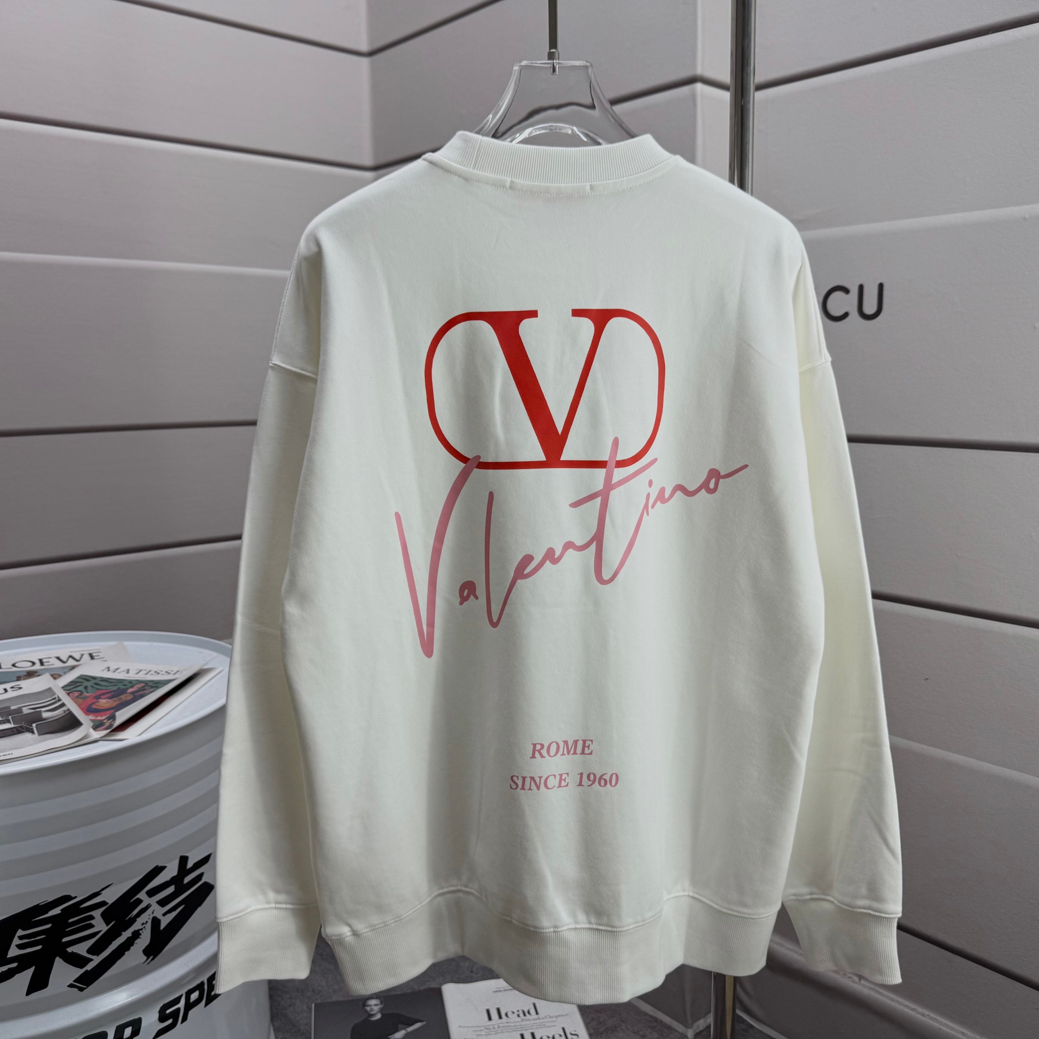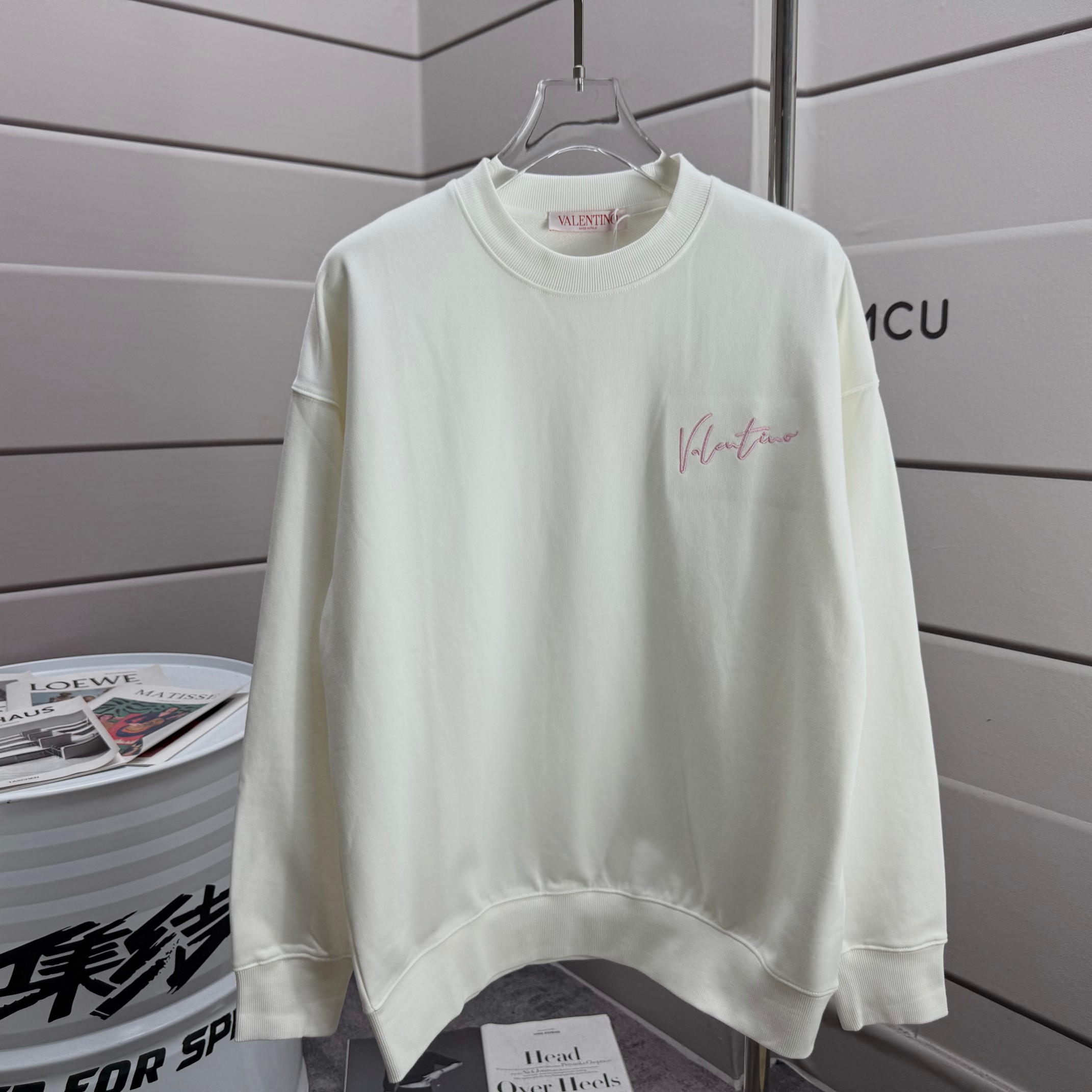 Valentino 2025 Spring/Summer New Arrival Classic Pink Embroidered Letter Pattern Print Custom Terry Fabric Long-Sleeve Hoodie Unisex