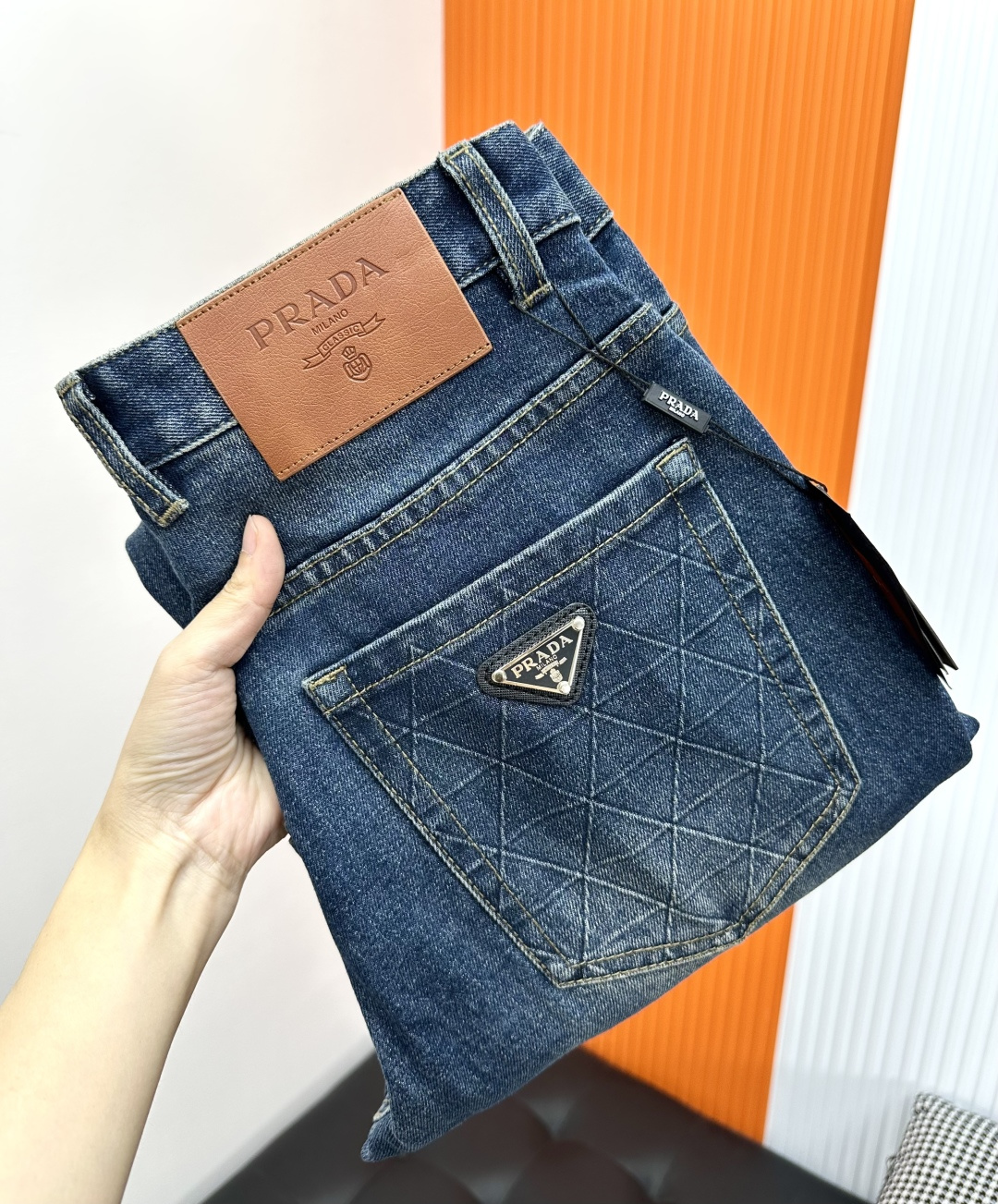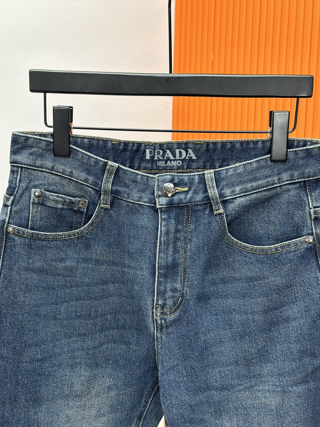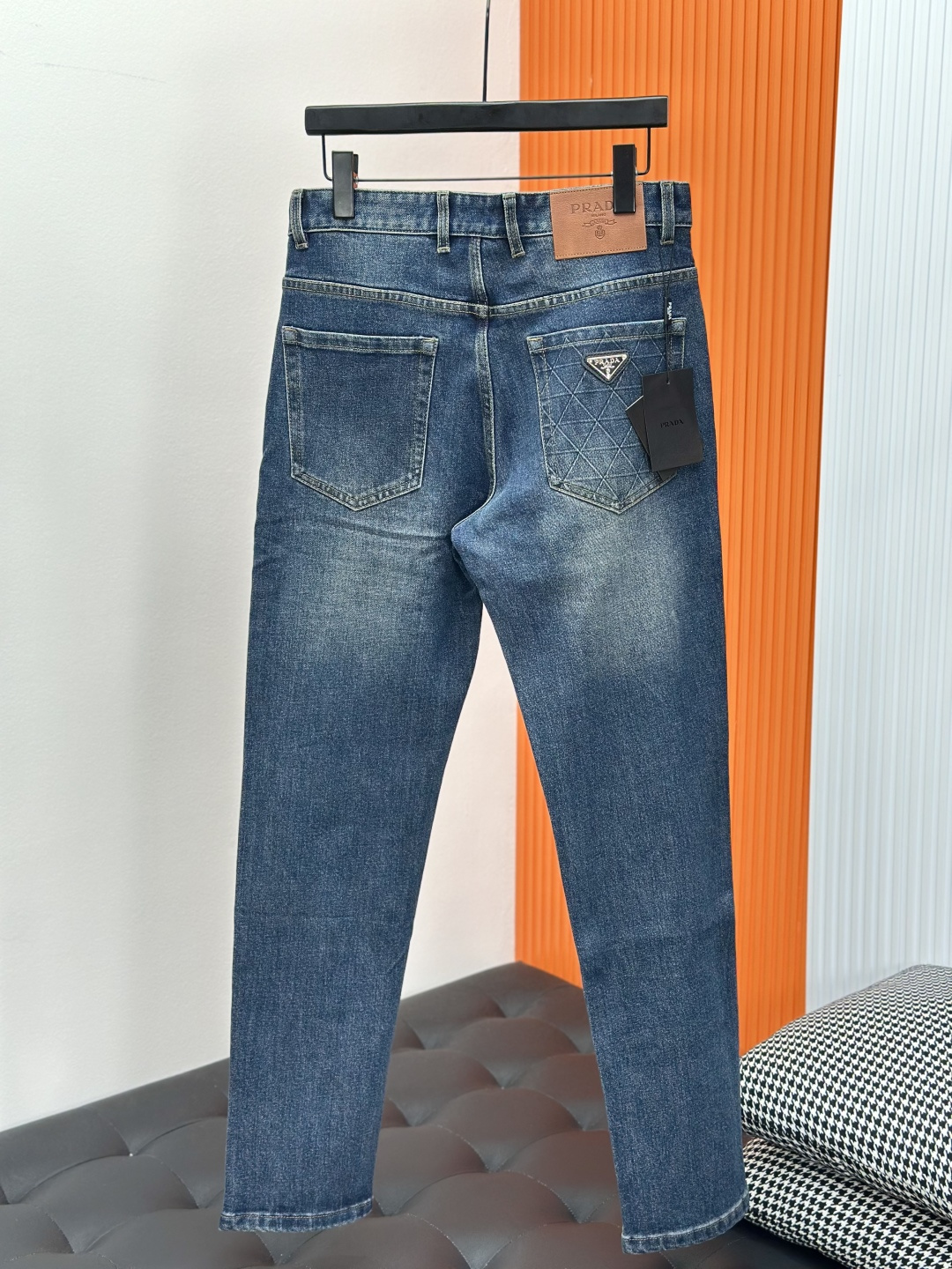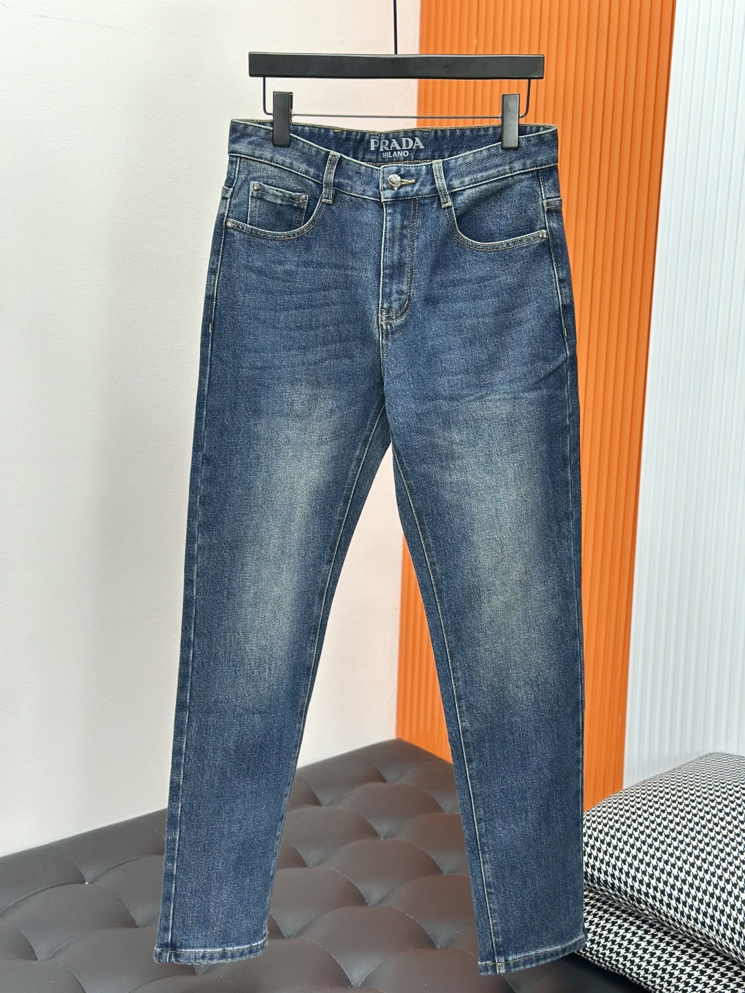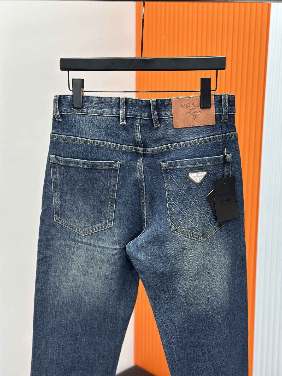 Prada 2025SS slim-fit jeans. Custom wash, premium hardware, stretch fabric. Sizes 29-40 (no 37).