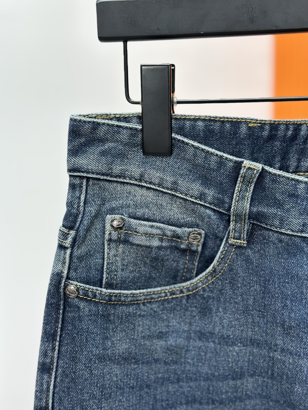 LV Thin Denim Jeans. 2025 latest style. 98% cotton, 2% spandex. Solid, slightly stretchy, comfortable. Simple design, hidden zipper, embossed pockets. Excellent fit.