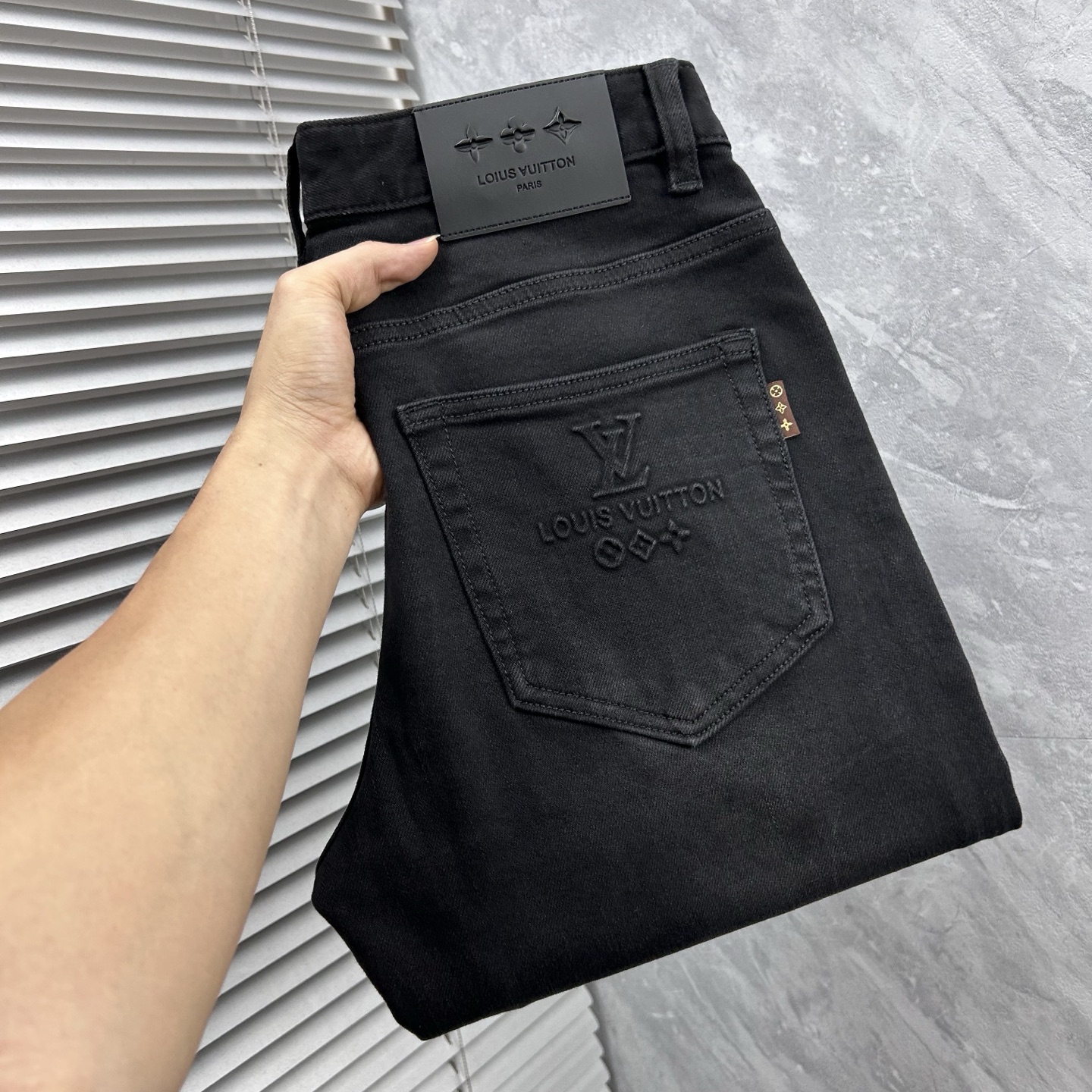 LV's latest jeans, a bestseller. Comfortable, low-key luxury. Made from Turkish cotton denim, soft from heavy washing. Straight-leg fit, sizes 29-38.