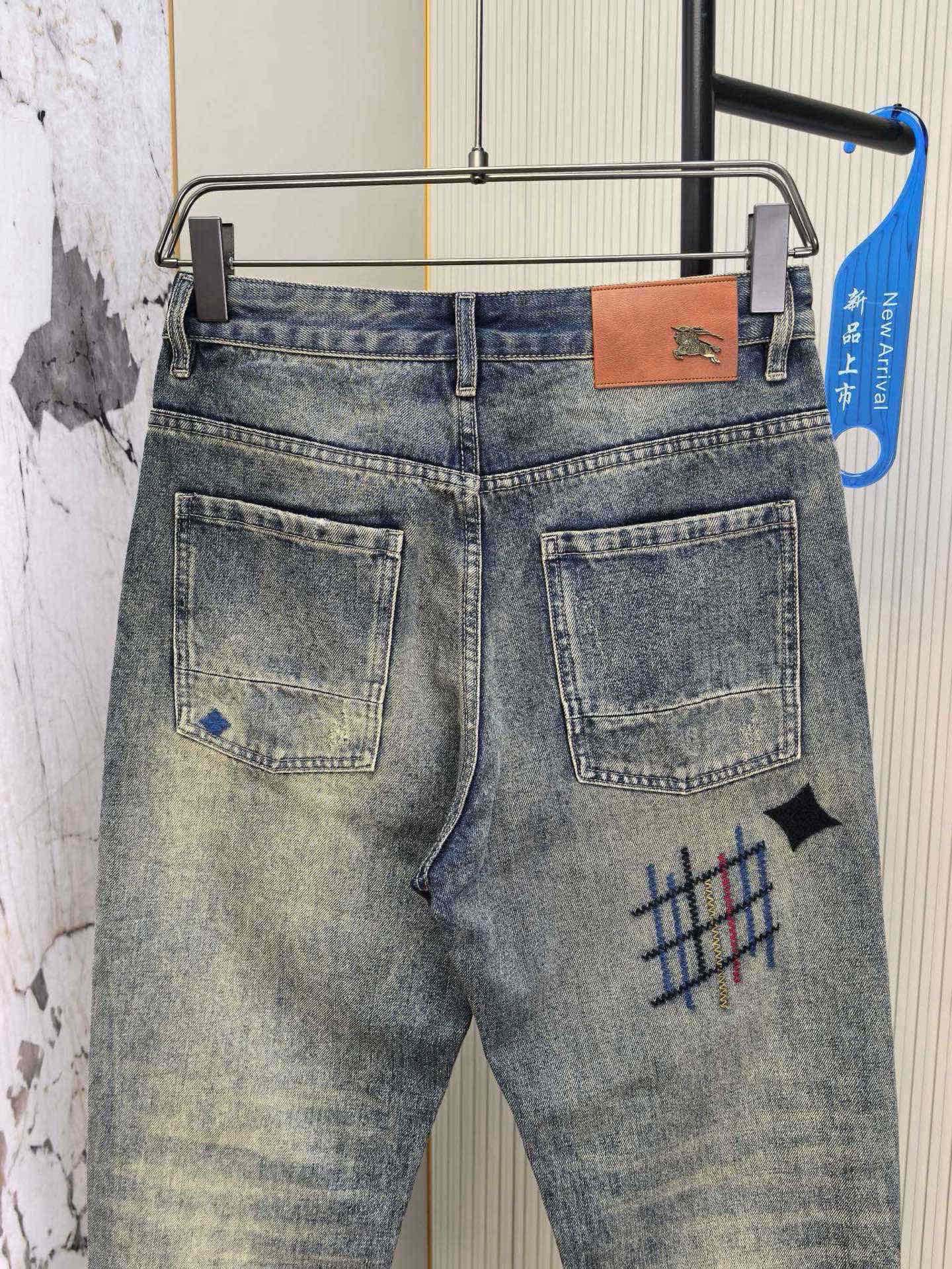 Burberry 2025 Autumn/Winter embroidered men's jeans. Custom soft denim, distressed embroidery, top-tier comfort and breathability. Sizes 28-38 (excl. 35/37/39, 40 customizable).