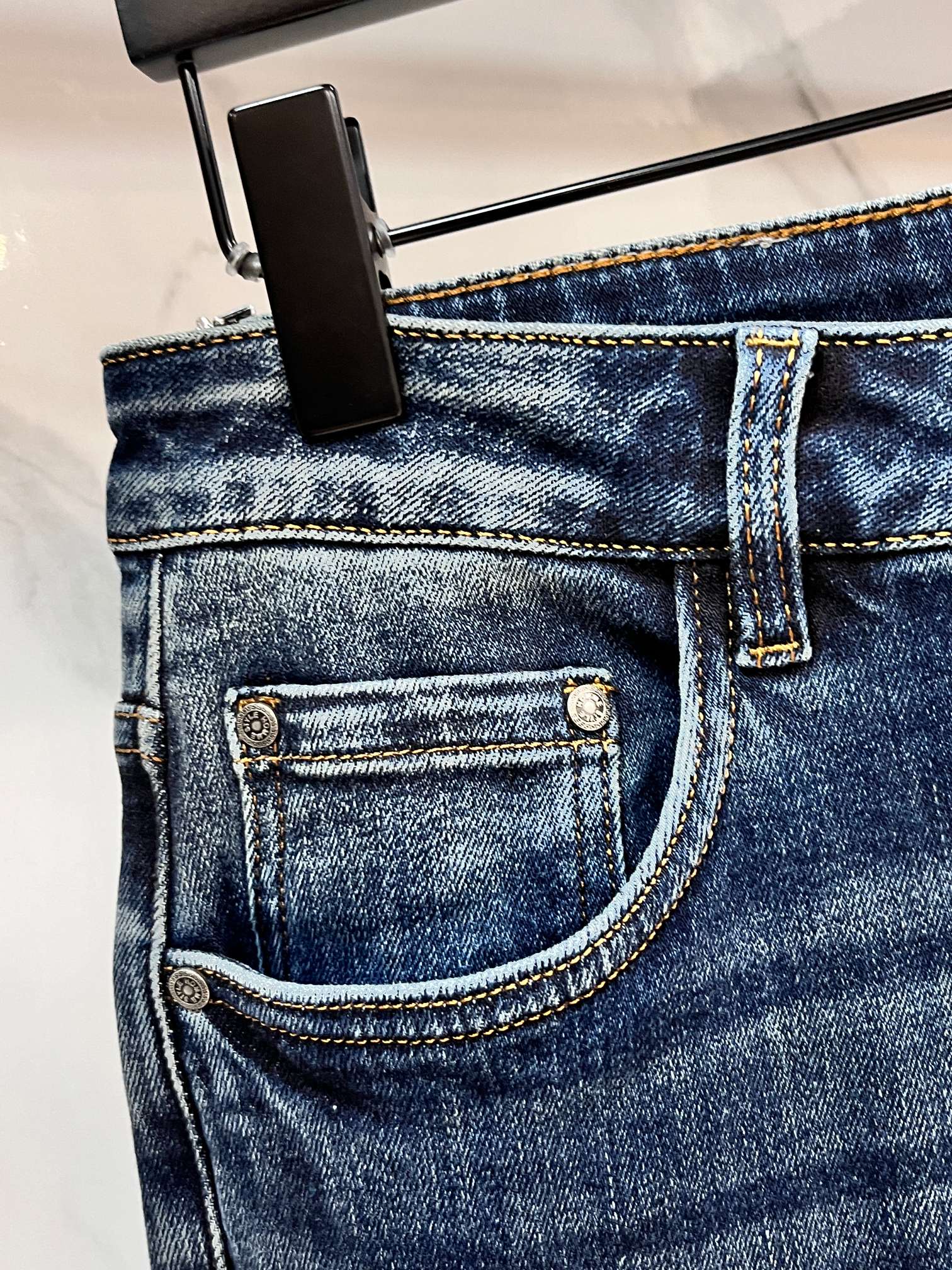 LV Thin Denim Jeans. 2025 latest style. 98% cotton, 2% spandex. Solid, slightly stretchy, comfortable. Simple design, hidden zipper, embossed pockets. Excellent fit.