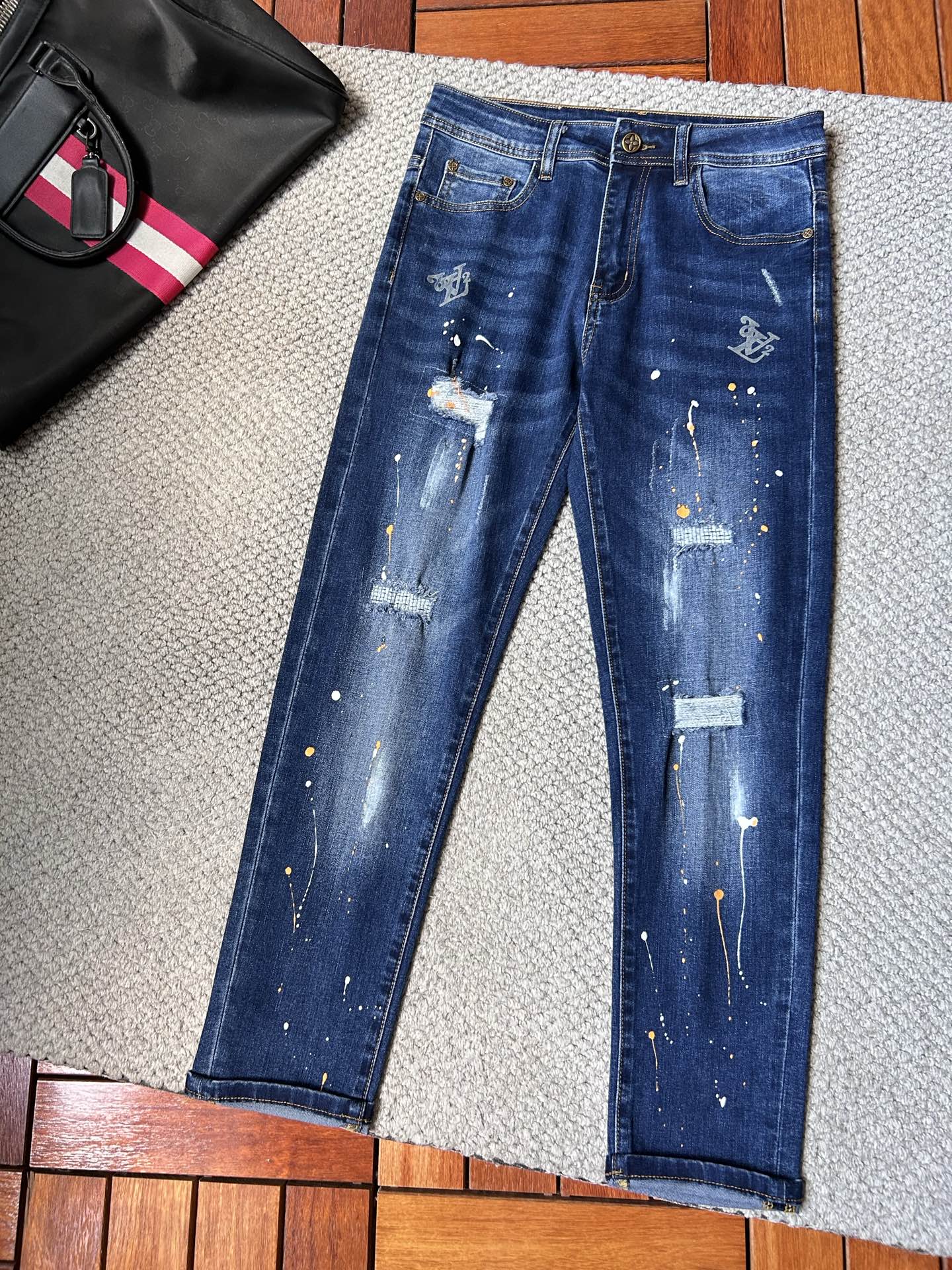 Louis Vuitton 2025 new men's jeans. Stretchy denim, exclusive release, elegant design with fine craftsmanship. Sizes 28-38, ships next day.