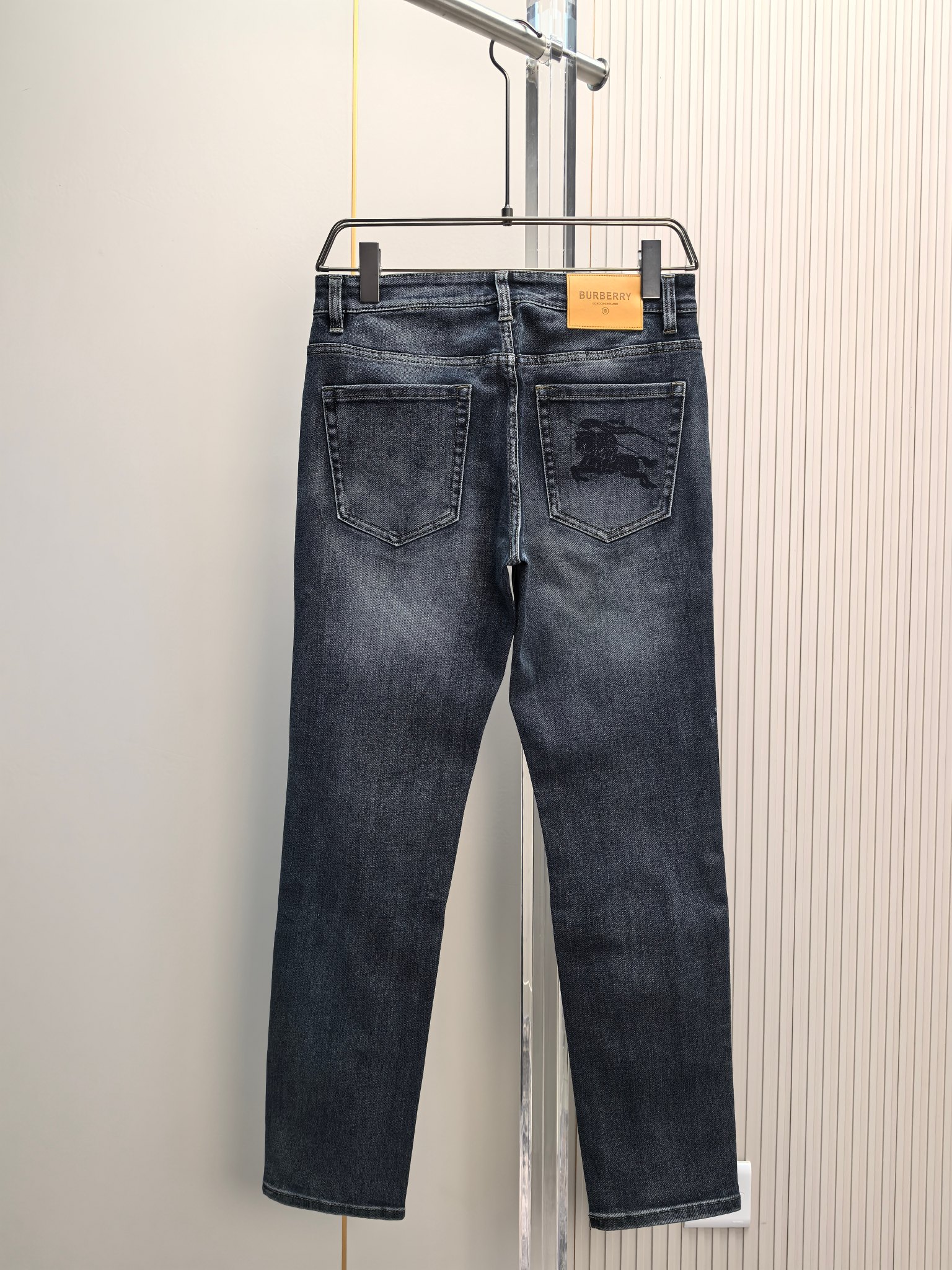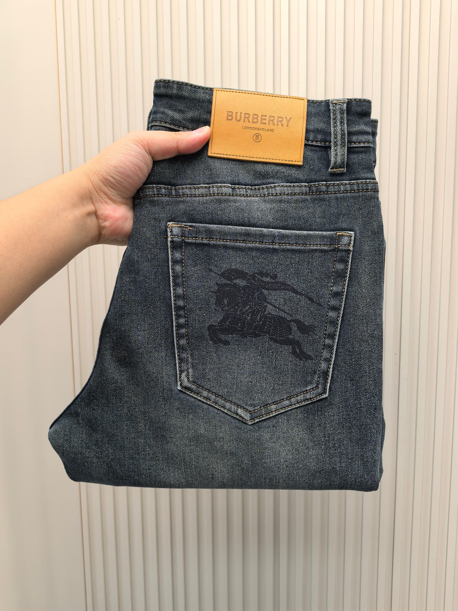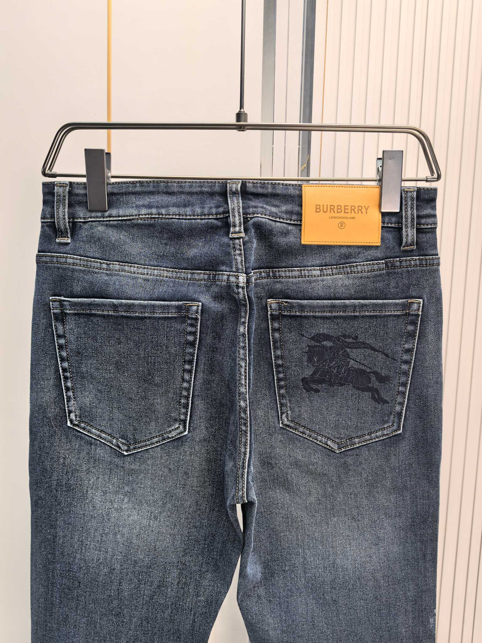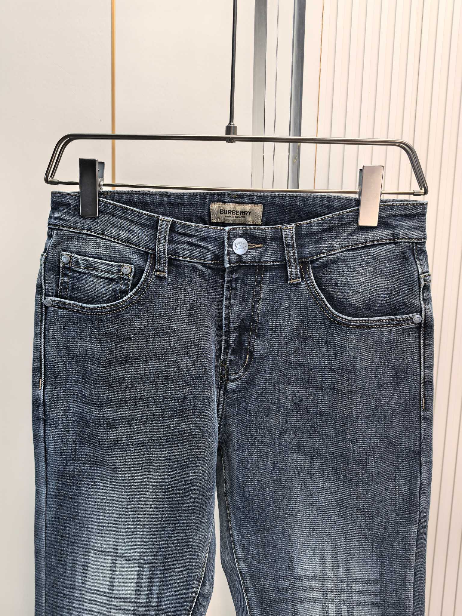 Burberry 2025 autumn-winter men's jeans. Heavy wash denim, custom fabric, soft and comfortable. Double washing process, top-notch feel and breathability. Custom metal logos, premium materials. Great elasticity, low-key design. Sizes: 29-40.