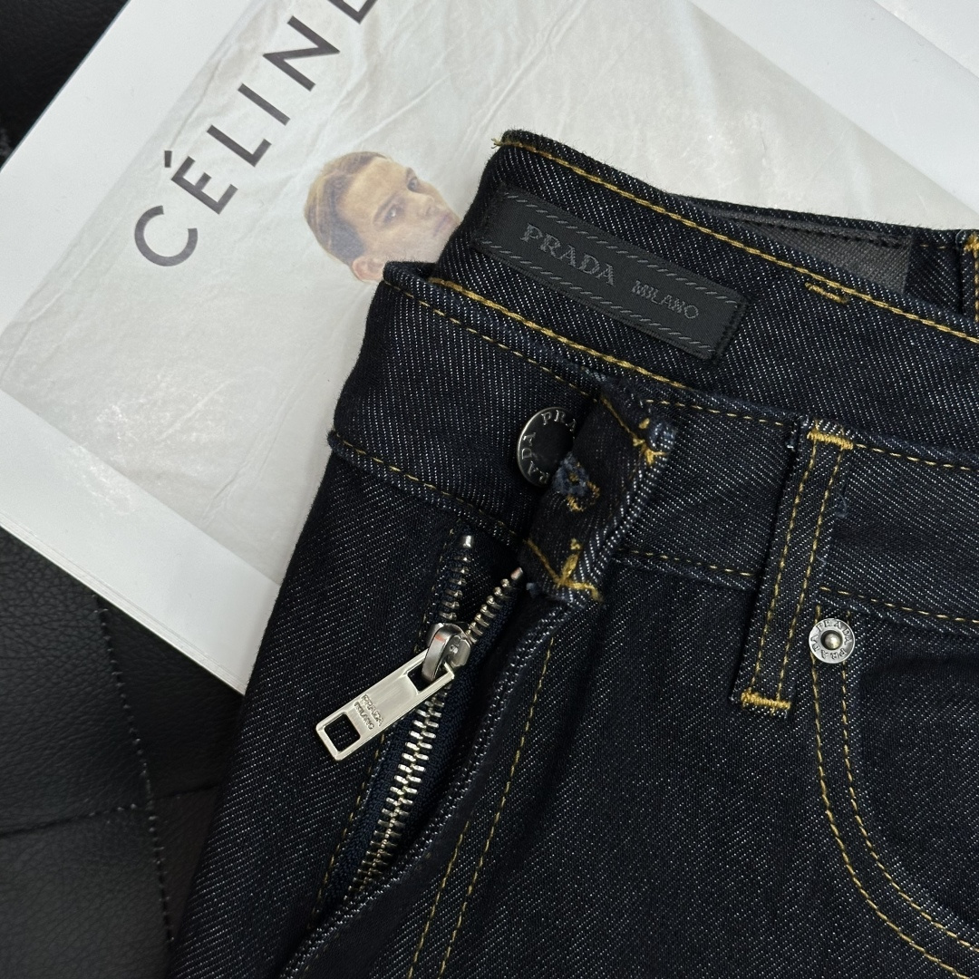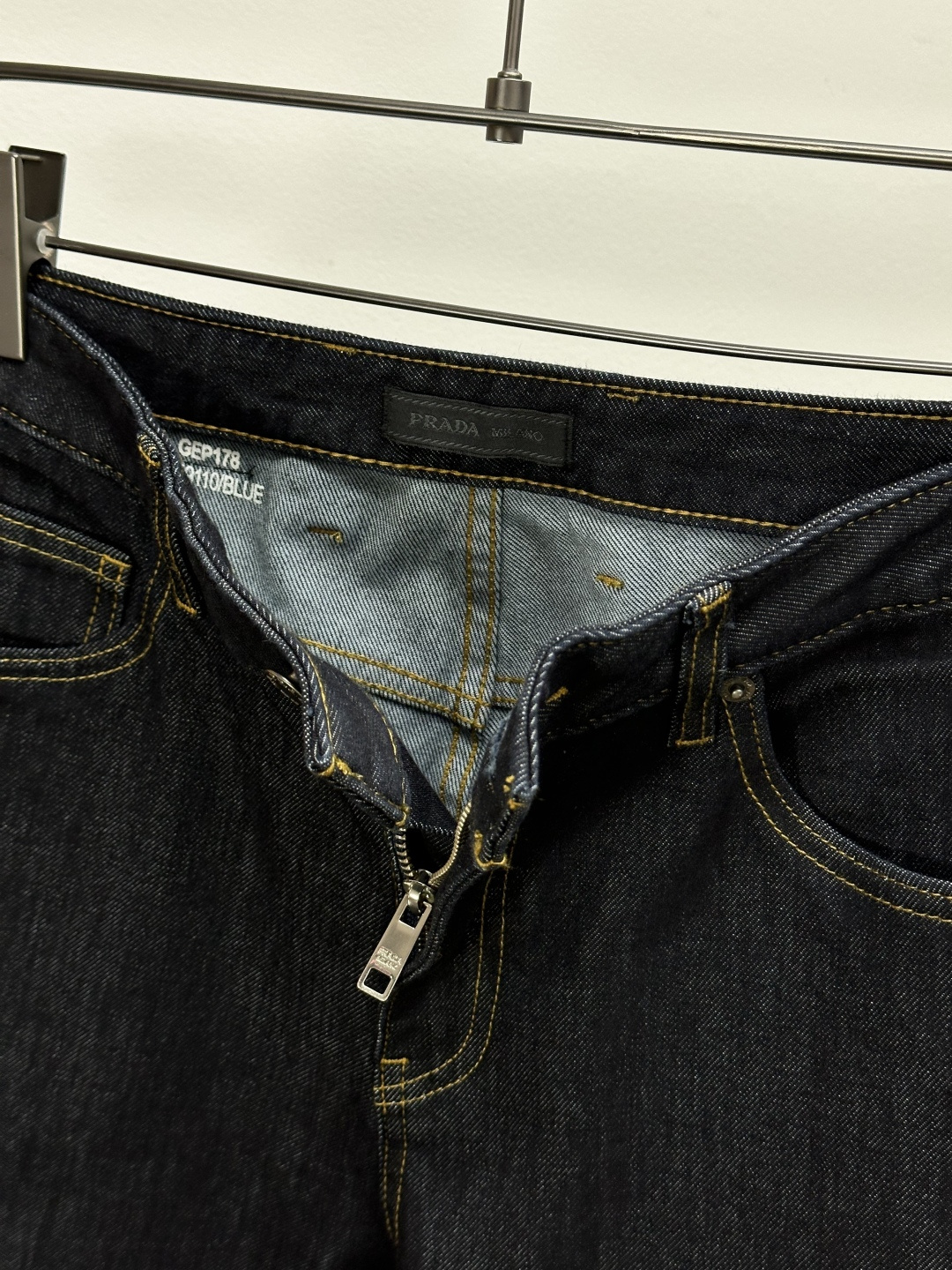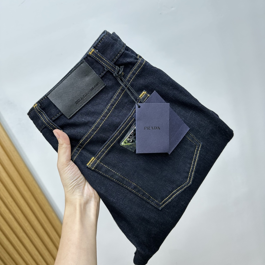 Prada men's slim straight-leg jeans. Classic, elegant, comfortable, and breathable. Features the iconic triangle logo. Timeless design for the sophisticated urban man. Sizes: 29-38 (no 35).