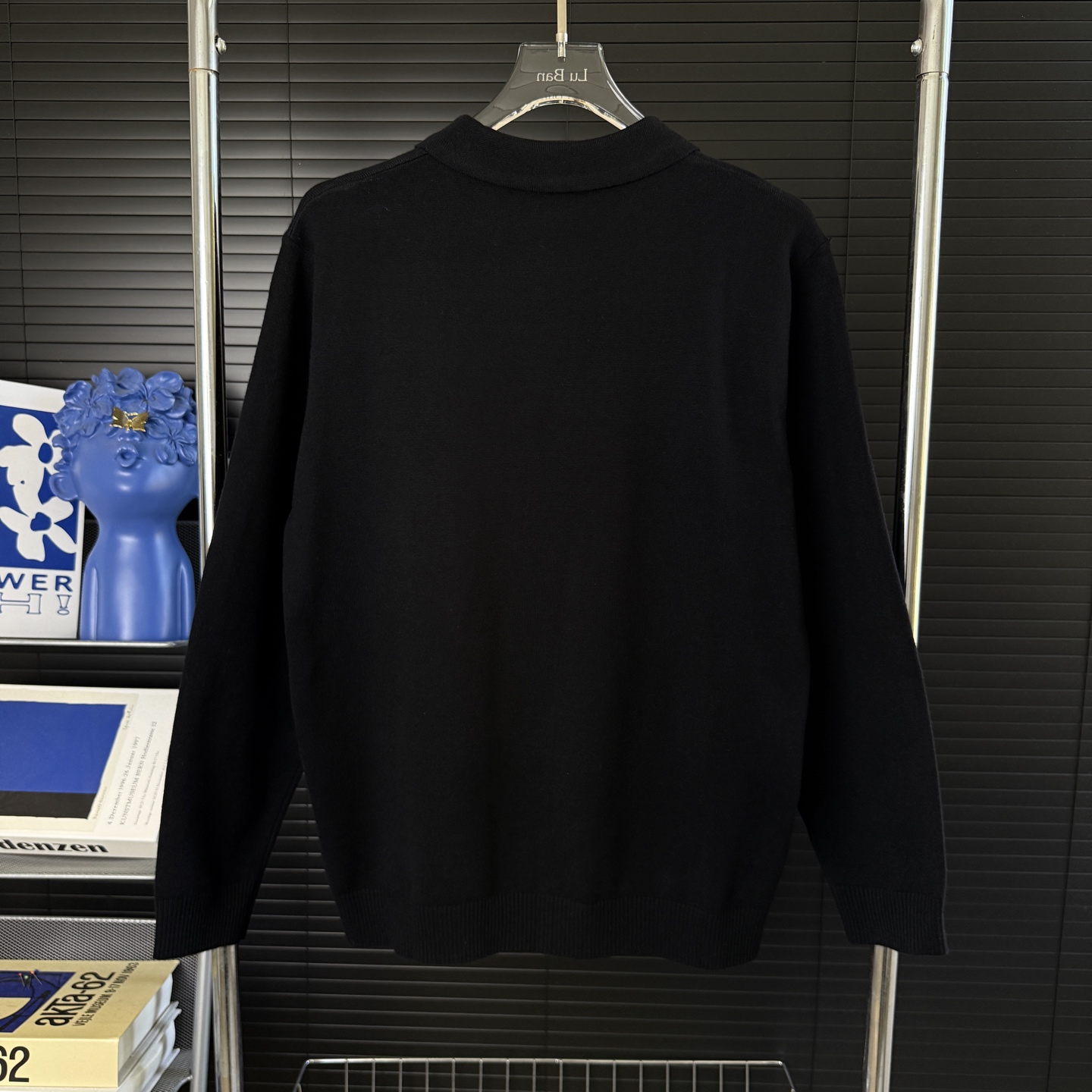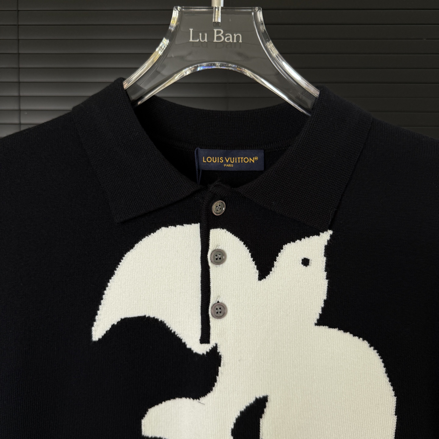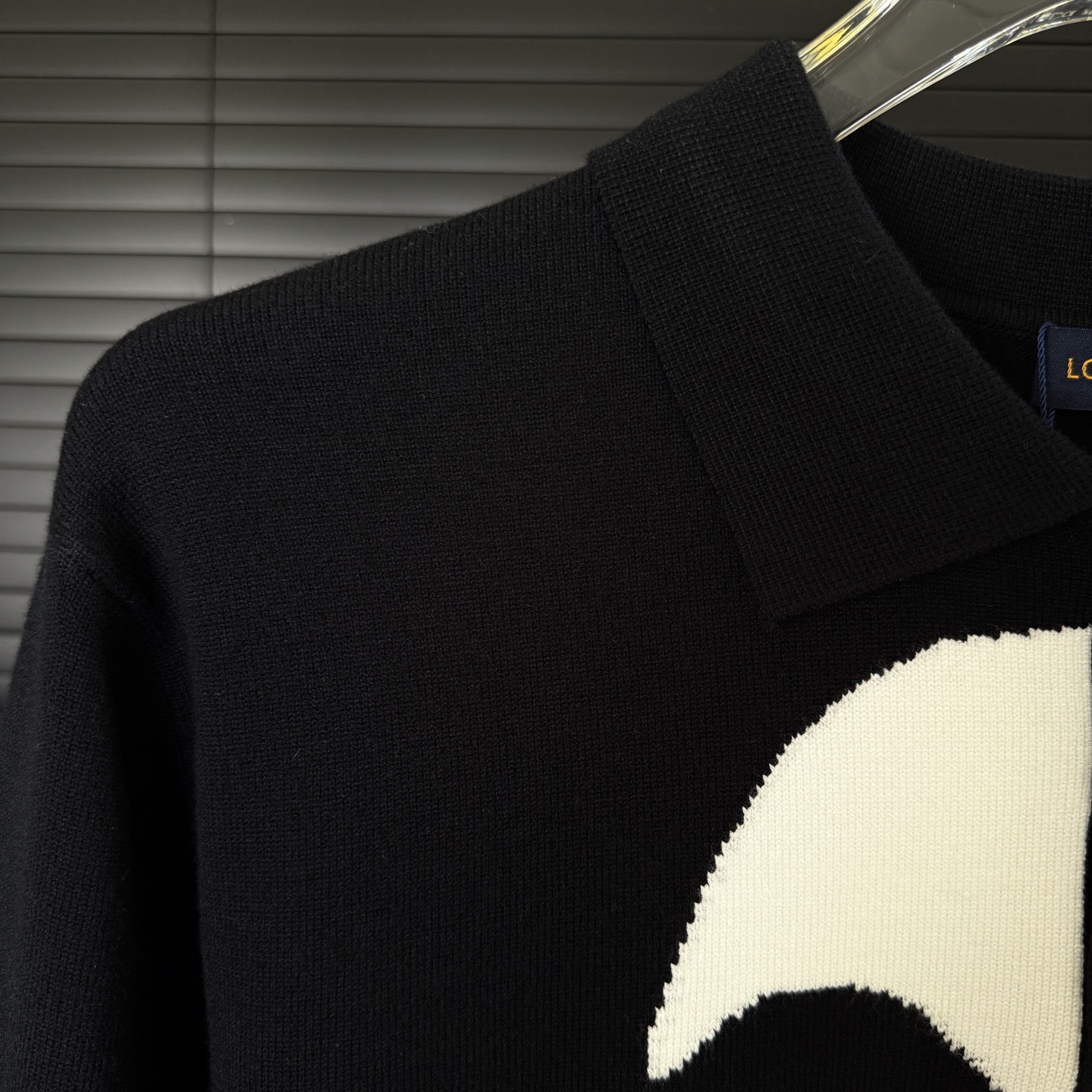 Louis Vuitton 2025 Fall/Winter new unisex logo intarsia knitted polo sweater. Available in black, sizes M to XXL.