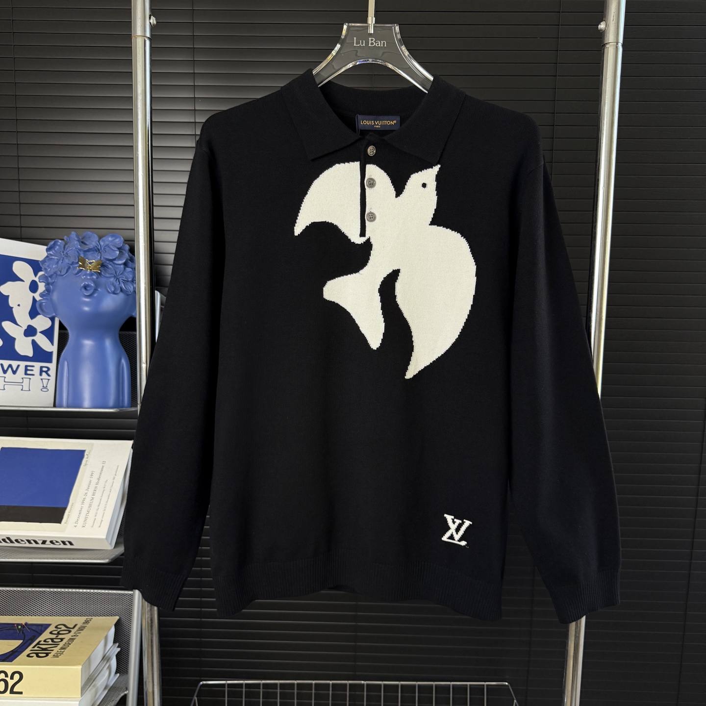 Louis Vuitton 2025 FW polo sweater, color-blocked swallow design, unisex sizes M-XXL.