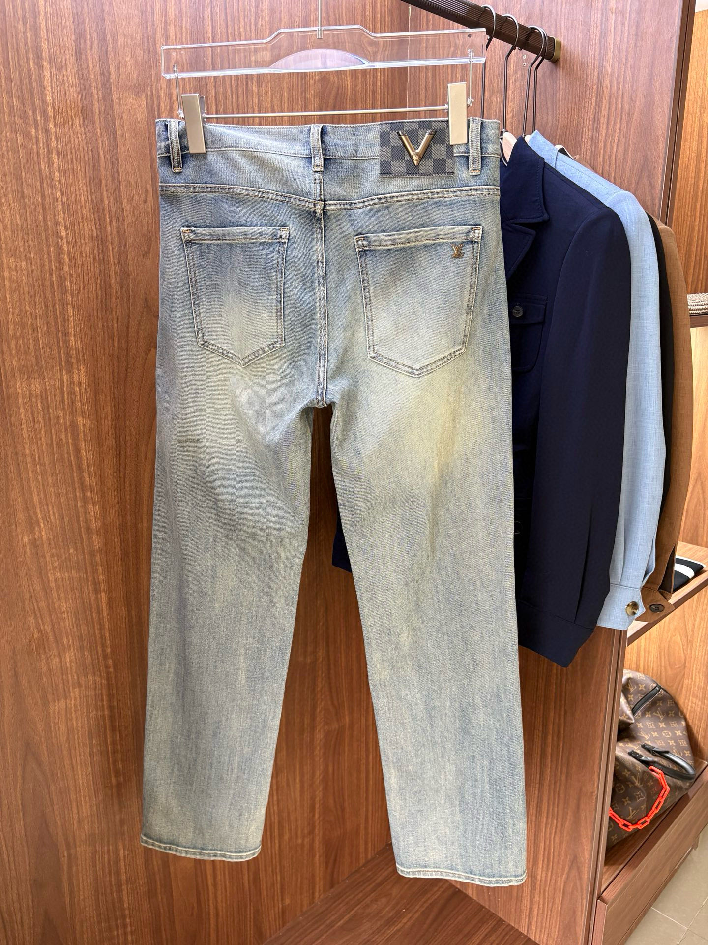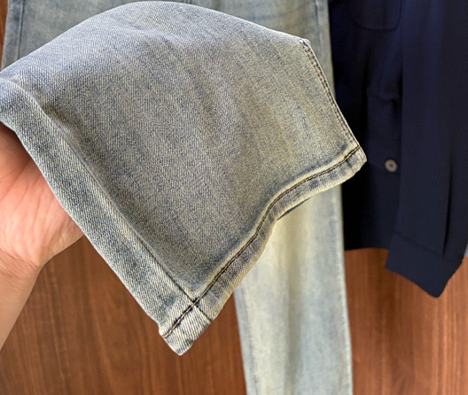 LV Thin Denim Jeans. 2025 latest style. 98% cotton, 2% spandex. Solid, slightly stretchy, comfortable. Simple design, hidden zipper, embossed pockets. Excellent fit.