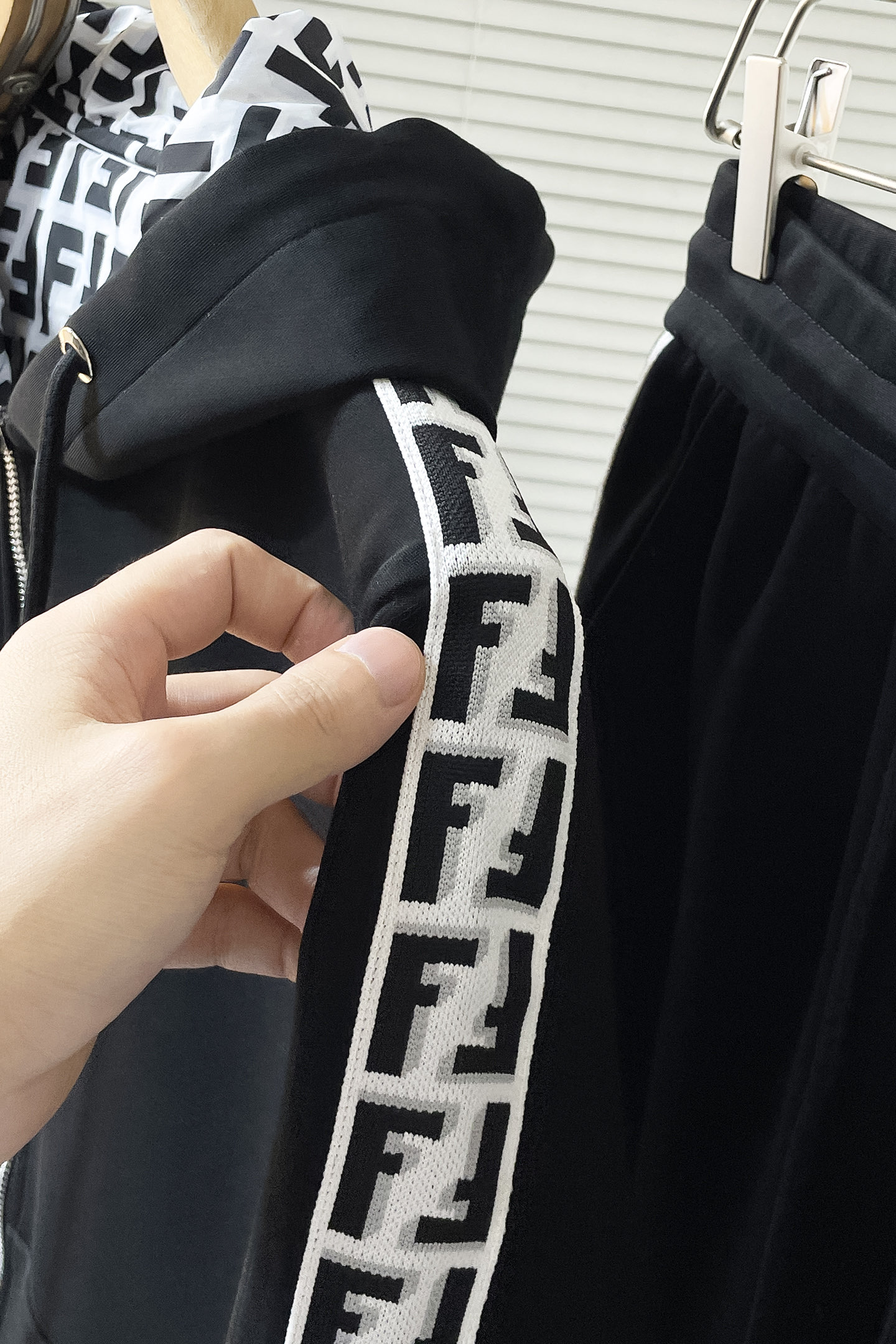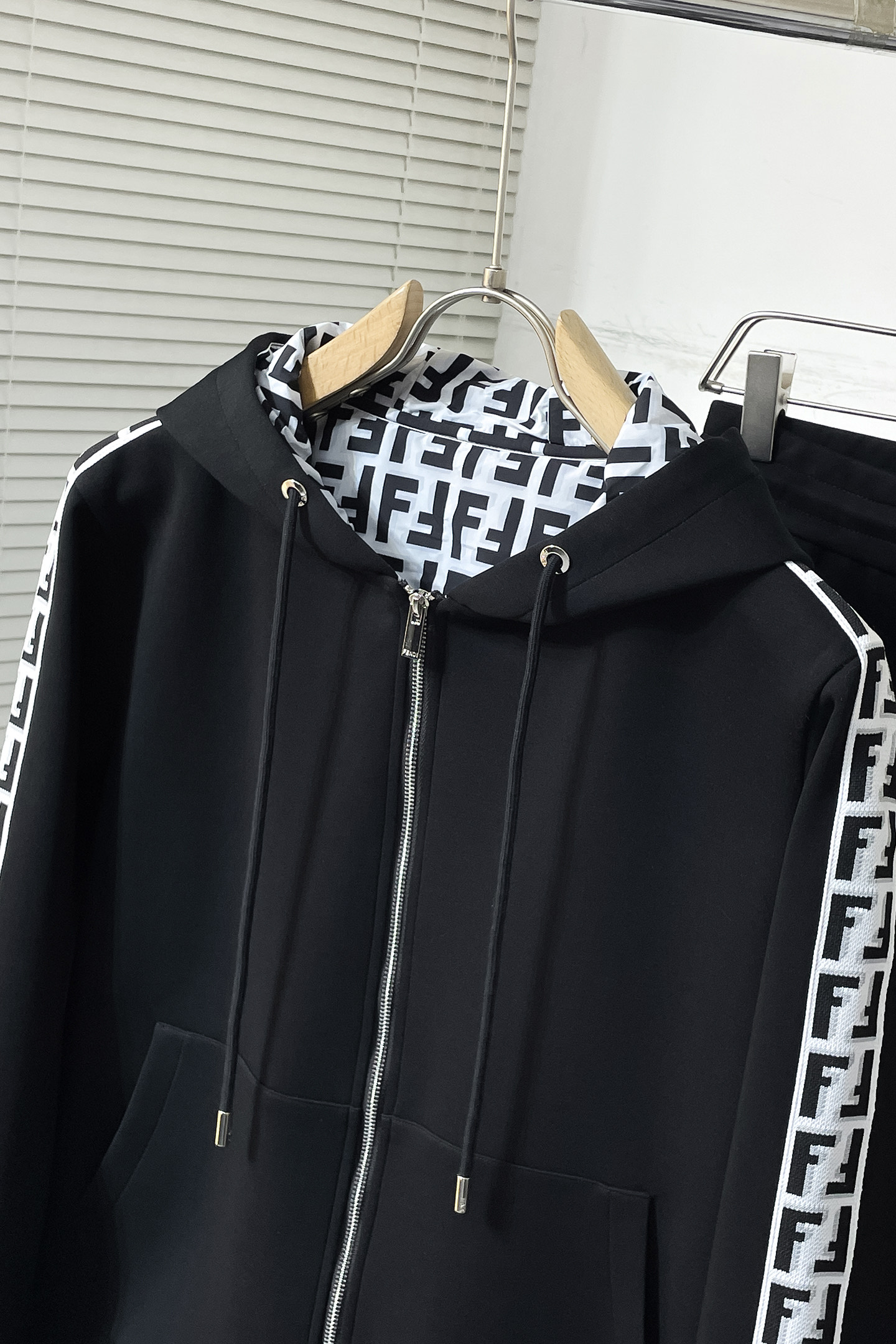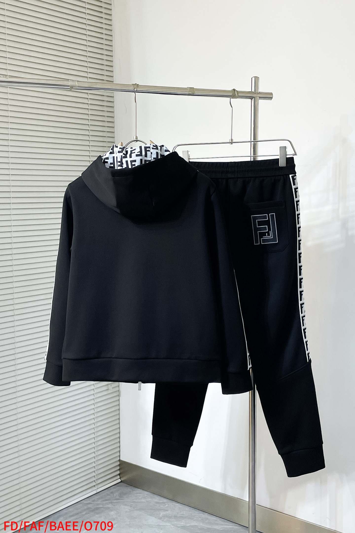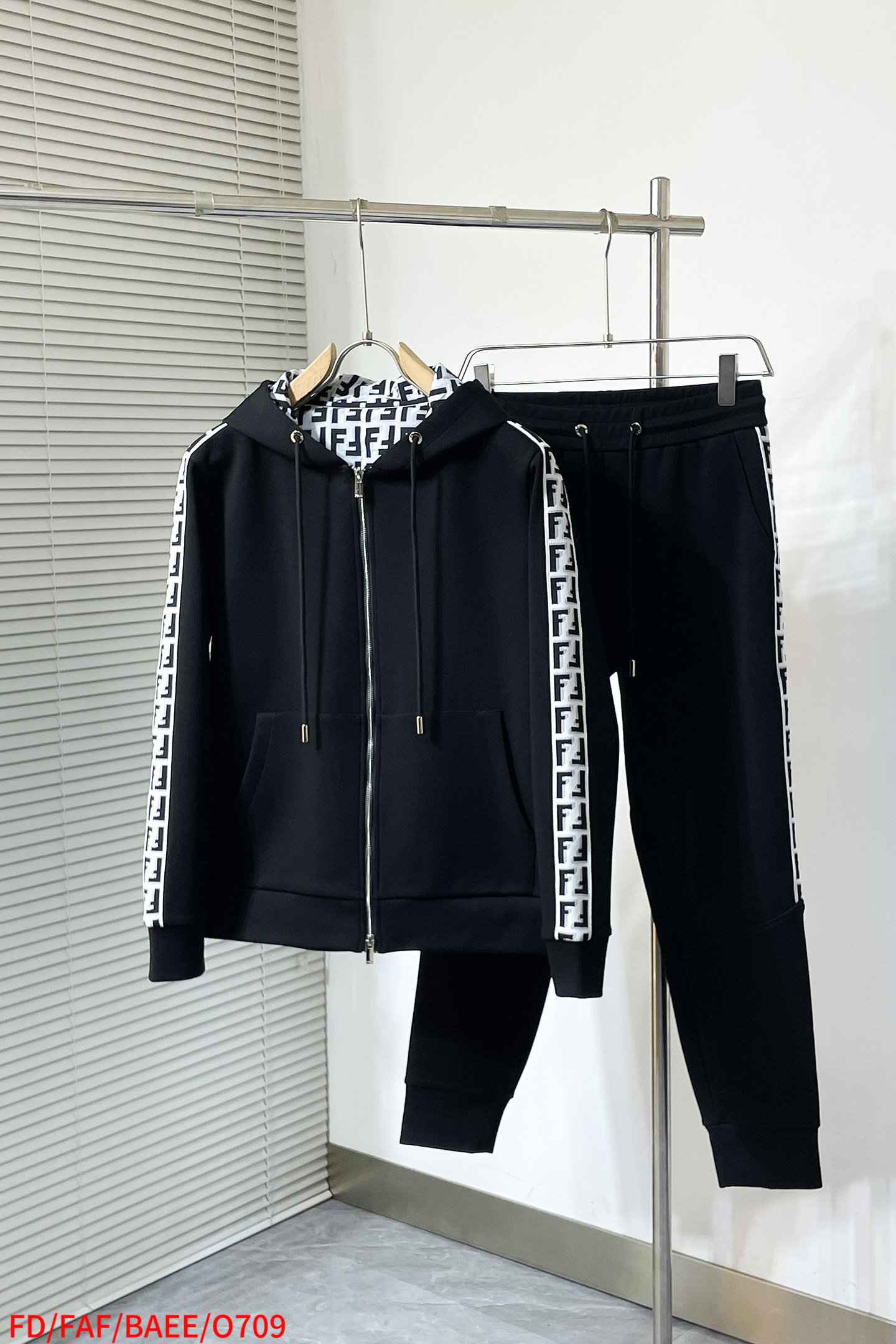 Fendi 2025 early autumn new set. Men's trendy, versatile urban style. Custom fabric, detailed design, minimalist elements. Colors: Black. Sizes: M-3XL.
