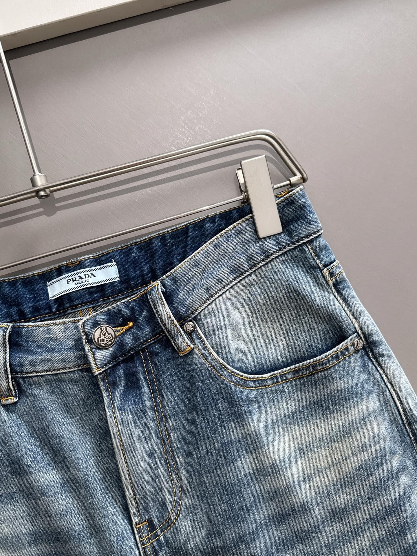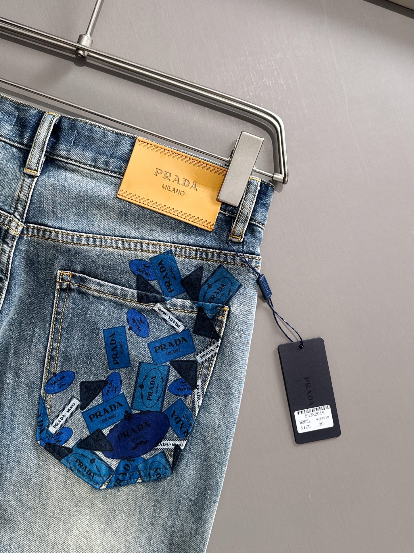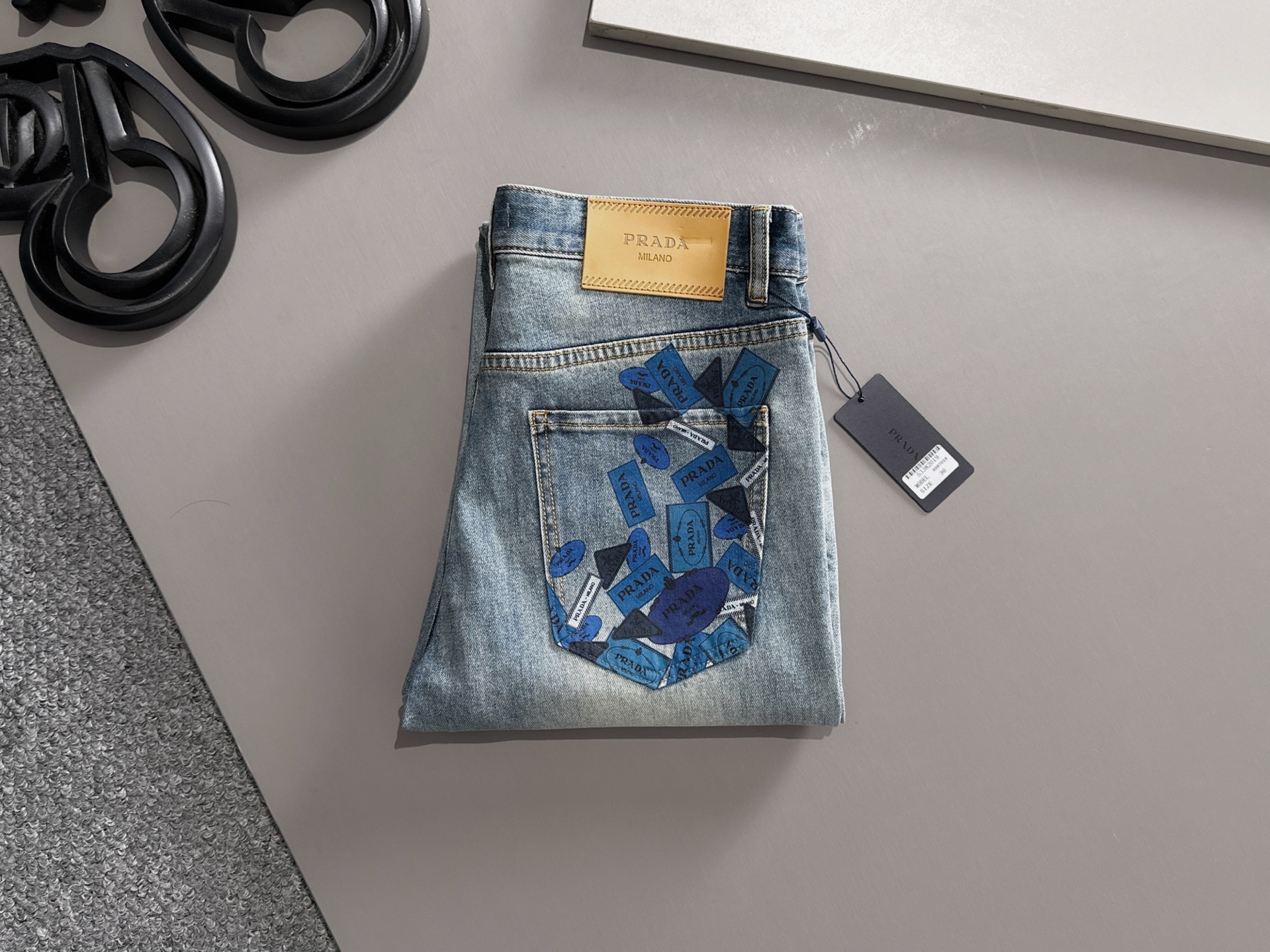 Prada 2025 Fall/Winter men's casual jeans. Top quality, official website available. Custom cotton denim for casual/formal wear. Sizes 29-38.