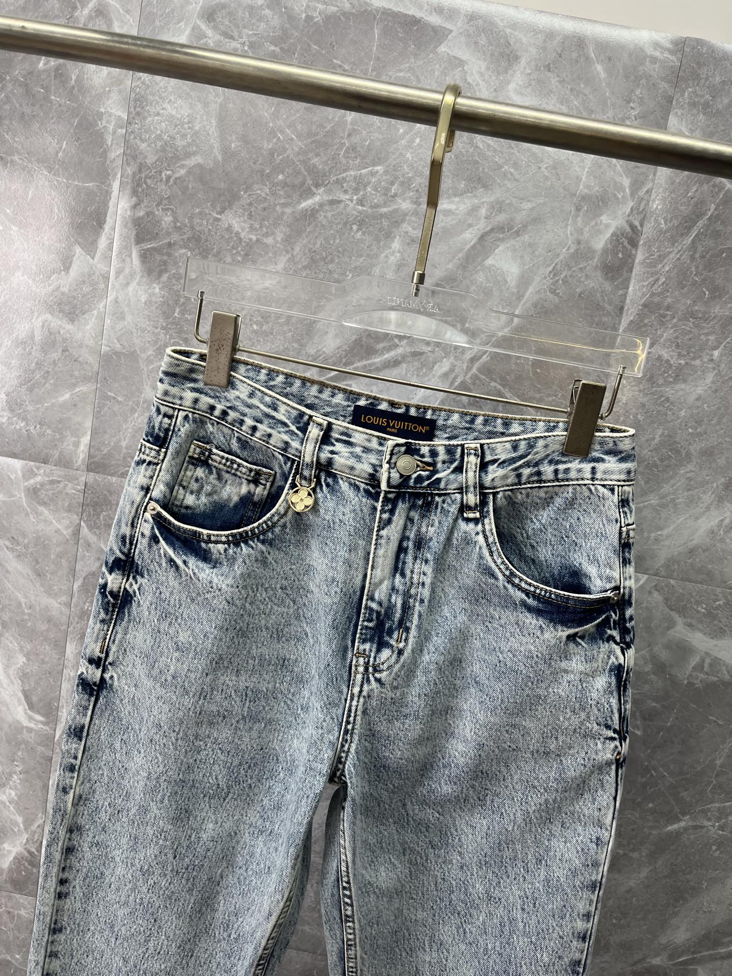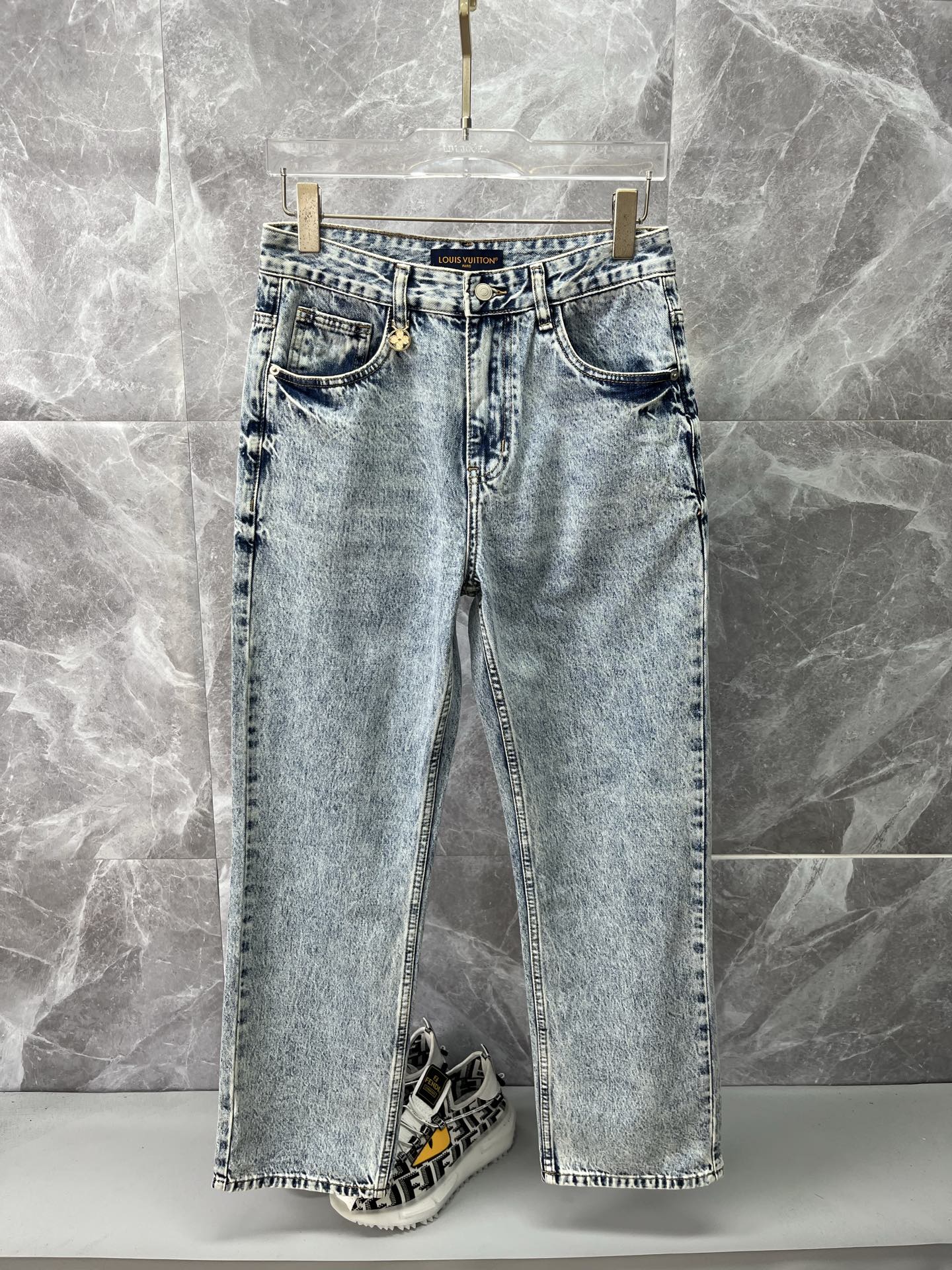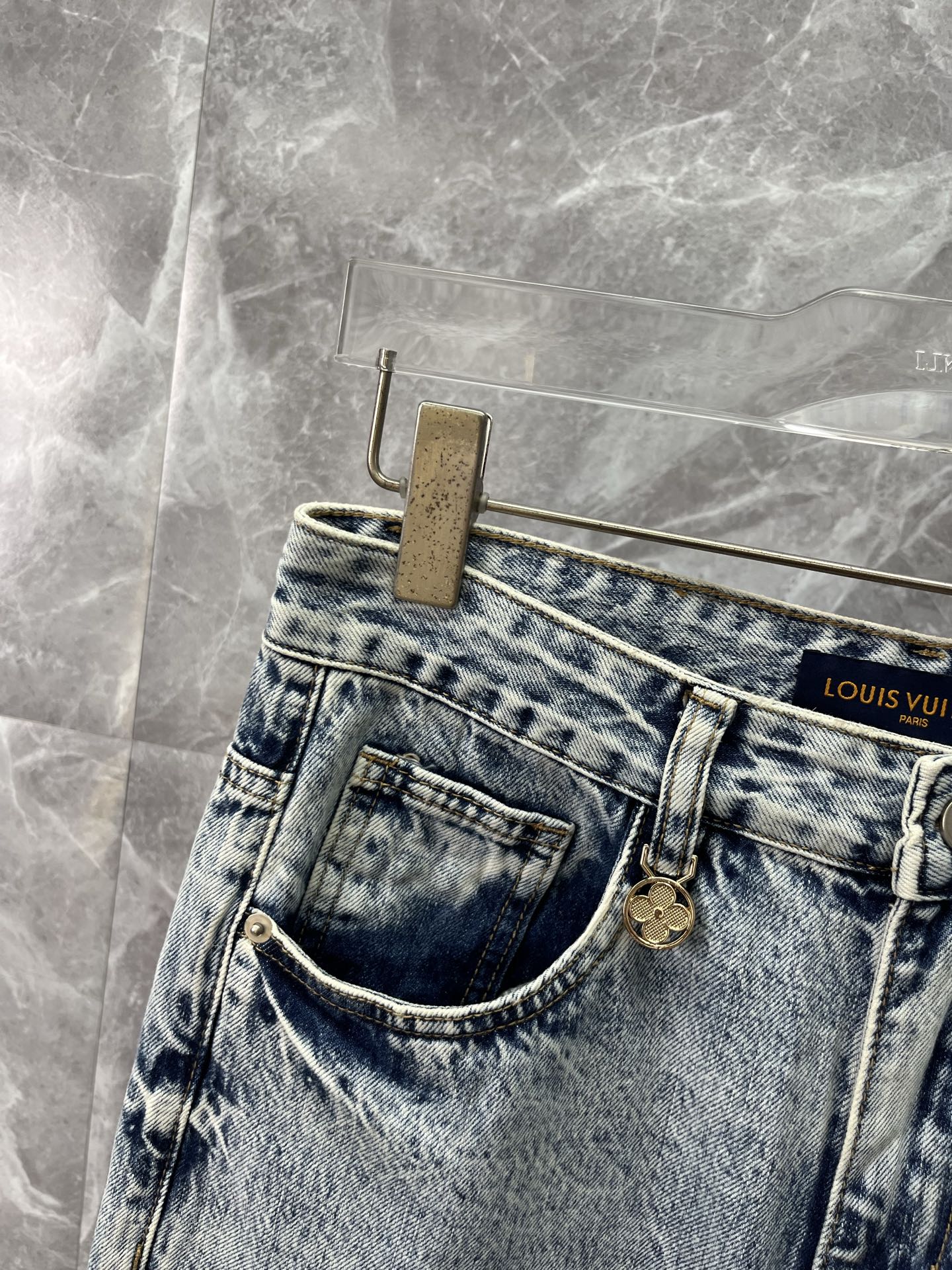 LV Louis Vuitton 2025 men's jeans. Comfortable stretch fabric, elegant design, premium denim, custom hardware, leather label. Sizes 28-38.