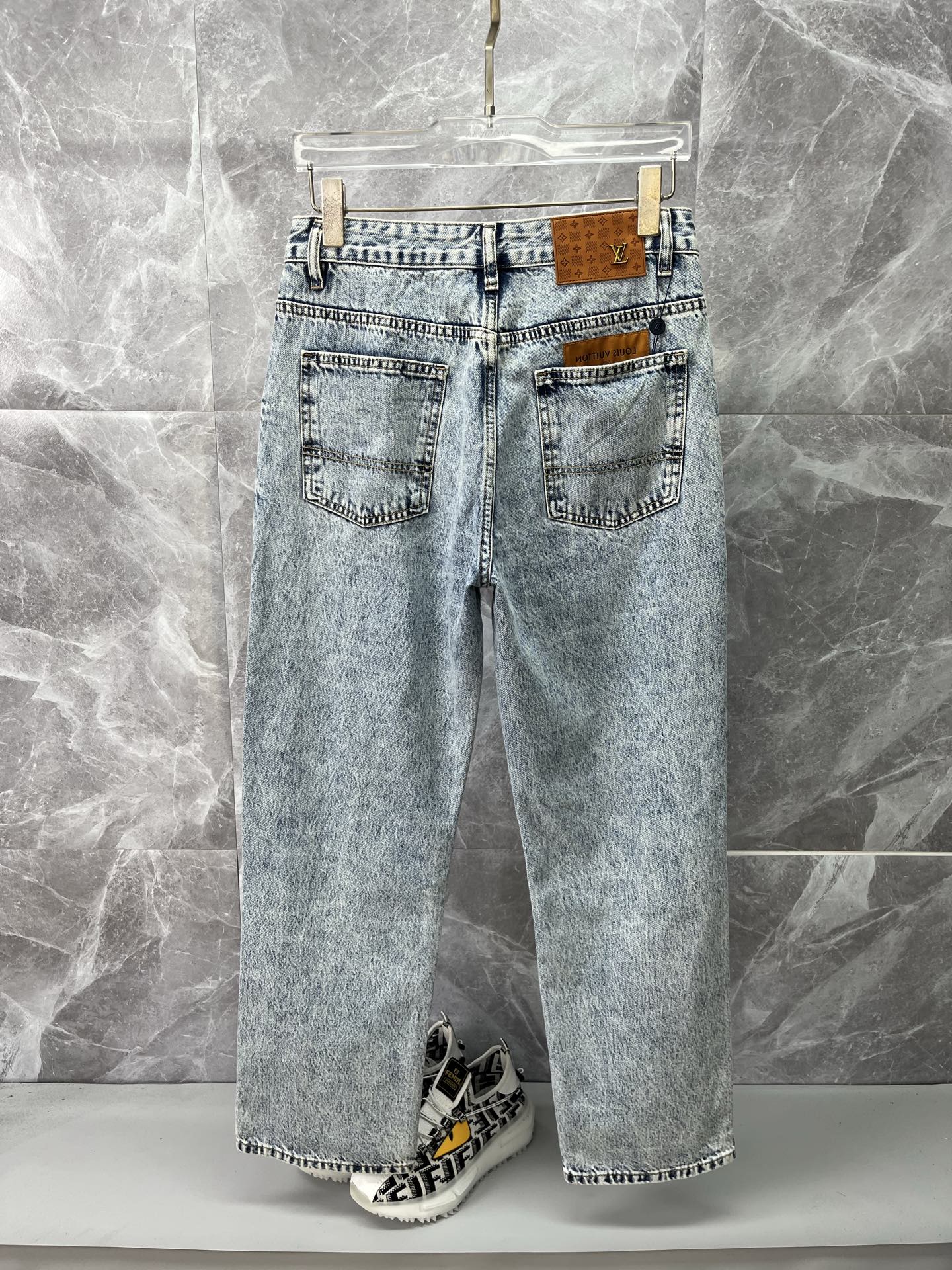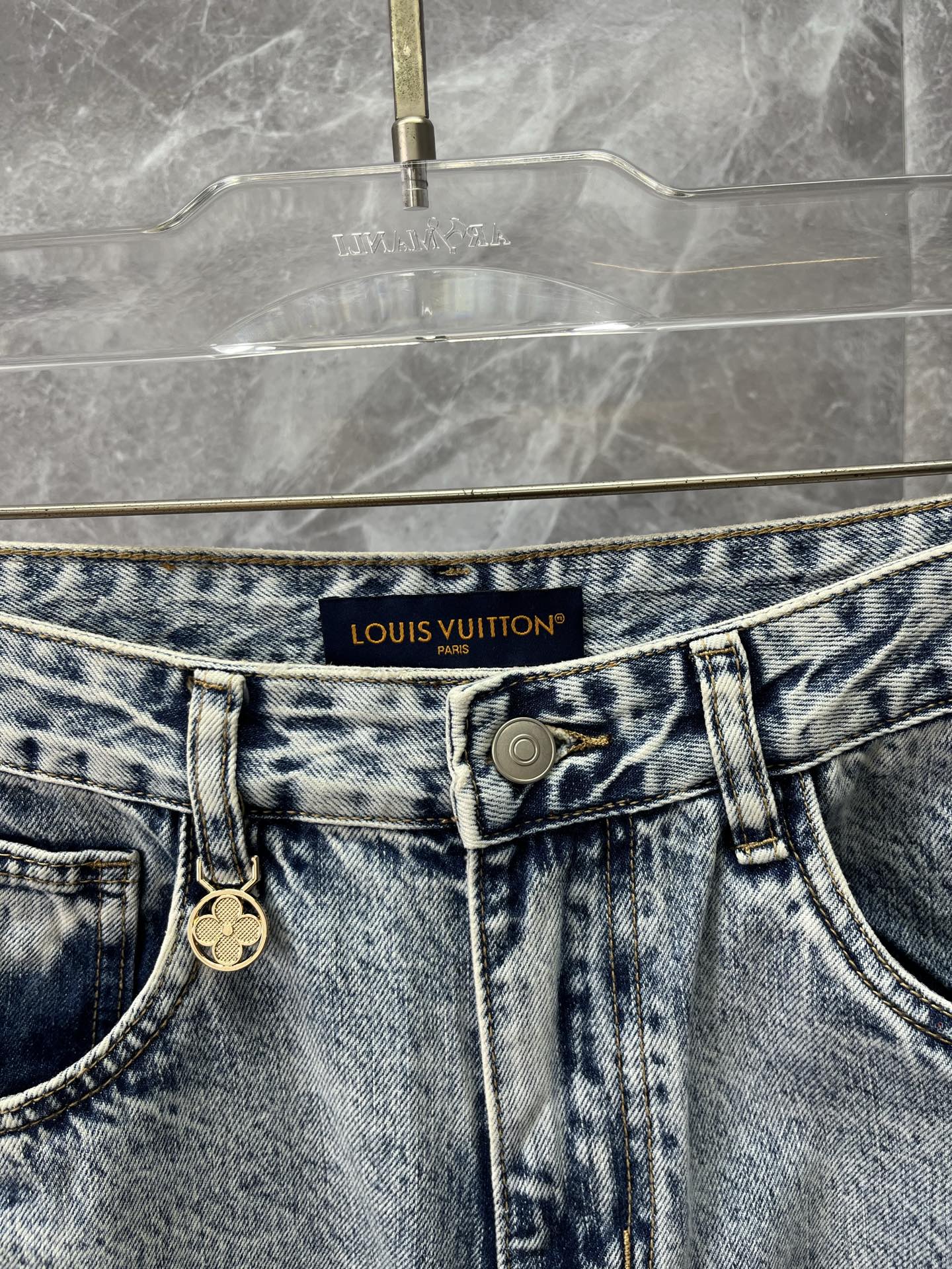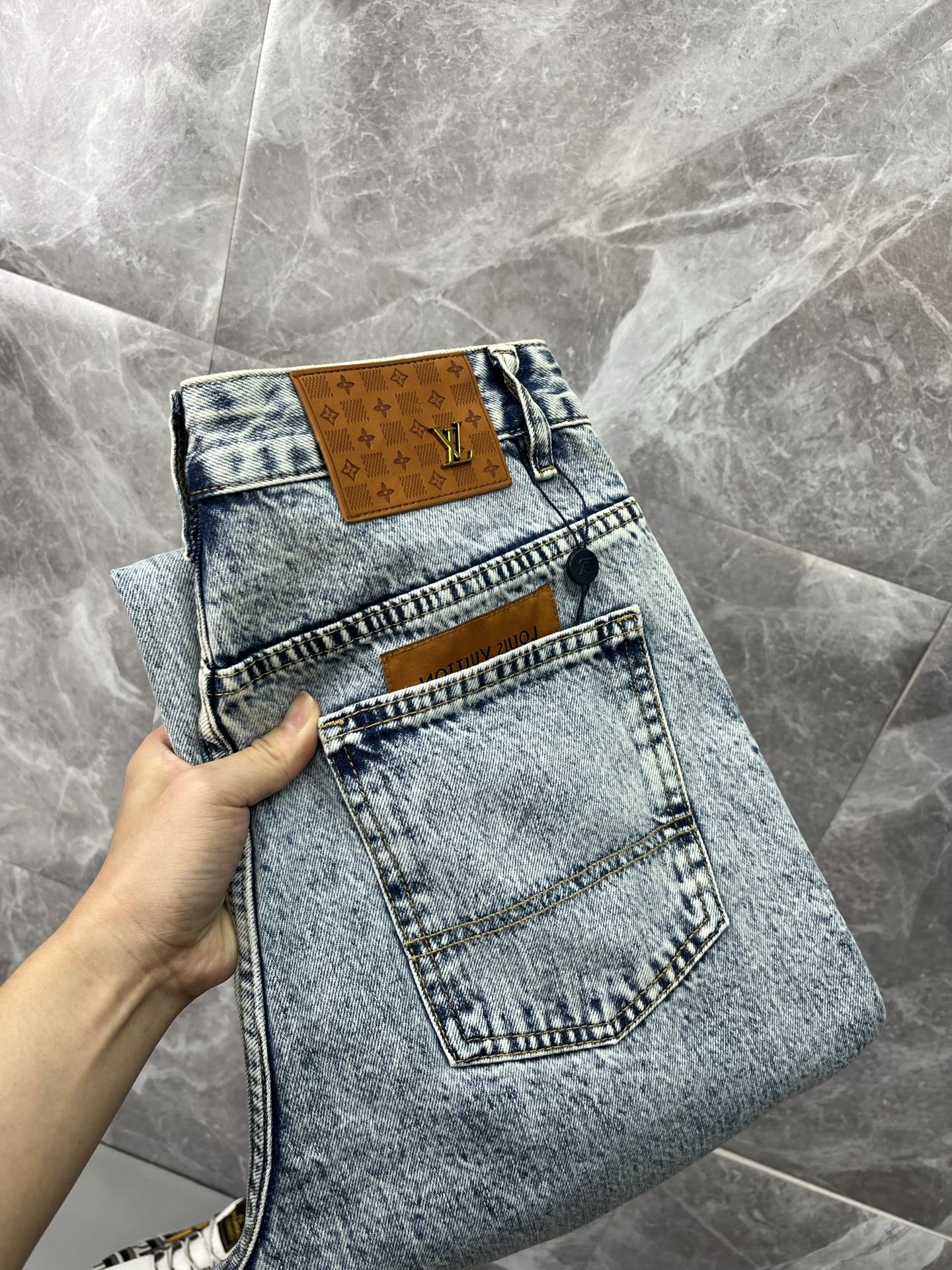 LV Louis Vuitton 2025 men's jeans. Comfortable stretch fabric, elegant design, premium denim, custom hardware, leather label. Sizes 28-38.