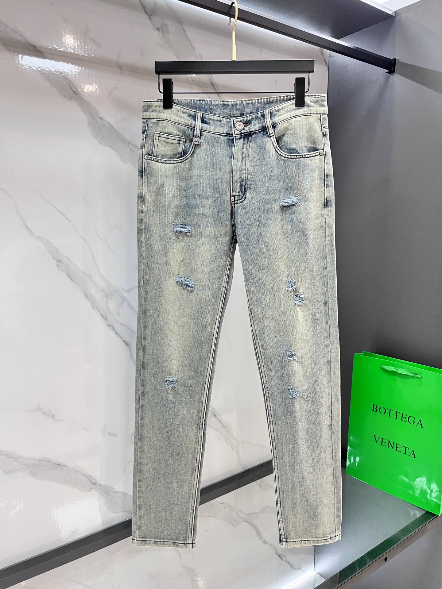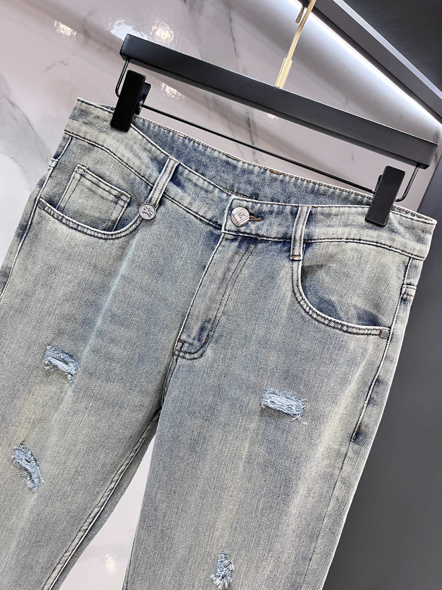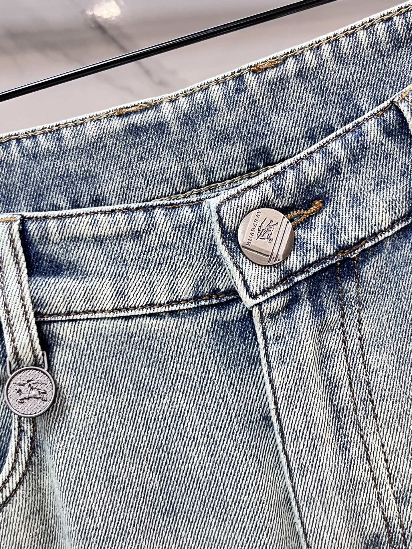 Burberry 2025SS early spring lightweight distressed jeans. Imported stretch denim, comfortable and breathable. Metal trim, flattering fit. Sizes 29-40.