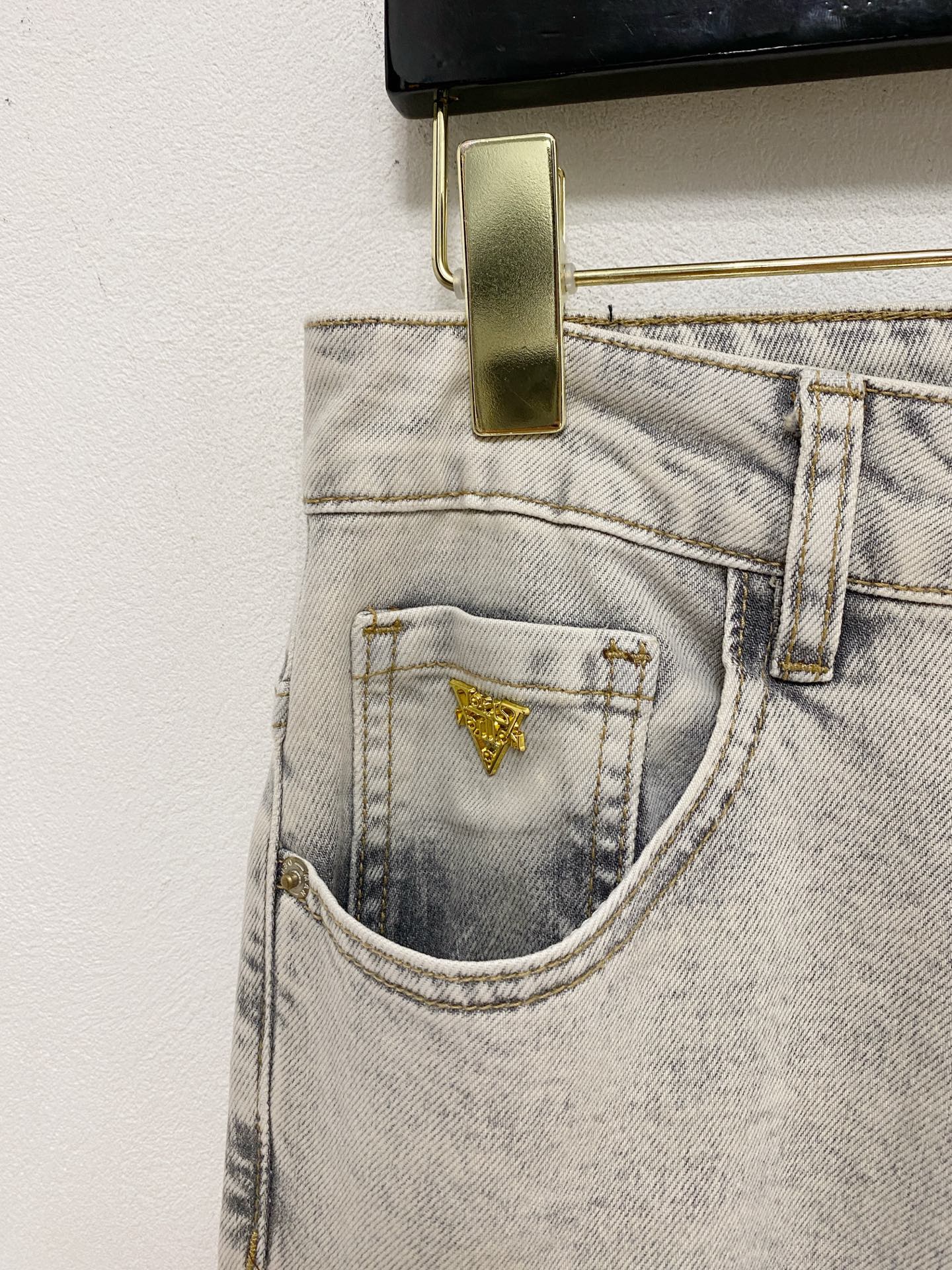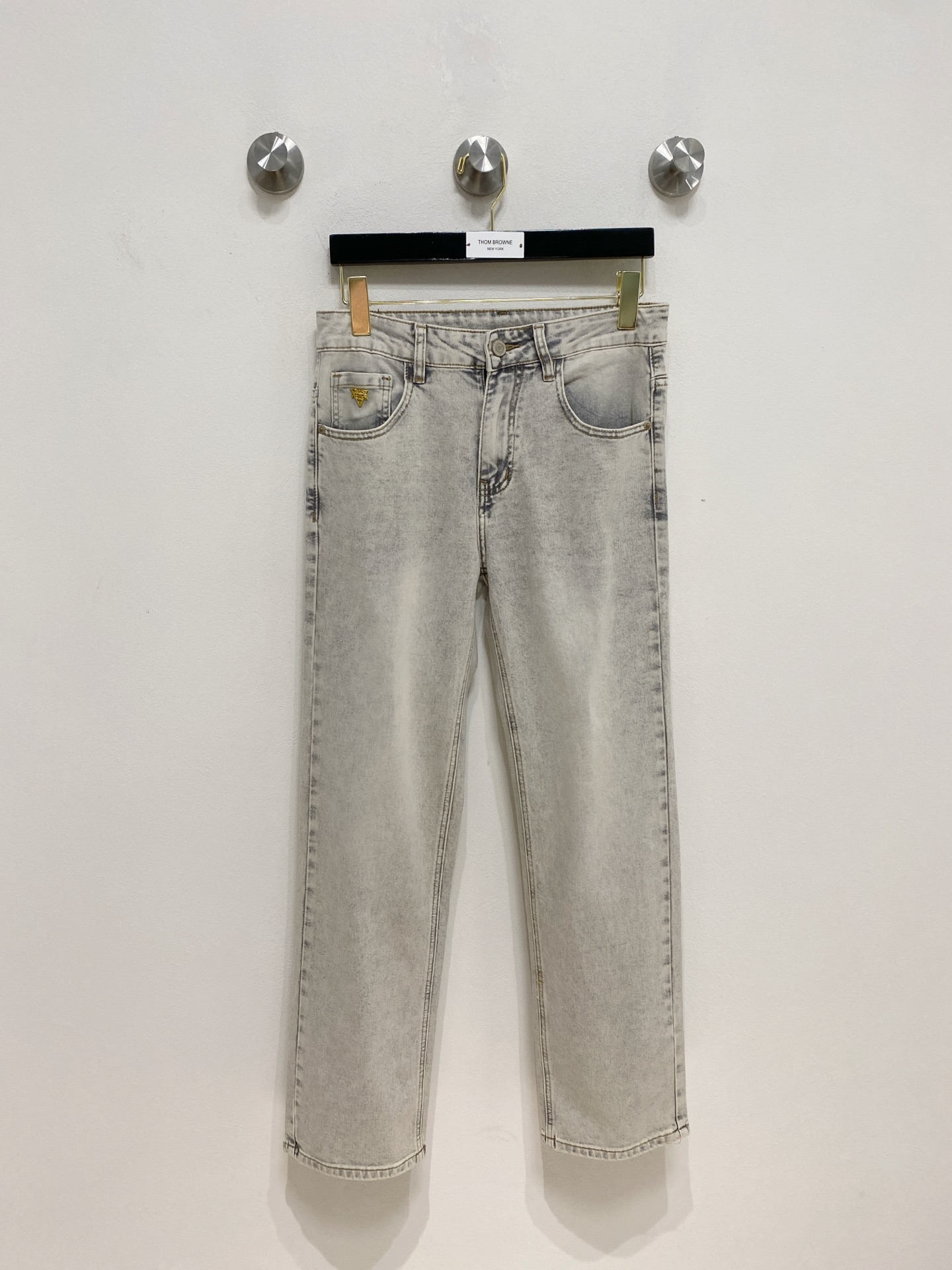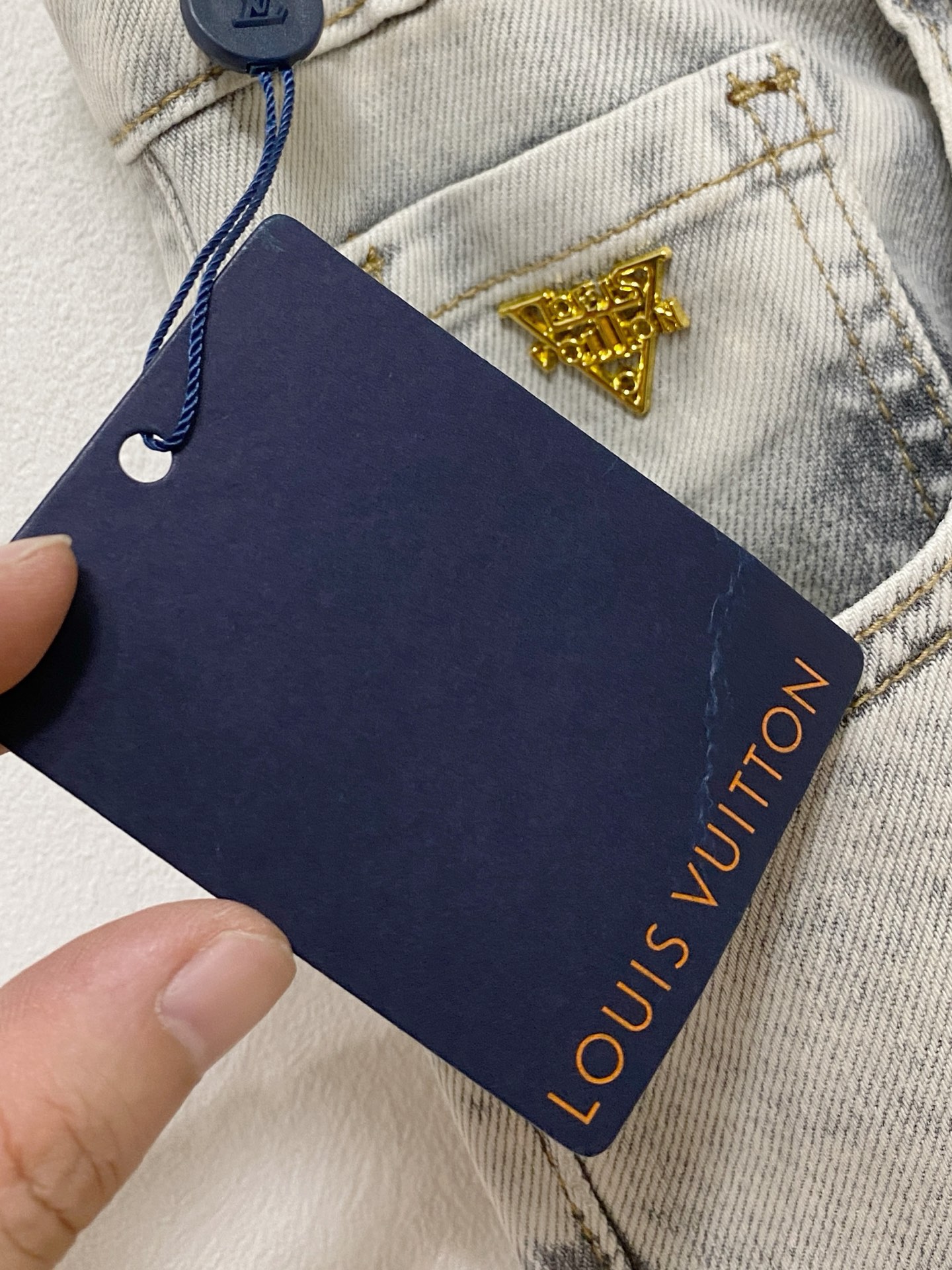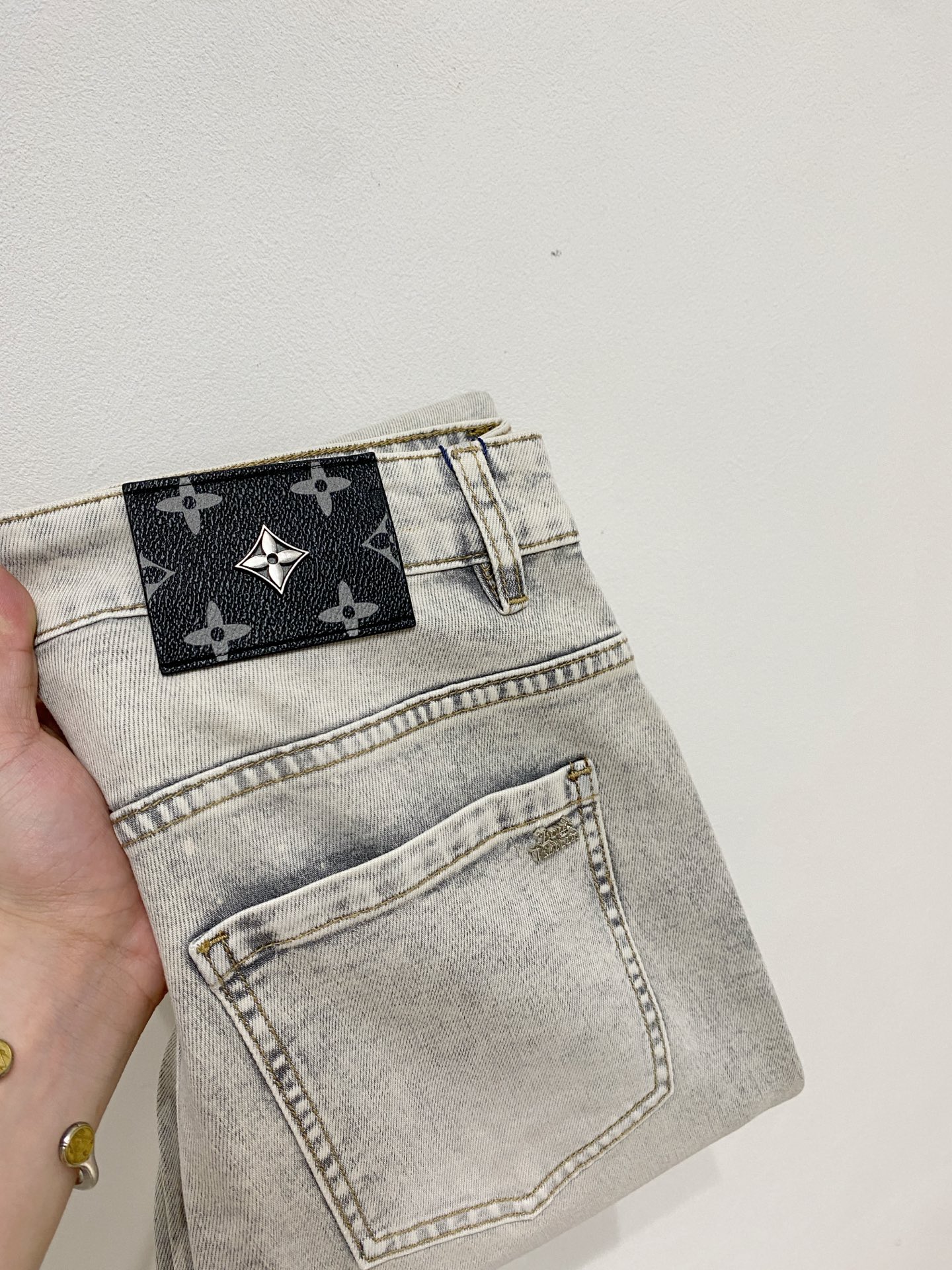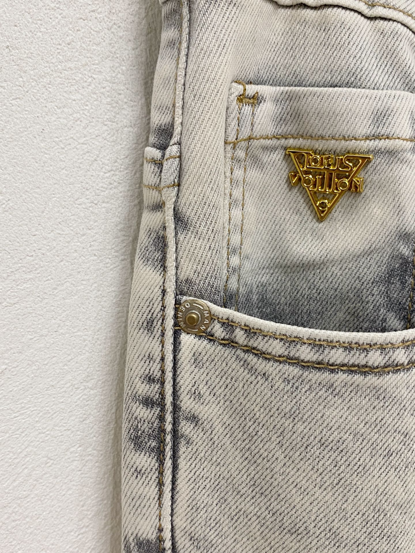 LV 2025 Spring/Summer Men's Washed Slim Straight Jeans. Italian denim, minimalist design, leather waistband logo. Versatile, slim fit, sizes 29-38.