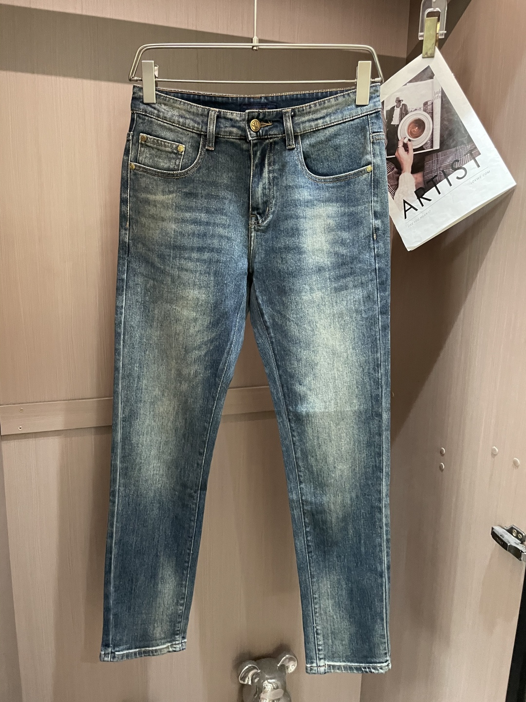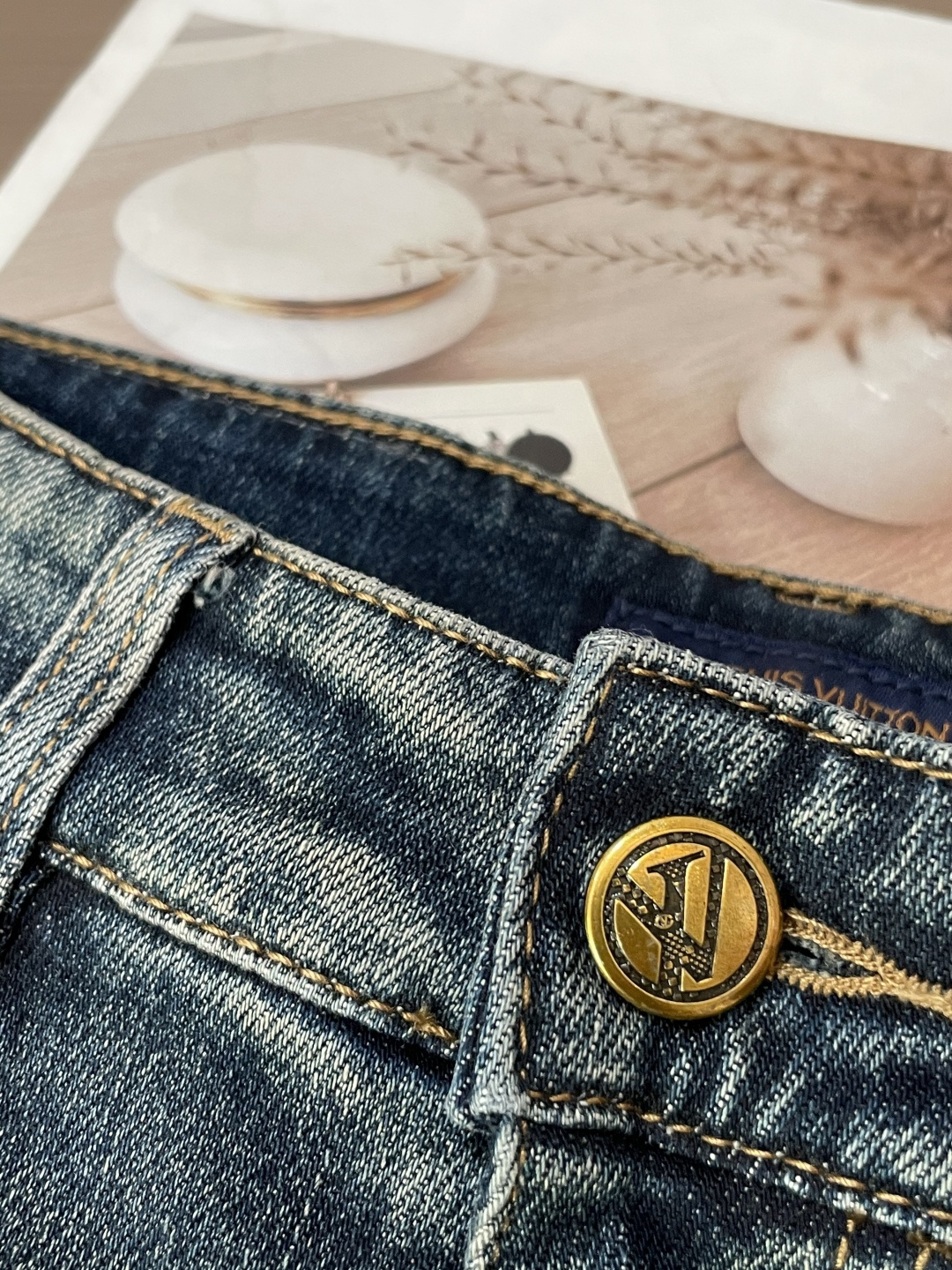 LV Thin Denim Jeans. 2025 latest style. 98% cotton, 2% spandex. Solid, slightly stretchy, comfortable. Simple design, hidden zipper, embossed pockets. Excellent fit.