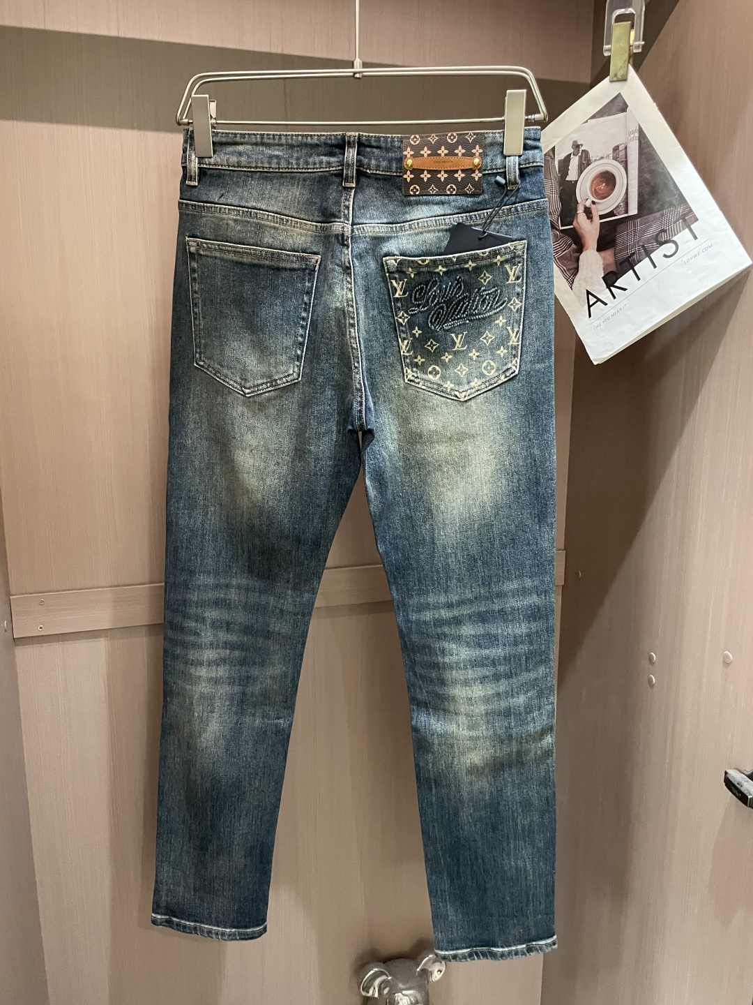 Louis Vuitton 2025 new men's jeans. Stretchy denim, exclusive release, elegant design with fine craftsmanship. Sizes 28-38, ships next day.
