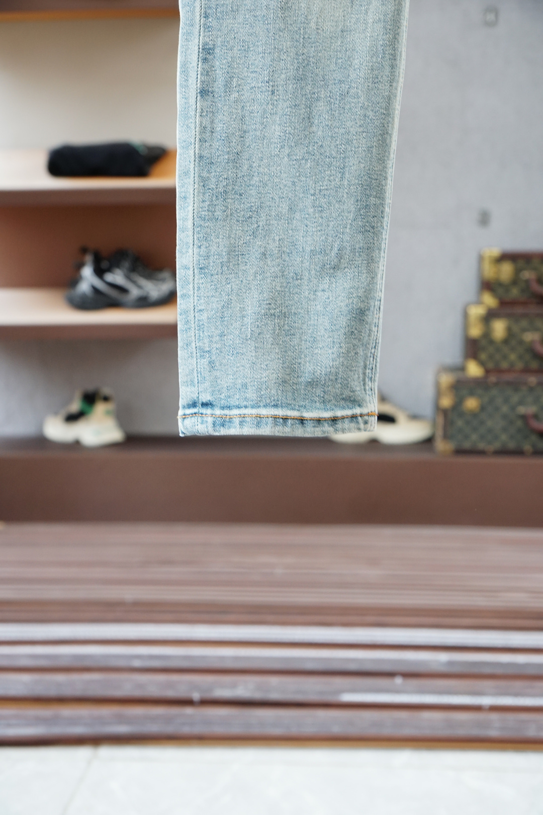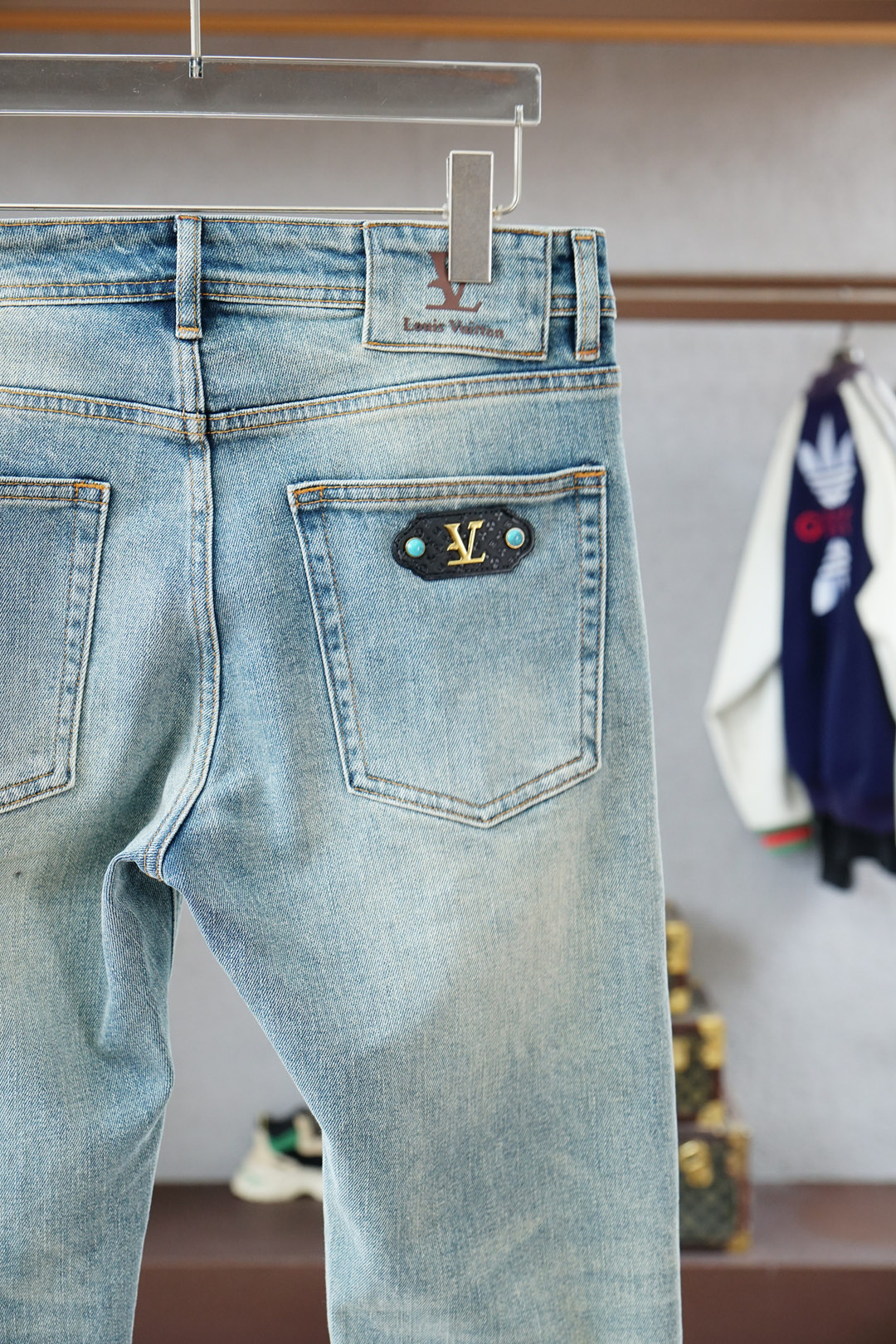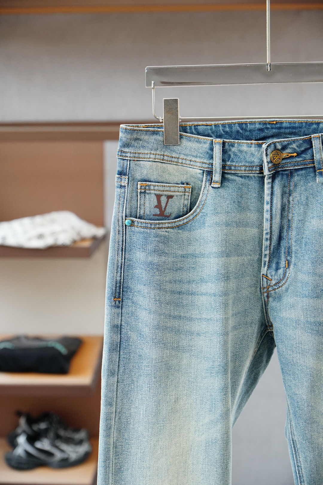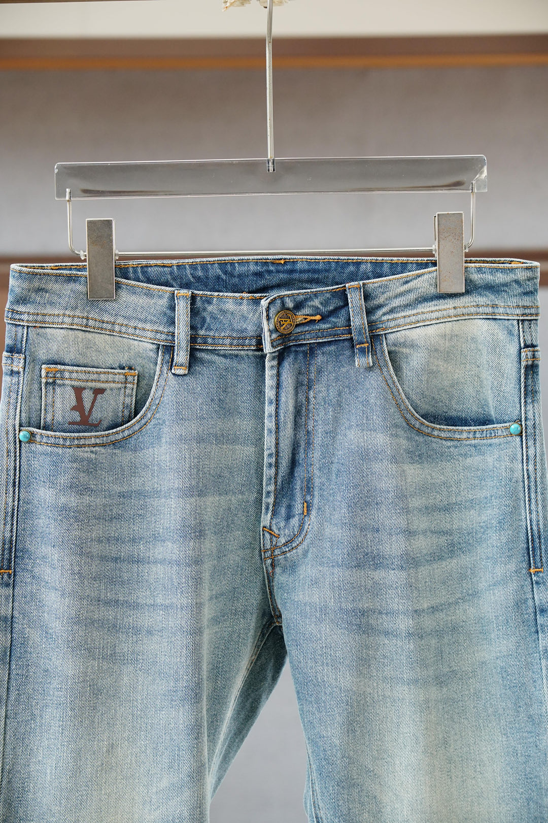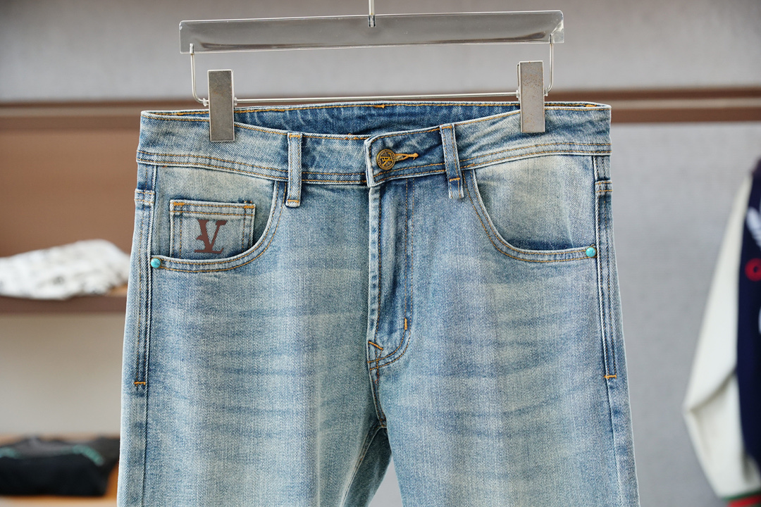 Louis Vuitton 25SS vintage wash jeans. Minimalist design, versatile for business or casual wear. Made with premium Japanese denim, eco-friendly wash. Slim fit, sizes 30-38 (no 35).