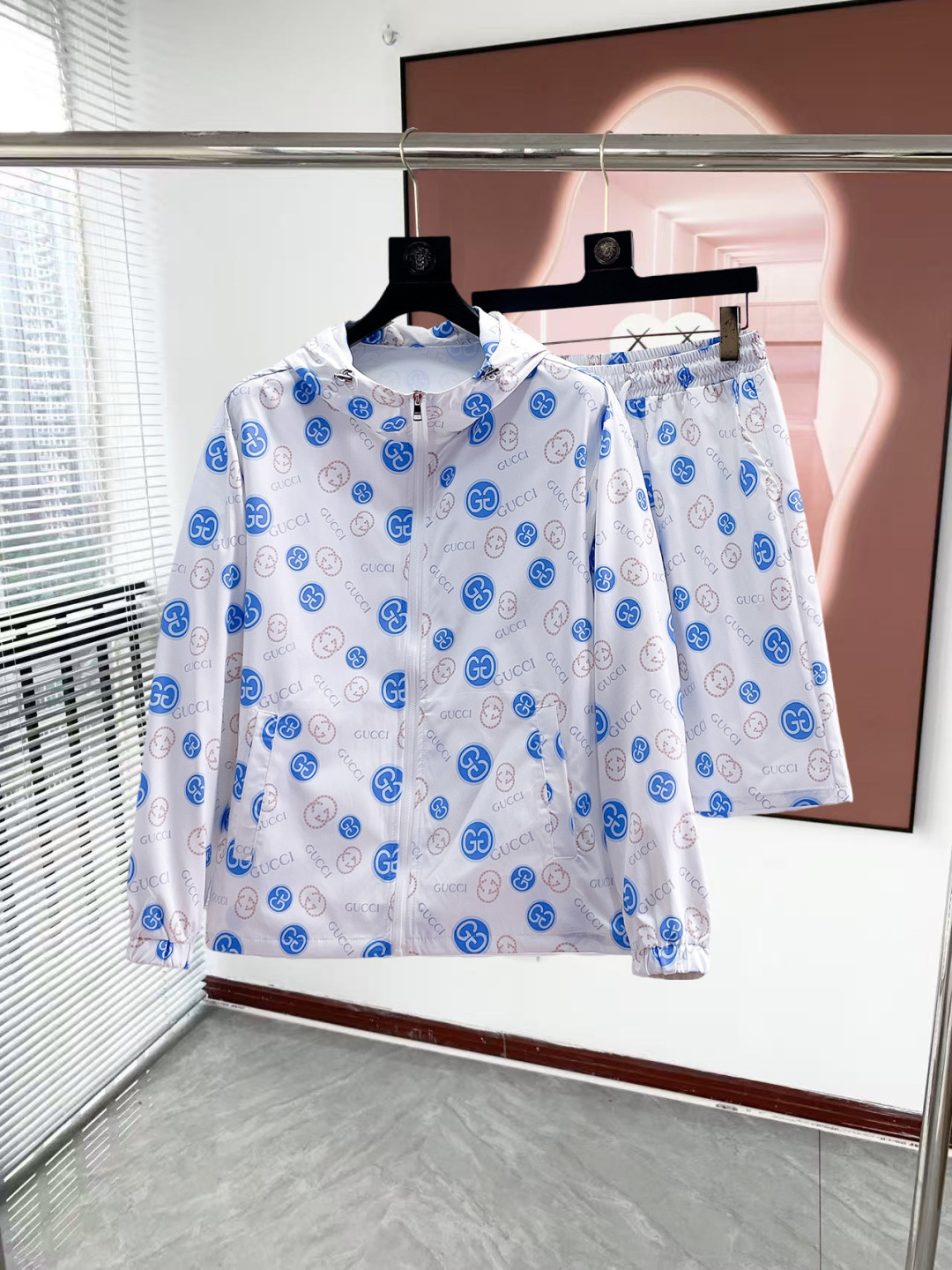 Gucci Fendi 2025 summer men's casual set with all-over FF logo print. Versatile, age-free design. Made from custom polyester. Sizes M-3XL.