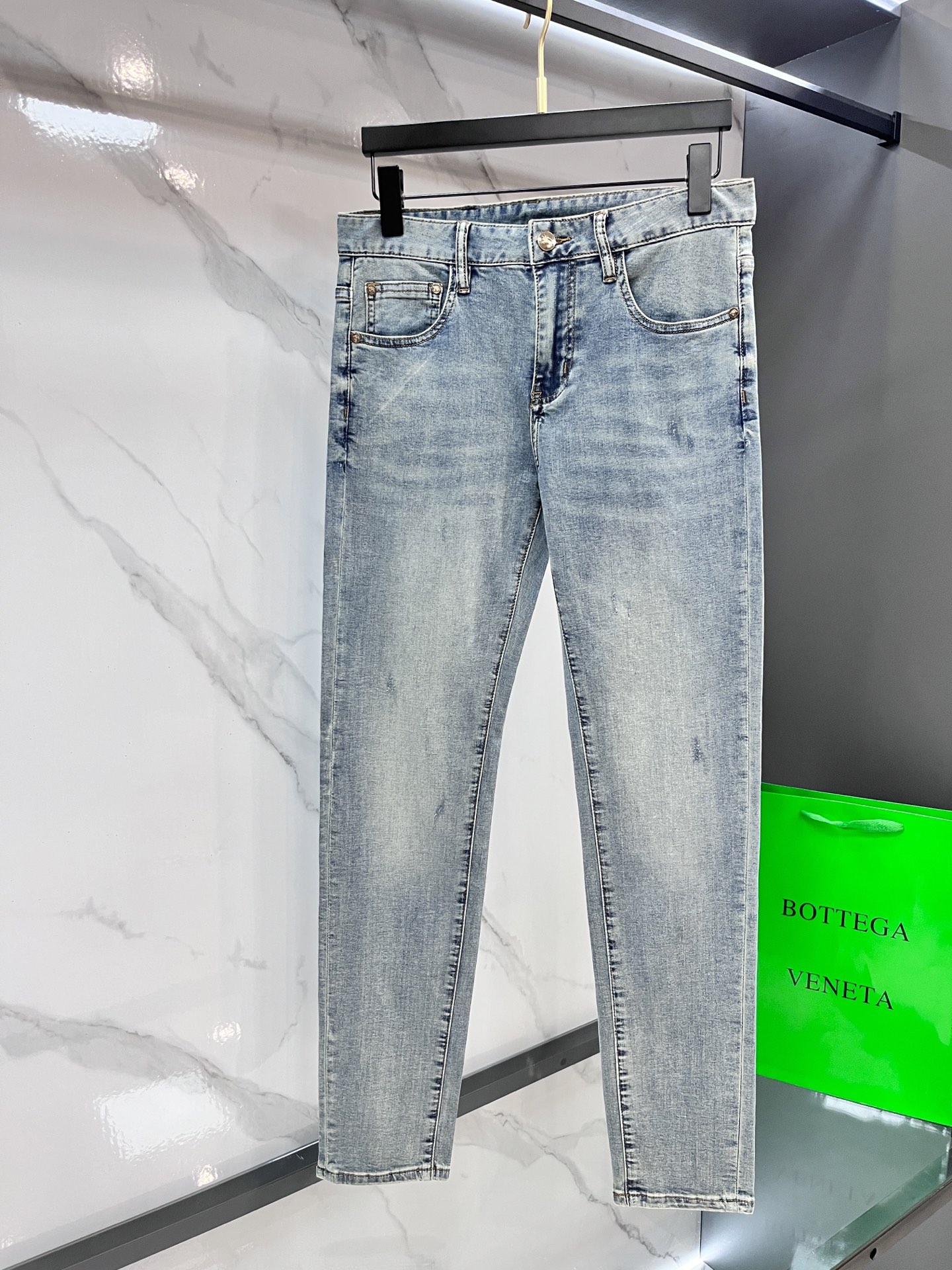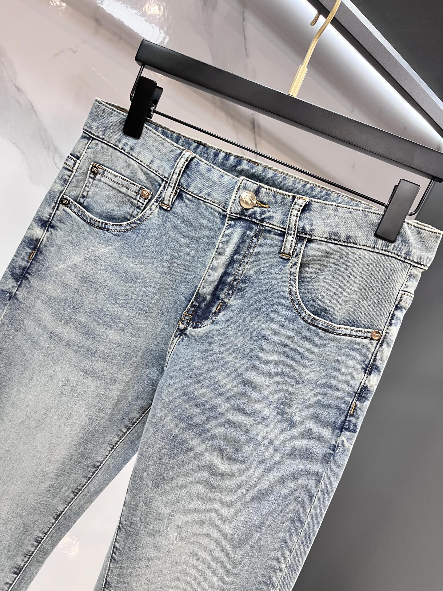 LV Thin Denim Jeans. 2025 latest style. 98% cotton, 2% spandex. Solid, slightly stretchy, comfortable. Simple design, hidden zipper, embossed pockets. Excellent fit.
