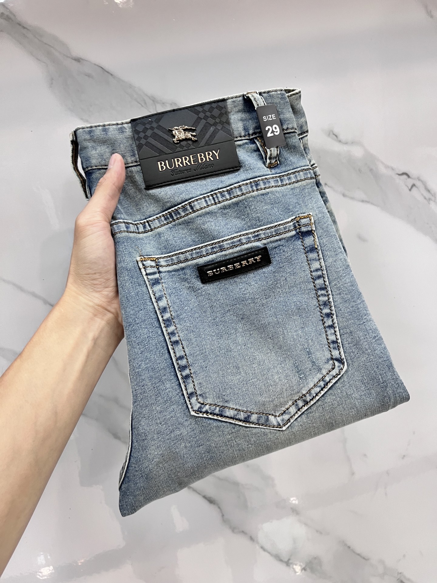 Burberry 2025SS early spring lightweight jeans. Imported stretch fabric, comfortable and breathable. Hardware trim, excellent fit. Sizes 29-38.