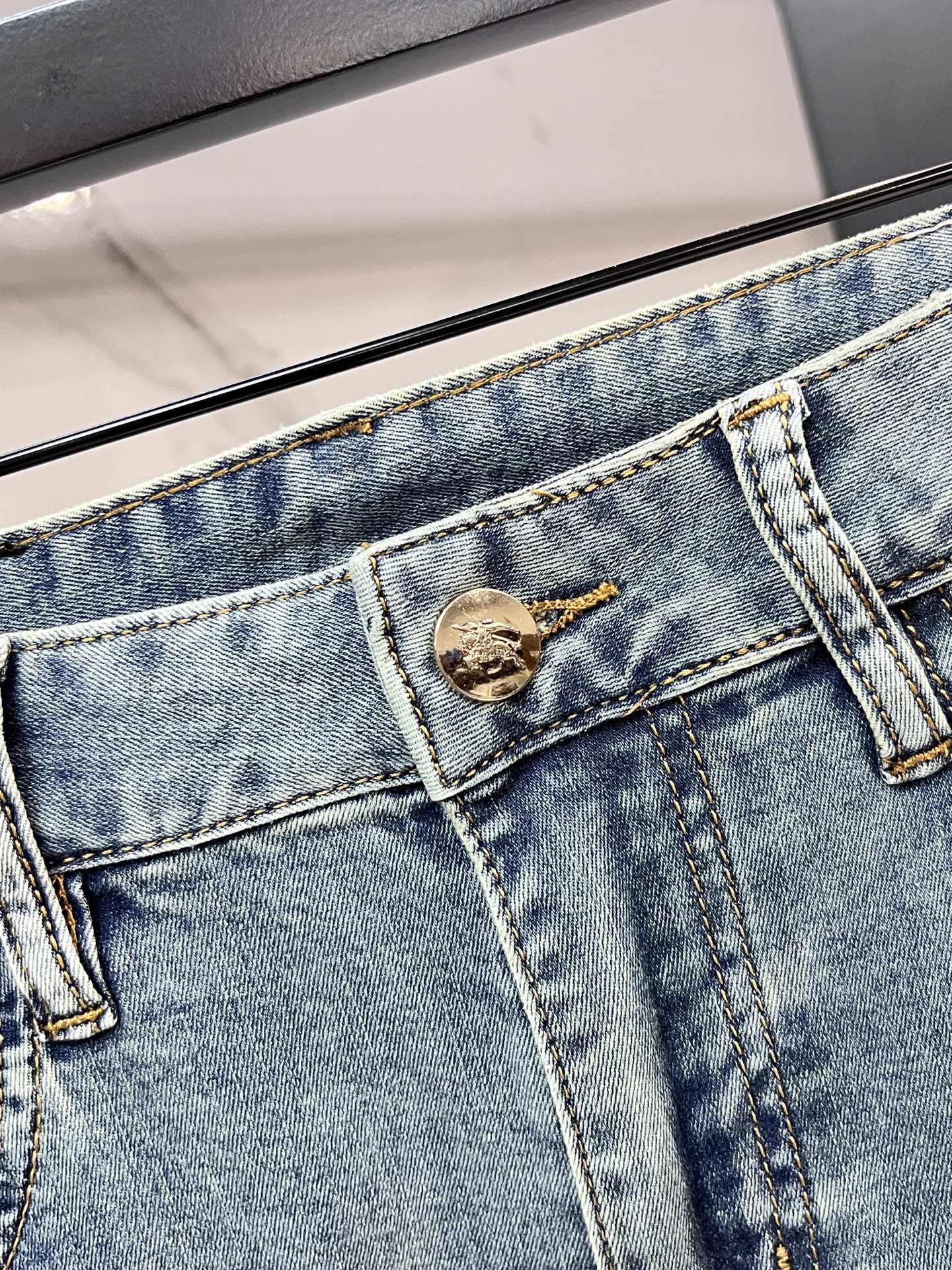 Burberry 2025SS early spring lightweight distressed jeans. Imported stretch denim, comfortable and breathable. Metal trim, excellent fit. Sizes 29-38.