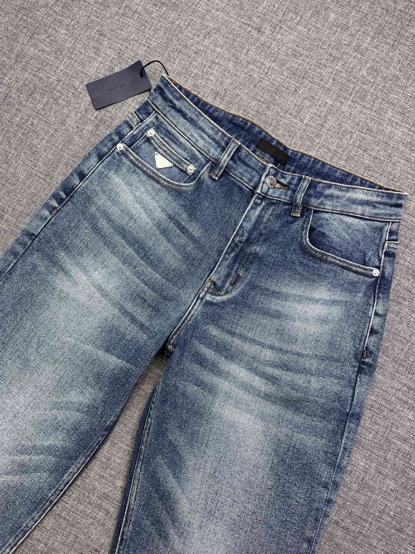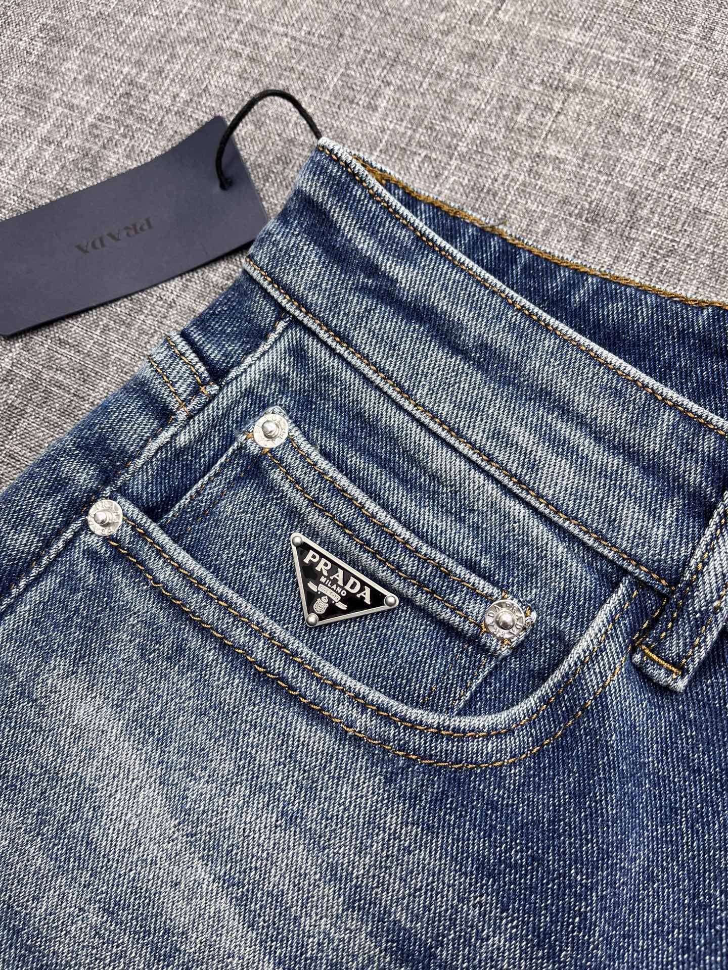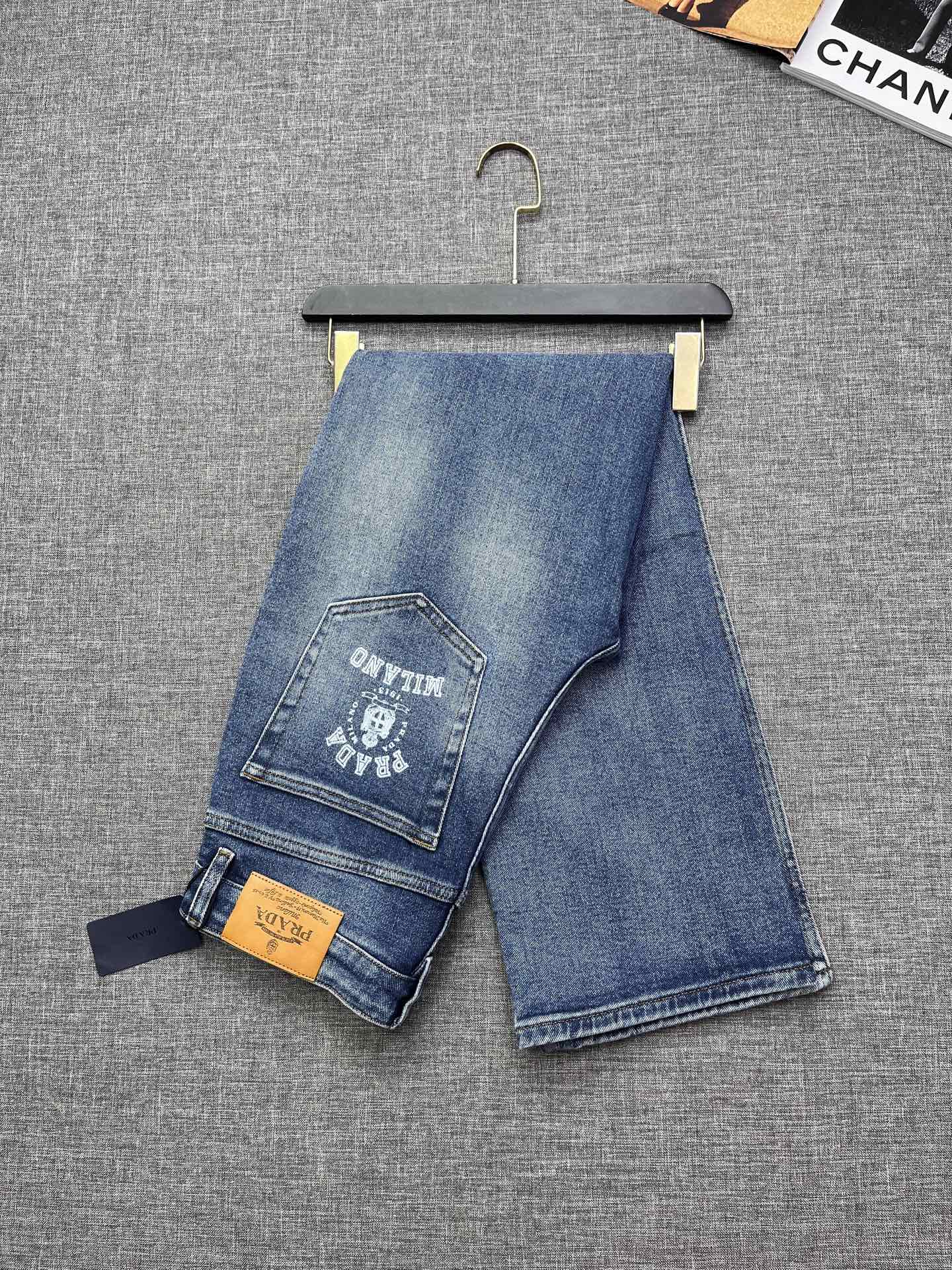 PRADA wide-leg jeans. 2025 rare trade order. Straight cut, slim fit, men's premium cotton stretch denim. Versatile four-season design. Exclusive release. Sizes 29-38.