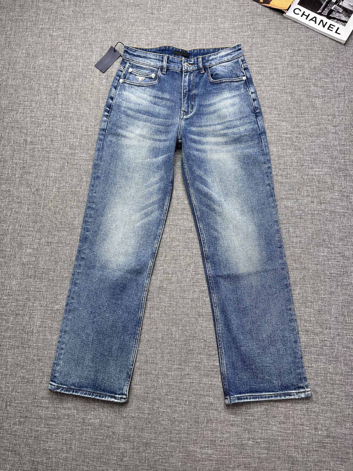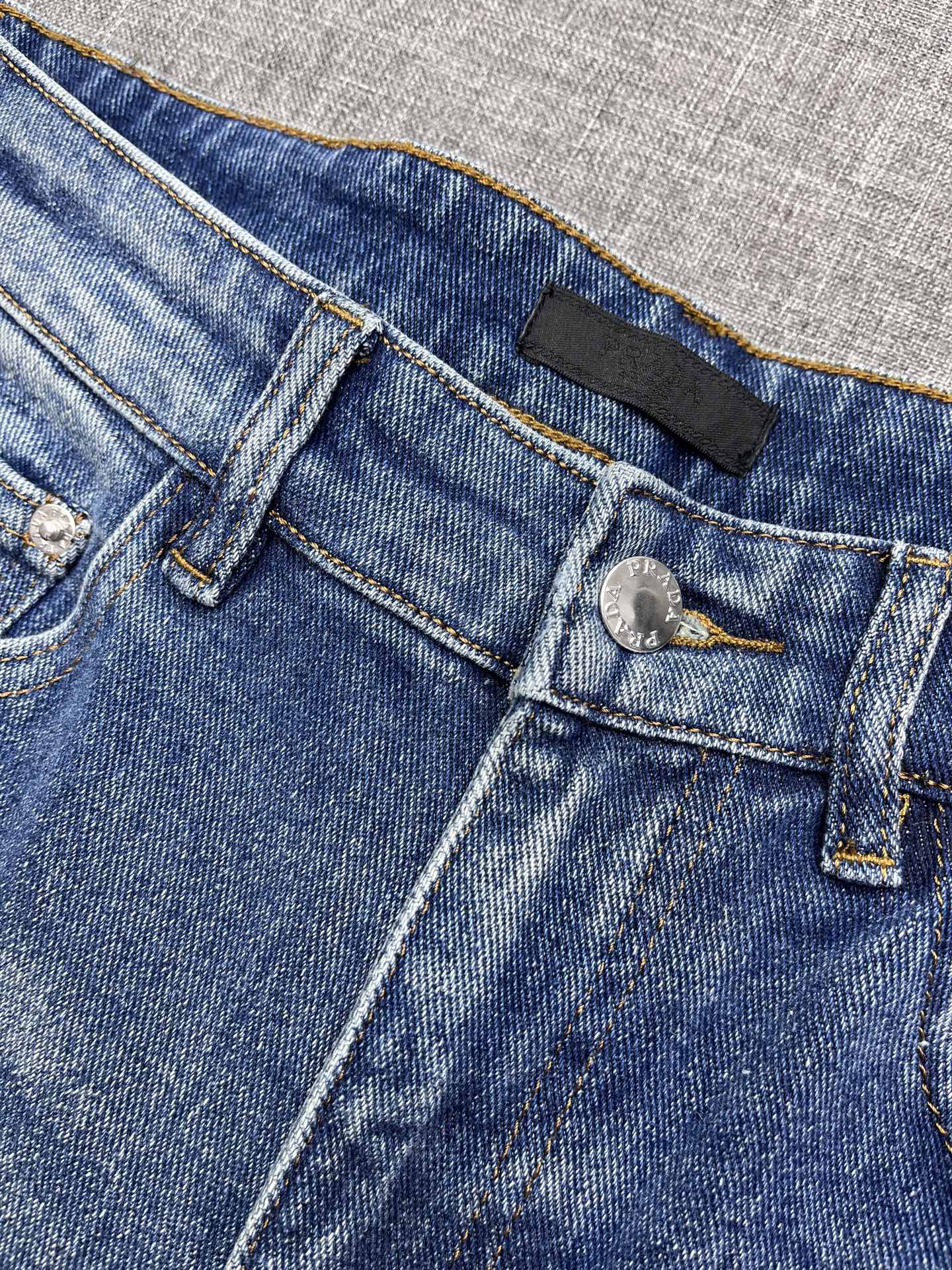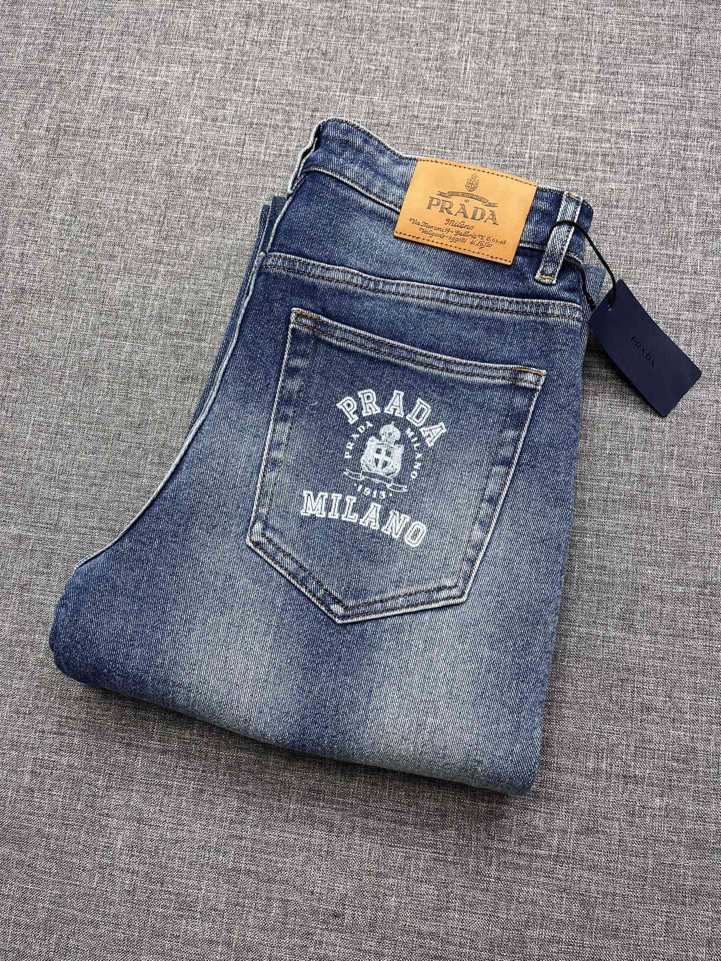 PRADA wide-leg jeans. 2025 rare trade order. Straight cut, slim fit, men's premium cotton stretch denim. Versatile four-season design. Exclusive release. Sizes 29-38.