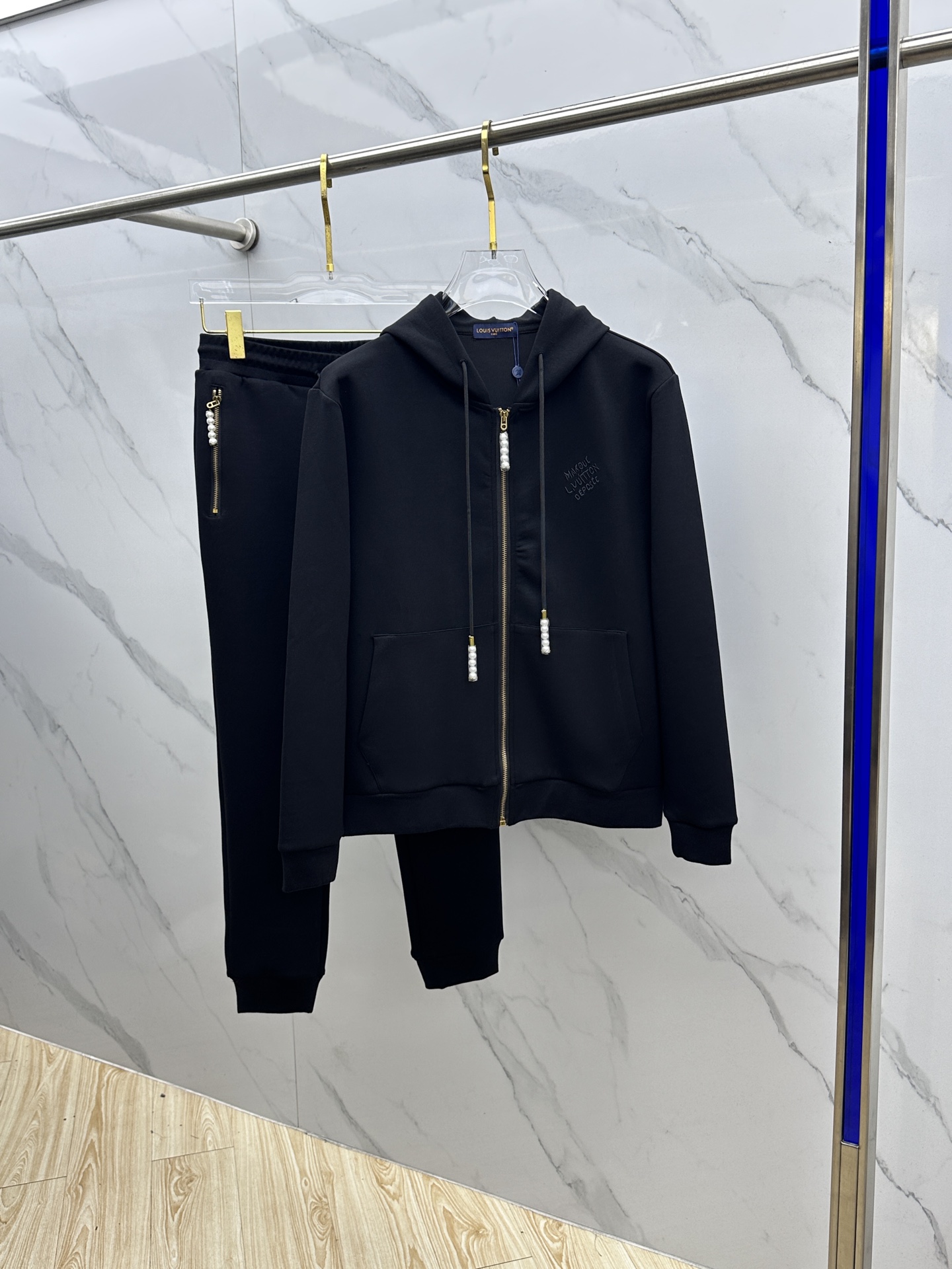Louis Vuitton 2025秋冬 men's zip-up stand collar casual set. Air-layer fabric, pill-resistant, durable. Classic logo, premium quality, imported materials, custom threads. Sizes: M-3XL.