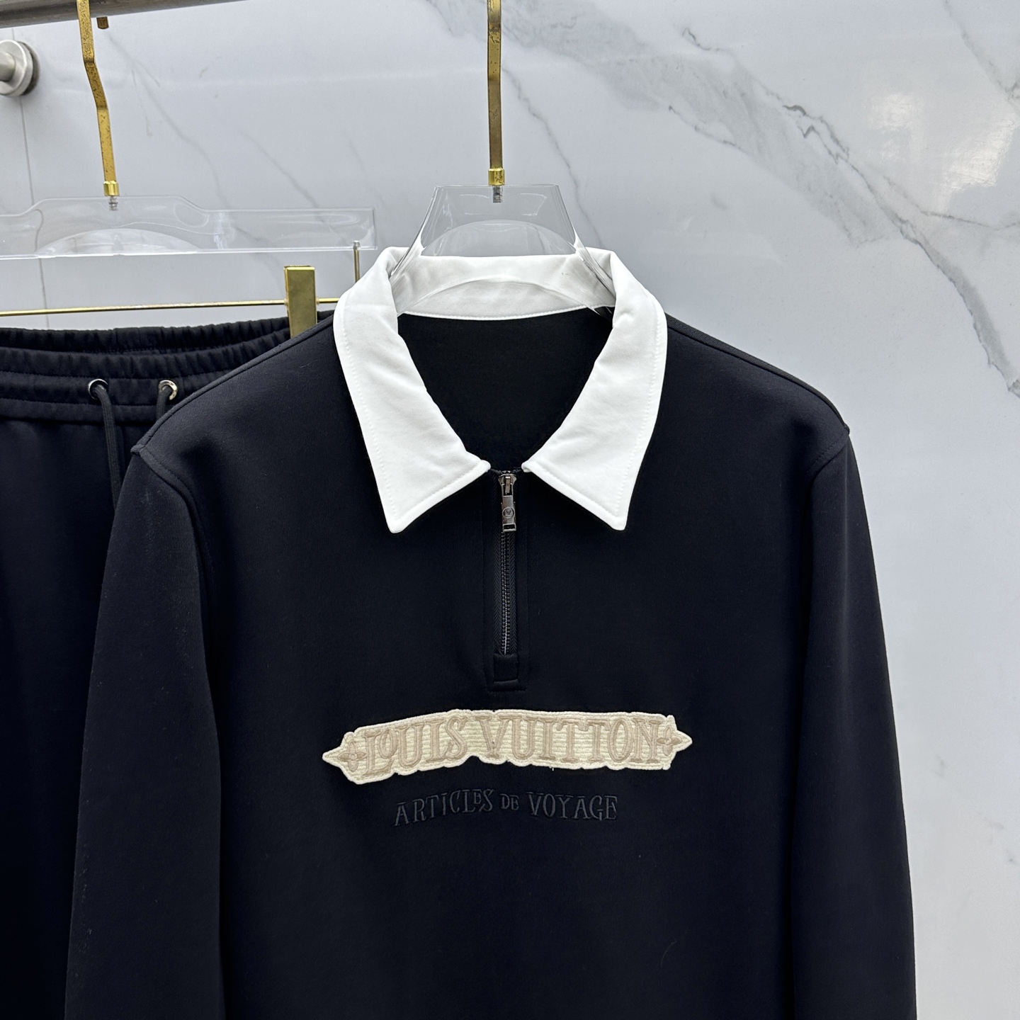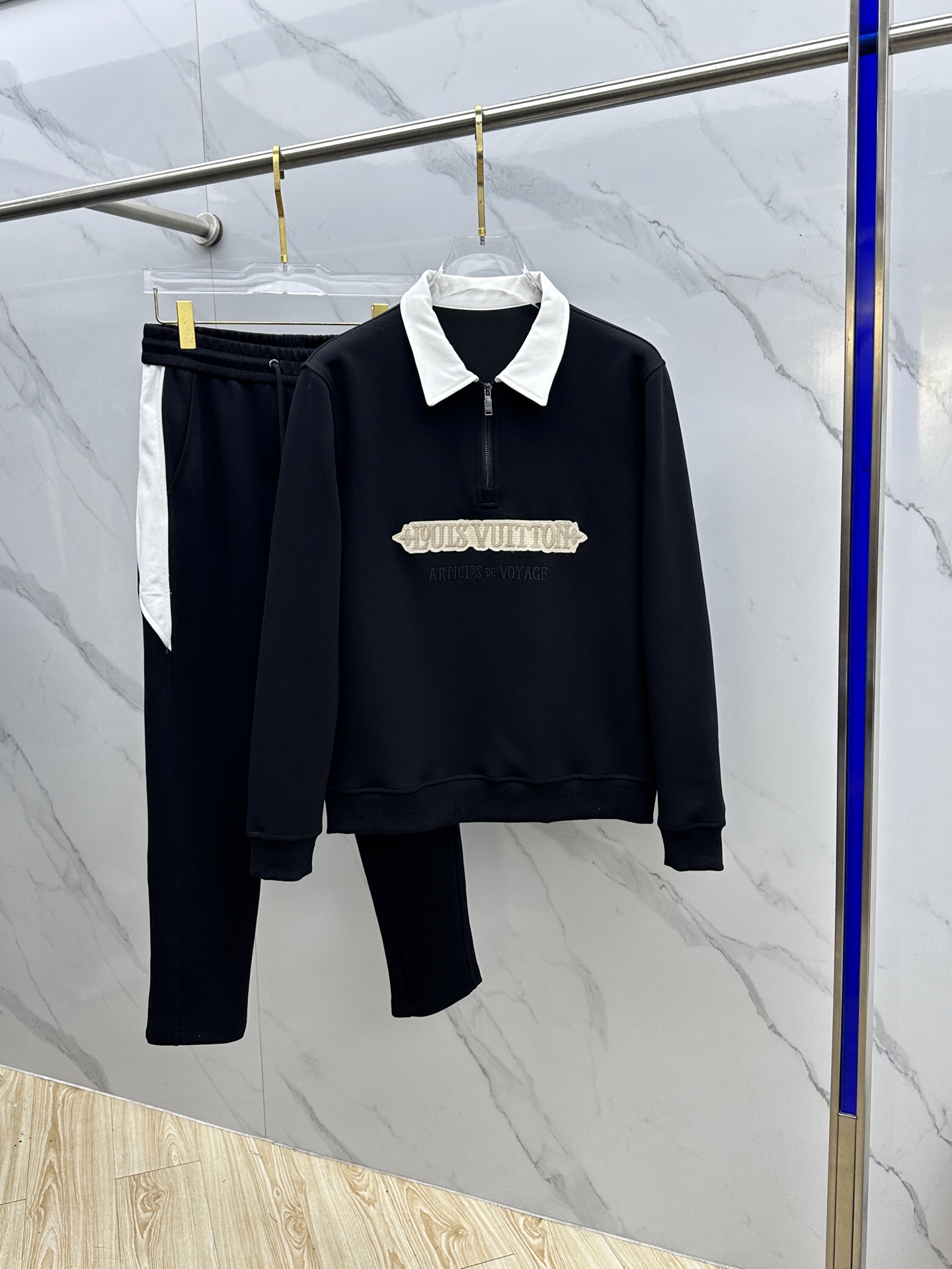 LV 2025 Fall/Winter men's semi-zip casual set. Premium cotton, no pilling, durable. Classic logo design, high-quality craftsmanship. Sizes: M-3XL.