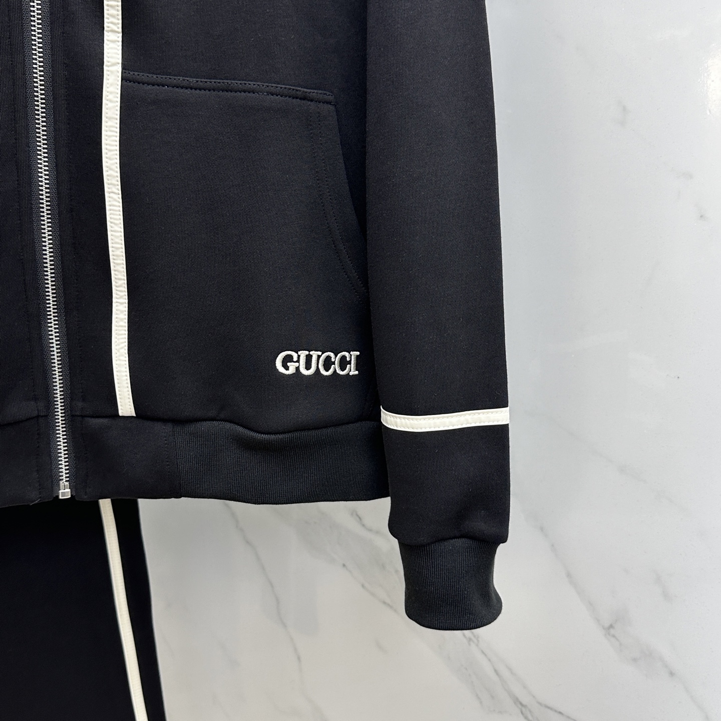 New GUCCI 2025 Autumn/Winter Men's Zip Hoodie Set. Premium air-layer fabric, fade-resistant. Classic logo design, top quality. Sizes: M-3XL.