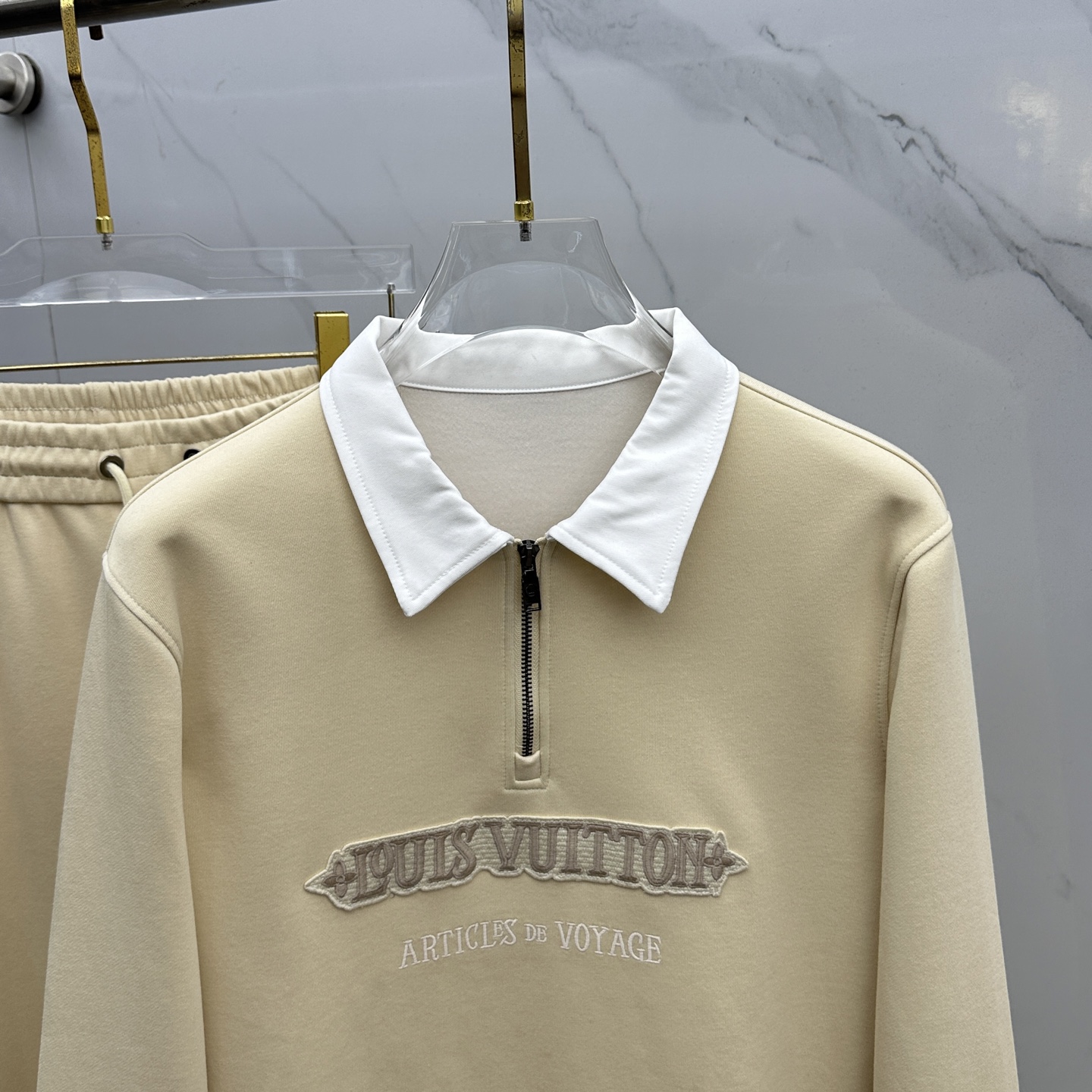 New LV men's semi-zip casual set. Premium cotton, no pilling, durable. Classic logo design. High-quality craftsmanship. Sizes: M-3XL.