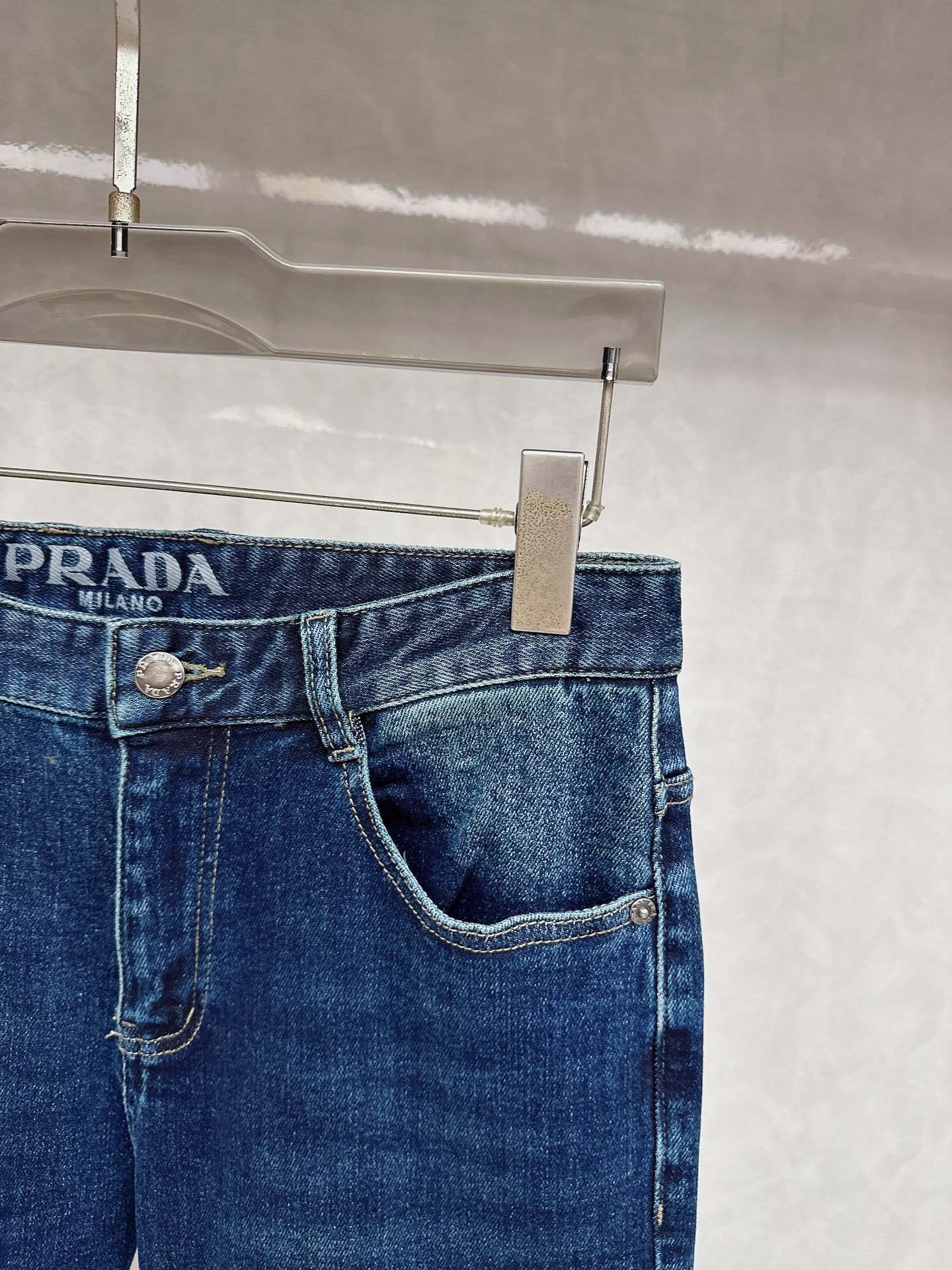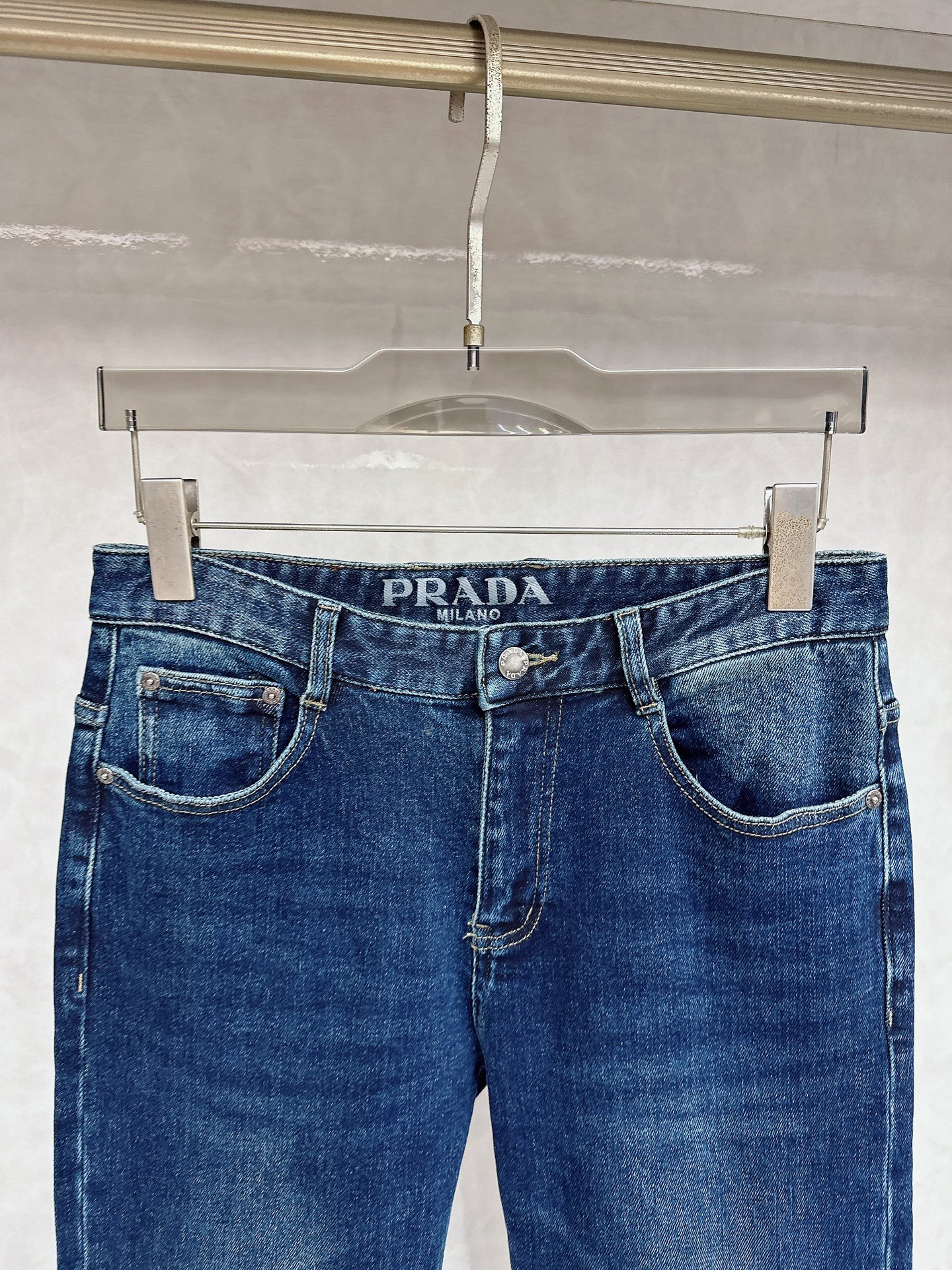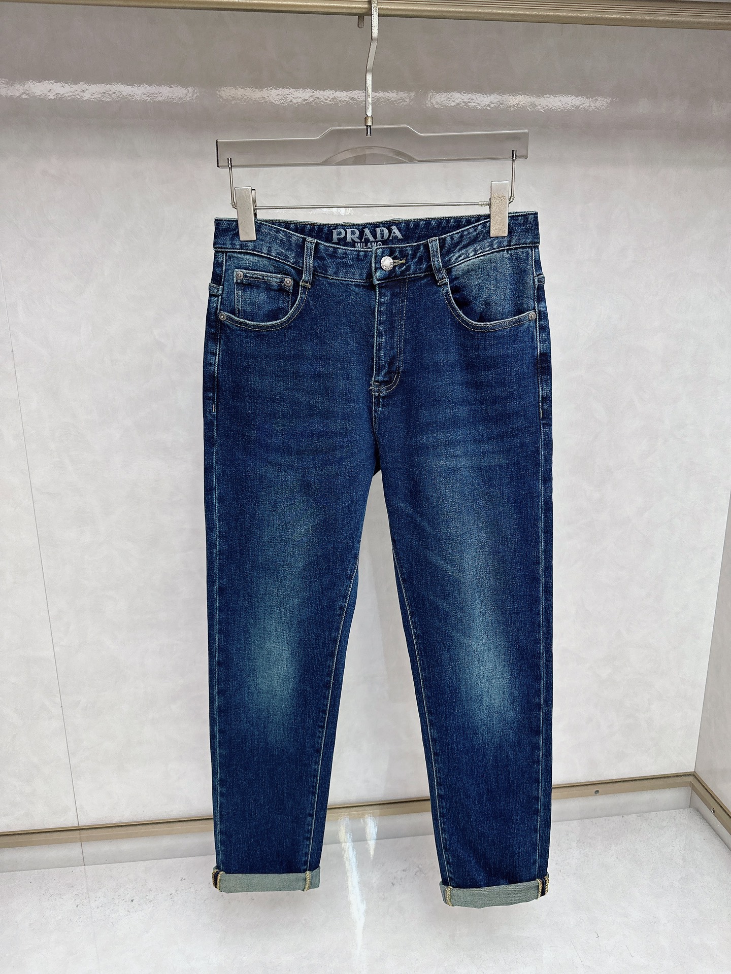 Prada autumn-winter new men's casual jeans, original quality, custom denim, logo design, hardware trim. Trendy and stylish. Sizes 30-40.