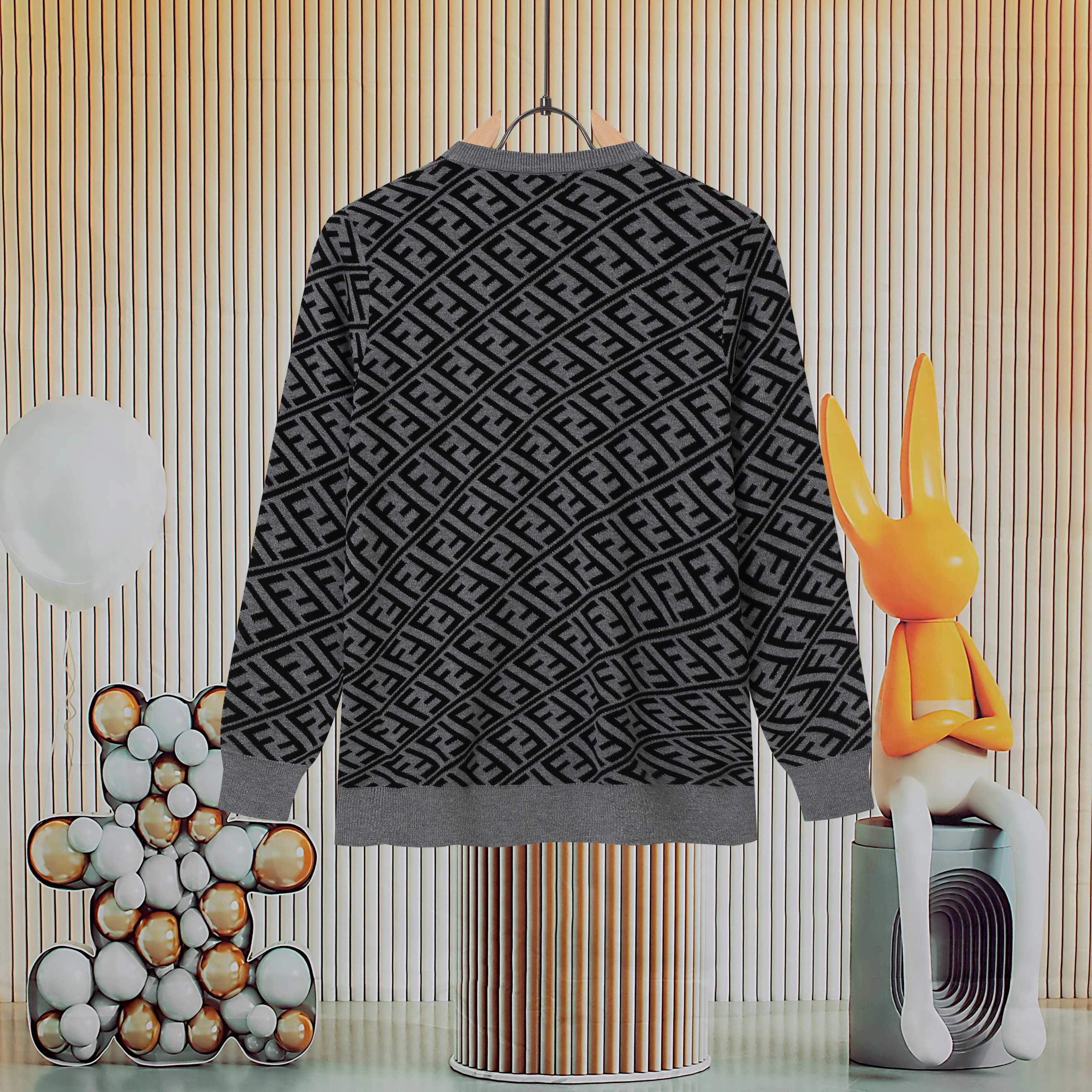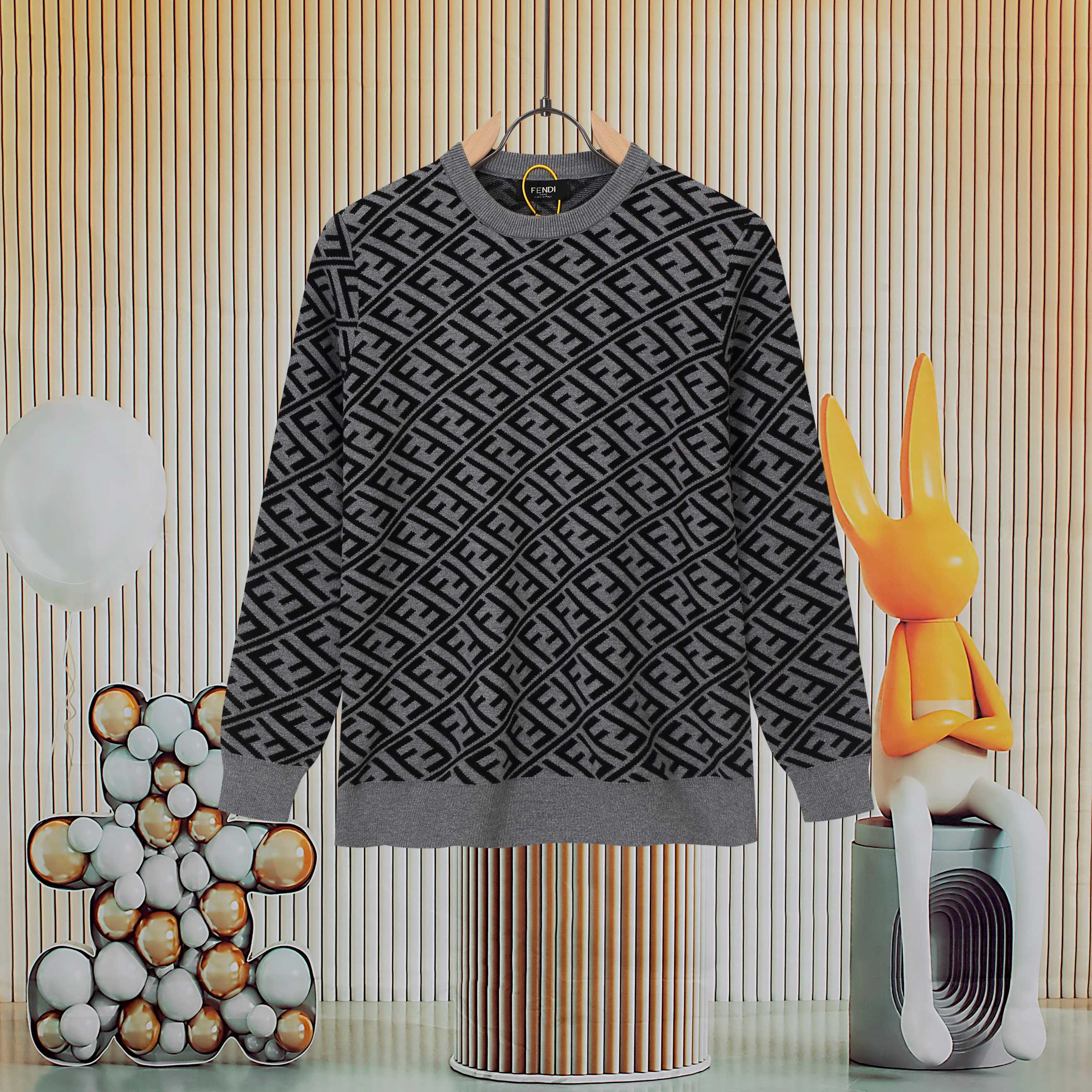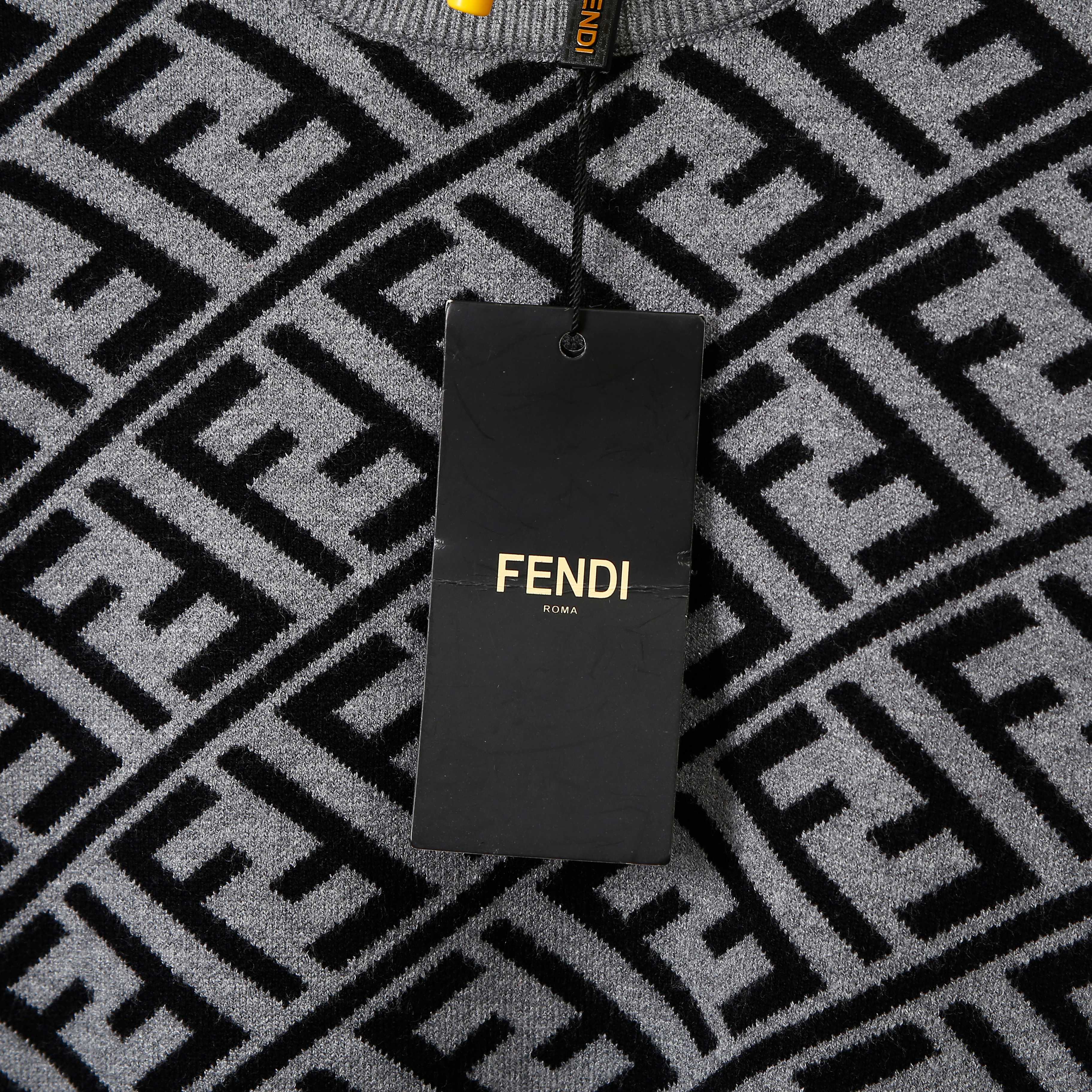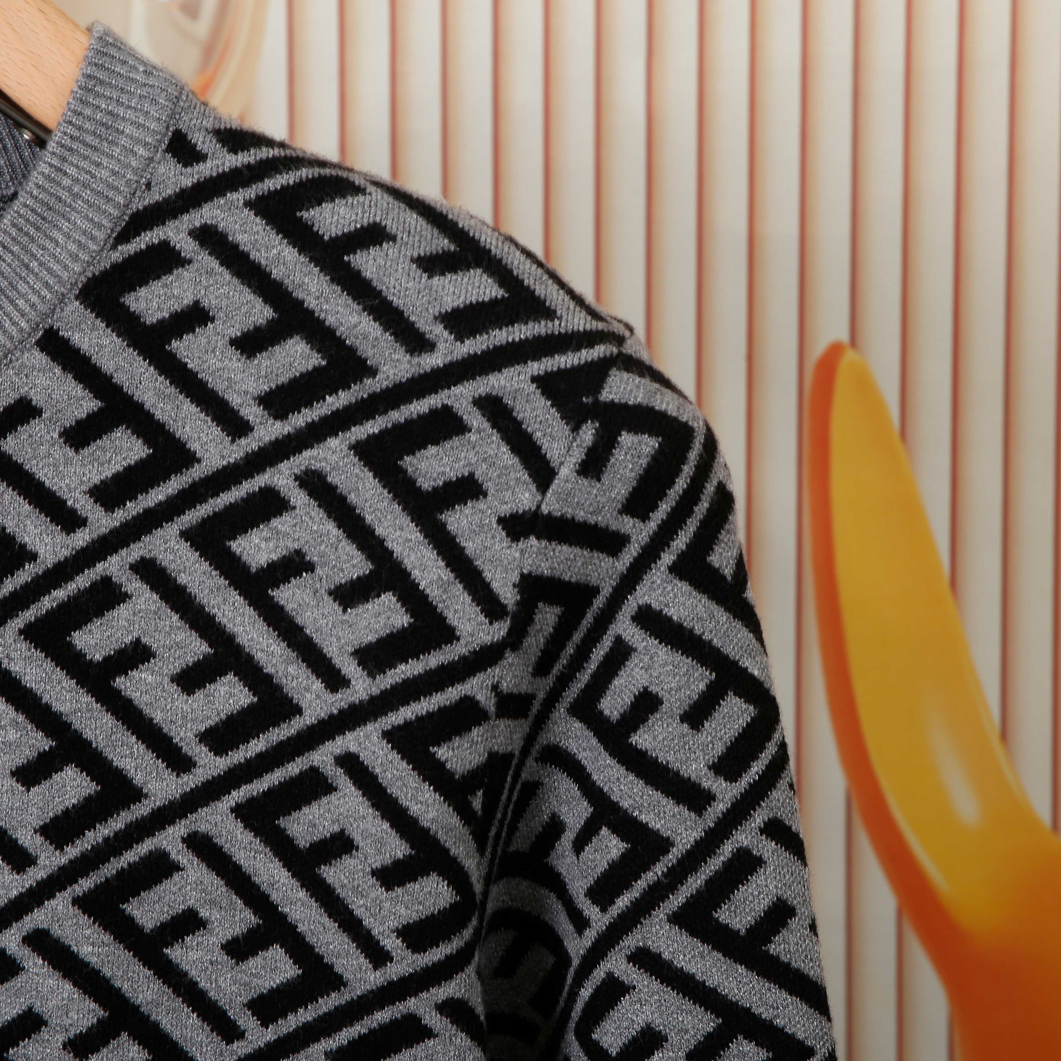 New popular Fendi item, double F patterned round-neck knitted sweater. Uses high-end core-spun yarn fabric, really great. Pairs well with anything for a fashionable look. Workmanship and details are 1:1 synchronized with the official website. Absolutely pill-resistant, non-irritating to the skin, feels super comfortable to the touch. The cut is especially comfortable, appearance is very stylish, color combination is beautiful, craftsmanship is extremely detailed. Highly recommended. Quality can be compared to the market, not afraid of competition.