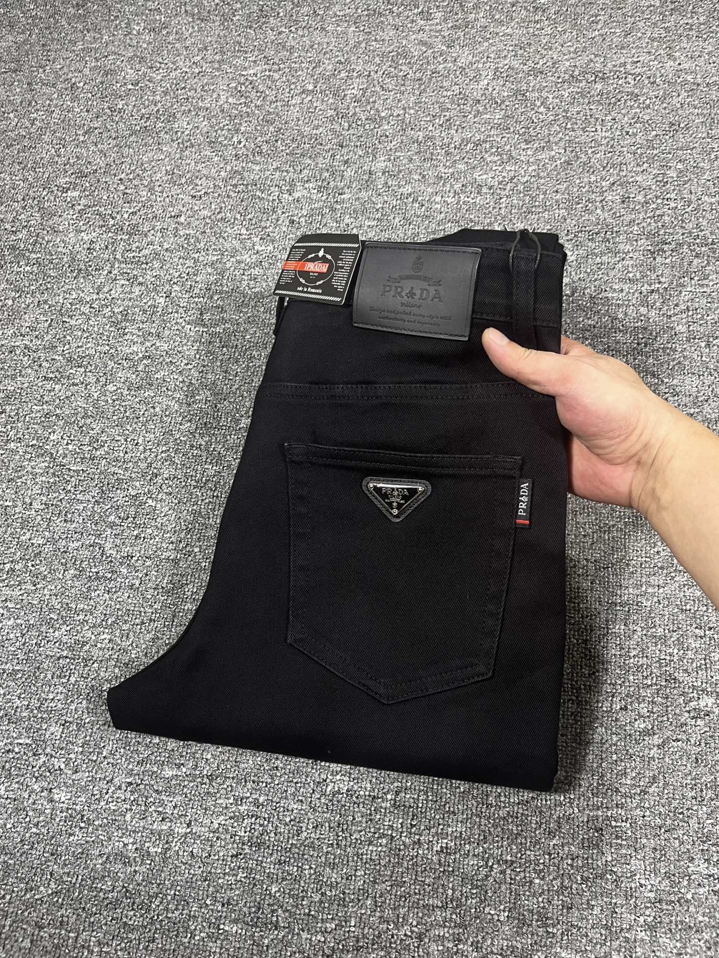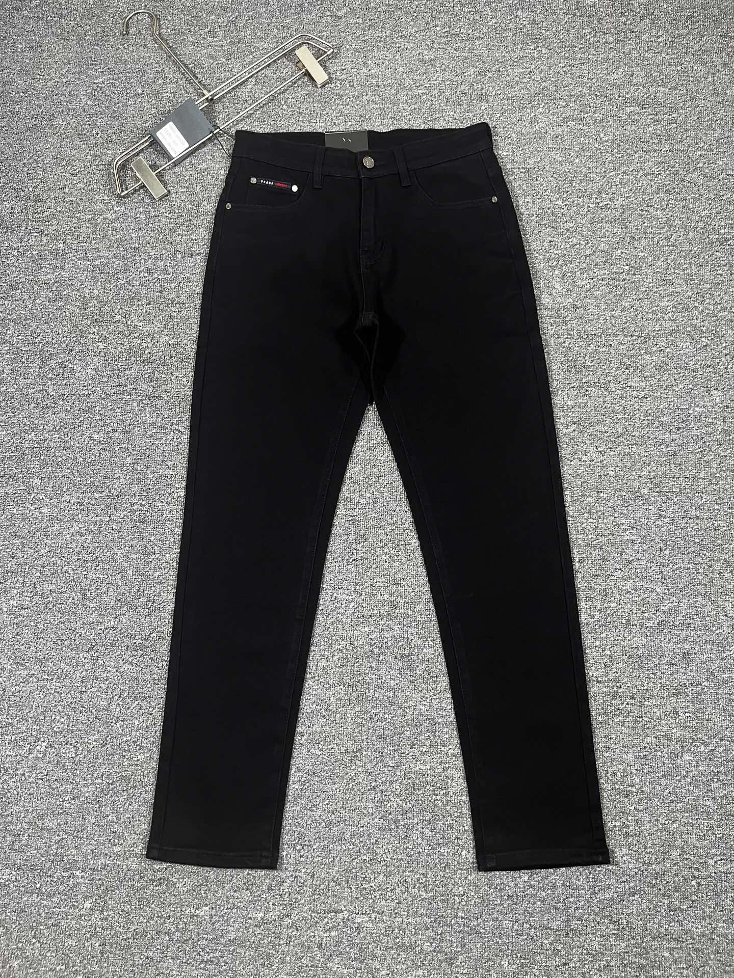 Prada 2025 early fall men's jeans. Original fabric, premium denim, complex wash process, unique color effect. Genuine leather patch, high-end metal hardware. Comfortable, breathable, stylish fit. Sizes 29-38, no 37.