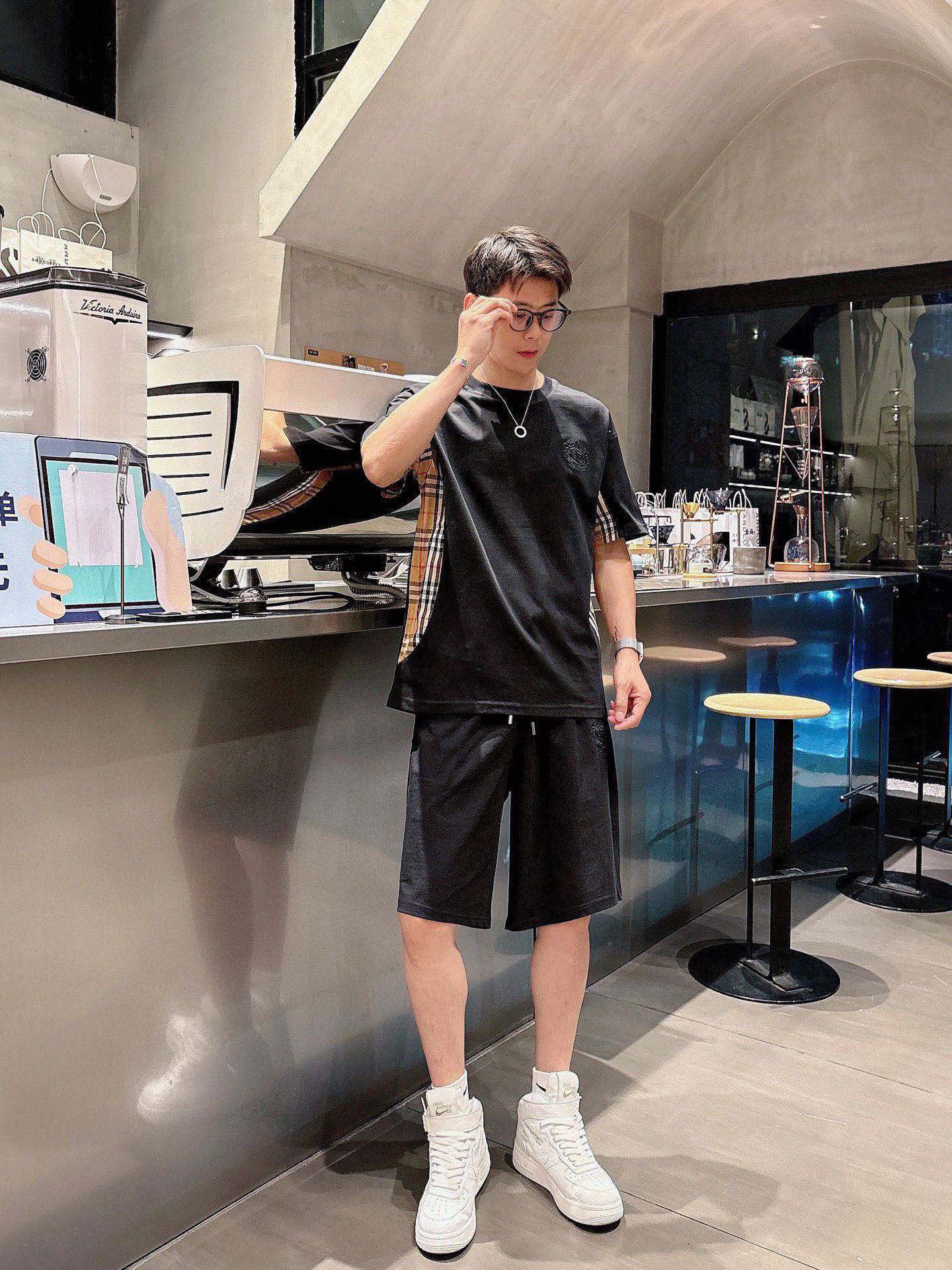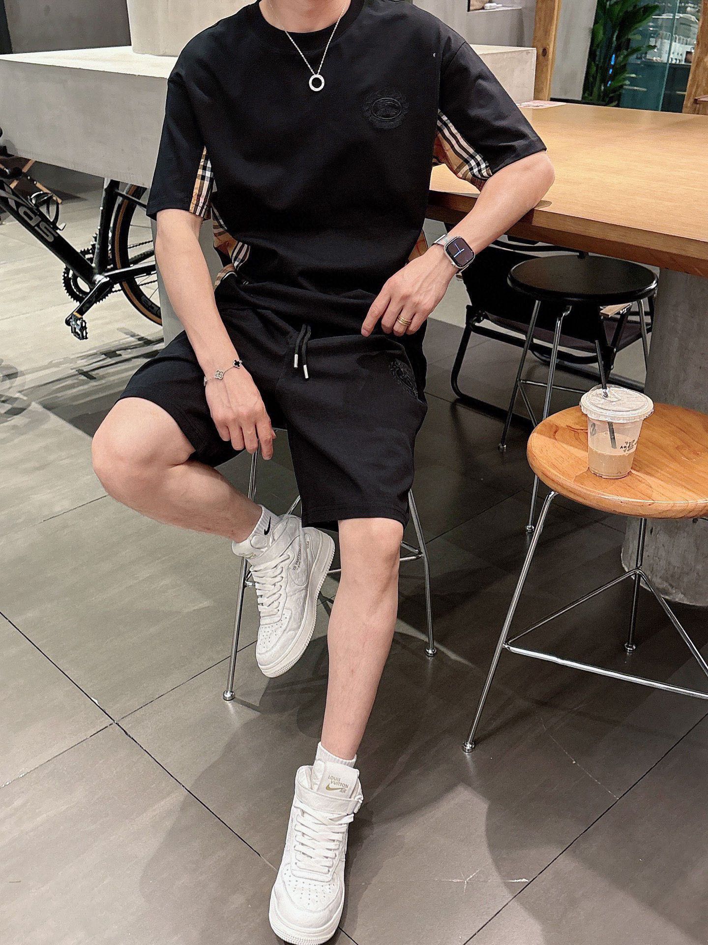 BURBERRY 2025 short sleeve round neck shorts set. Cotton fabric, breathable and comfortable. Classic logo, stylish and versatile. Sizes: M-3XL (up to 190kg).