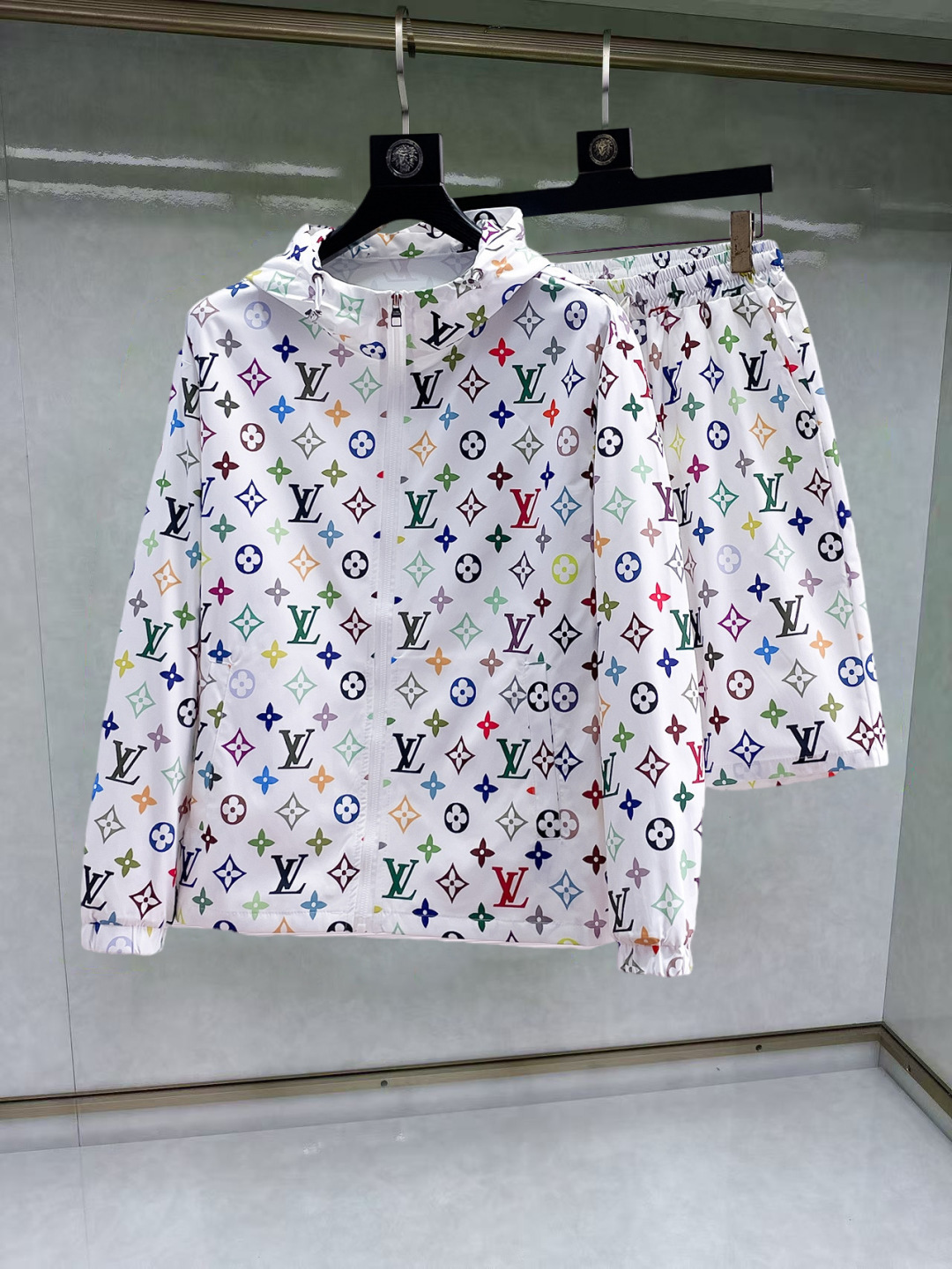 Louis Vuitton 2025 summer sun protection set. Overseas edition, custom luxury, soft & breathable fabric. Sizes M-XXXL. Provide height/weight when ordering.