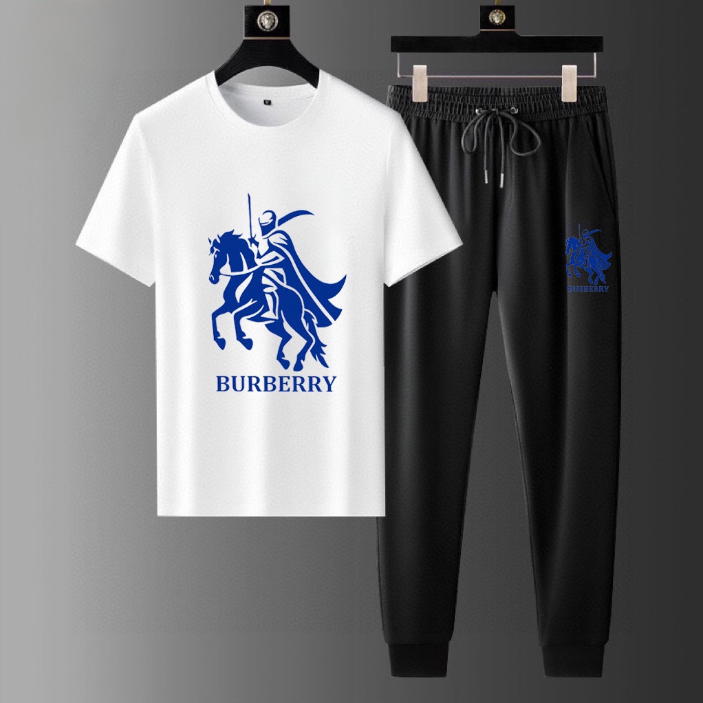 BURBERRY men's summer dual-gloss luxury set. Imported fabric, trendy, versatile. Sizes M-5XL (up to 220 lbs).