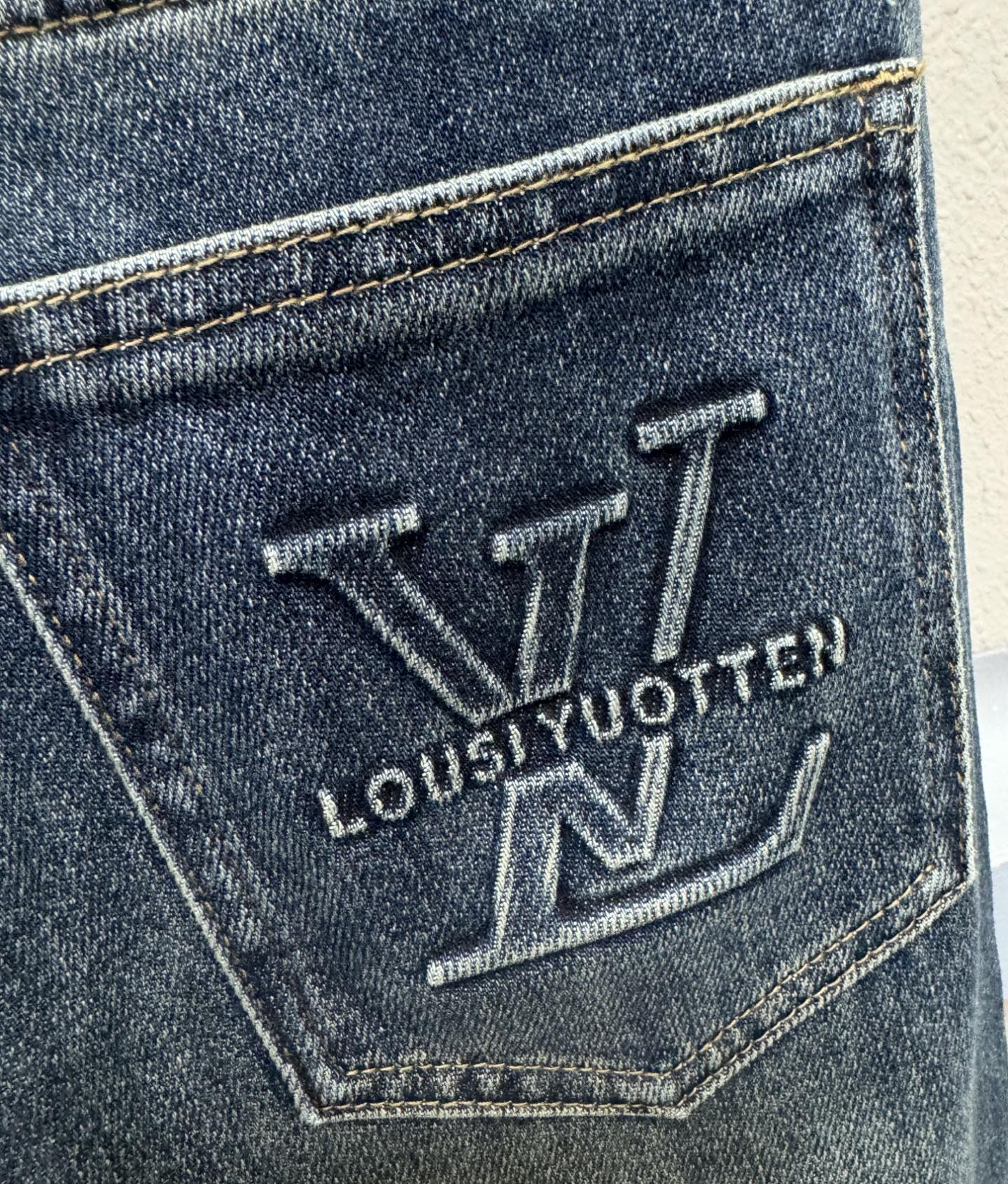 LV Louis Vuitton 2025 new jeans. Original heavy craftsmanship, classic logo, complete labels. Custom denim fabric, matches store version. Sizes 29-38.