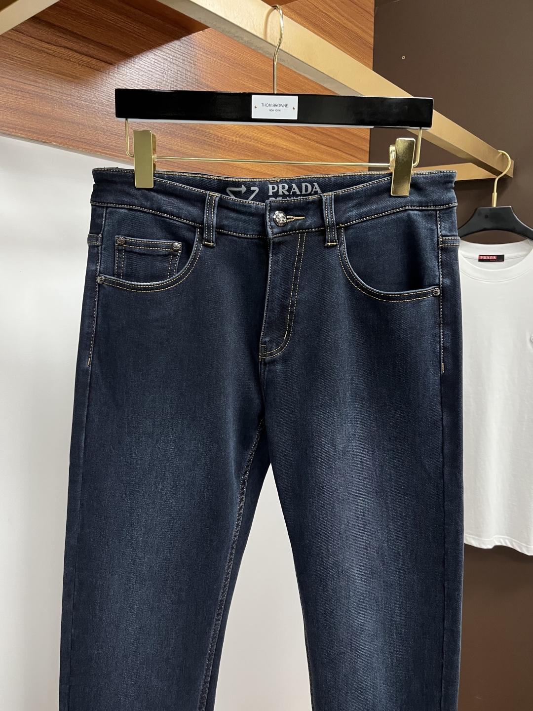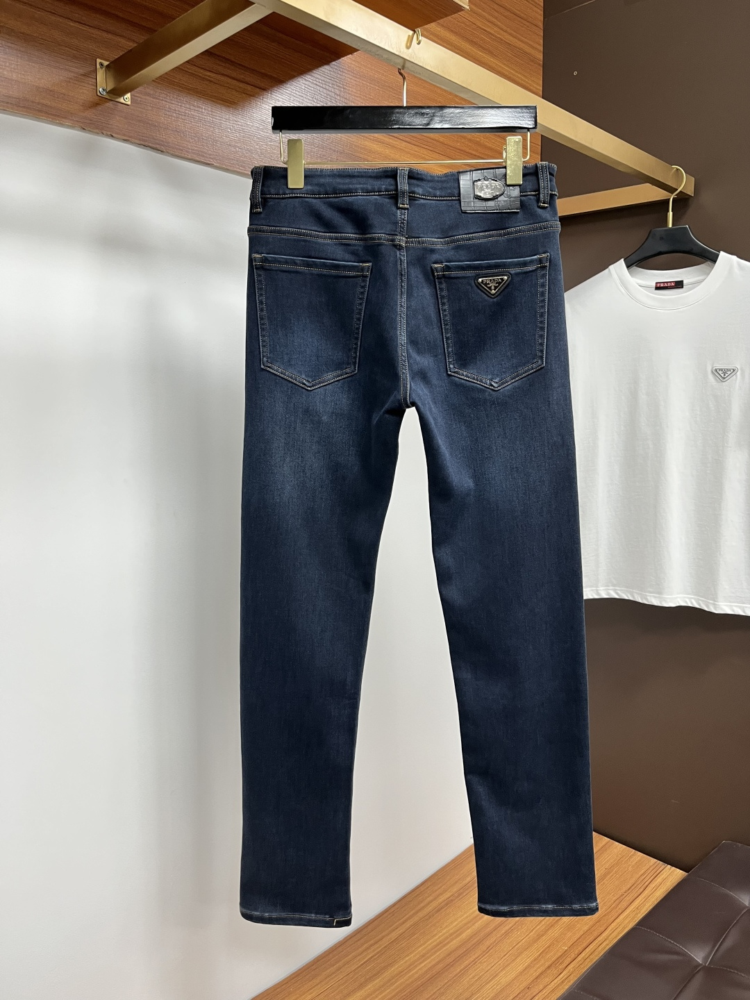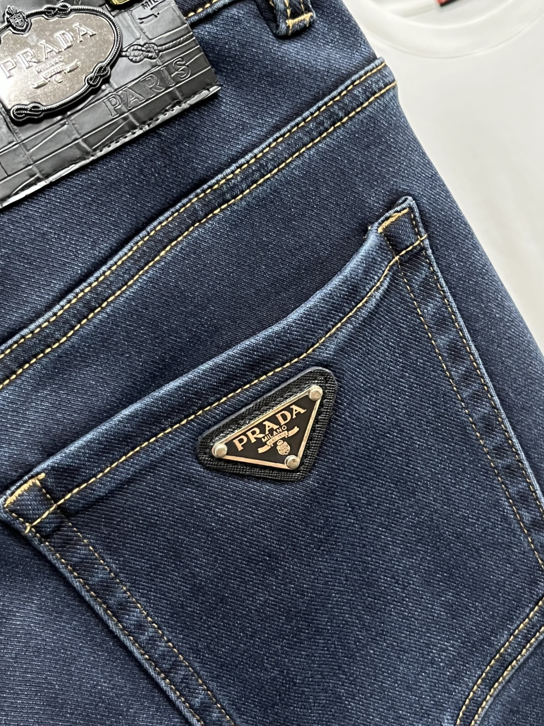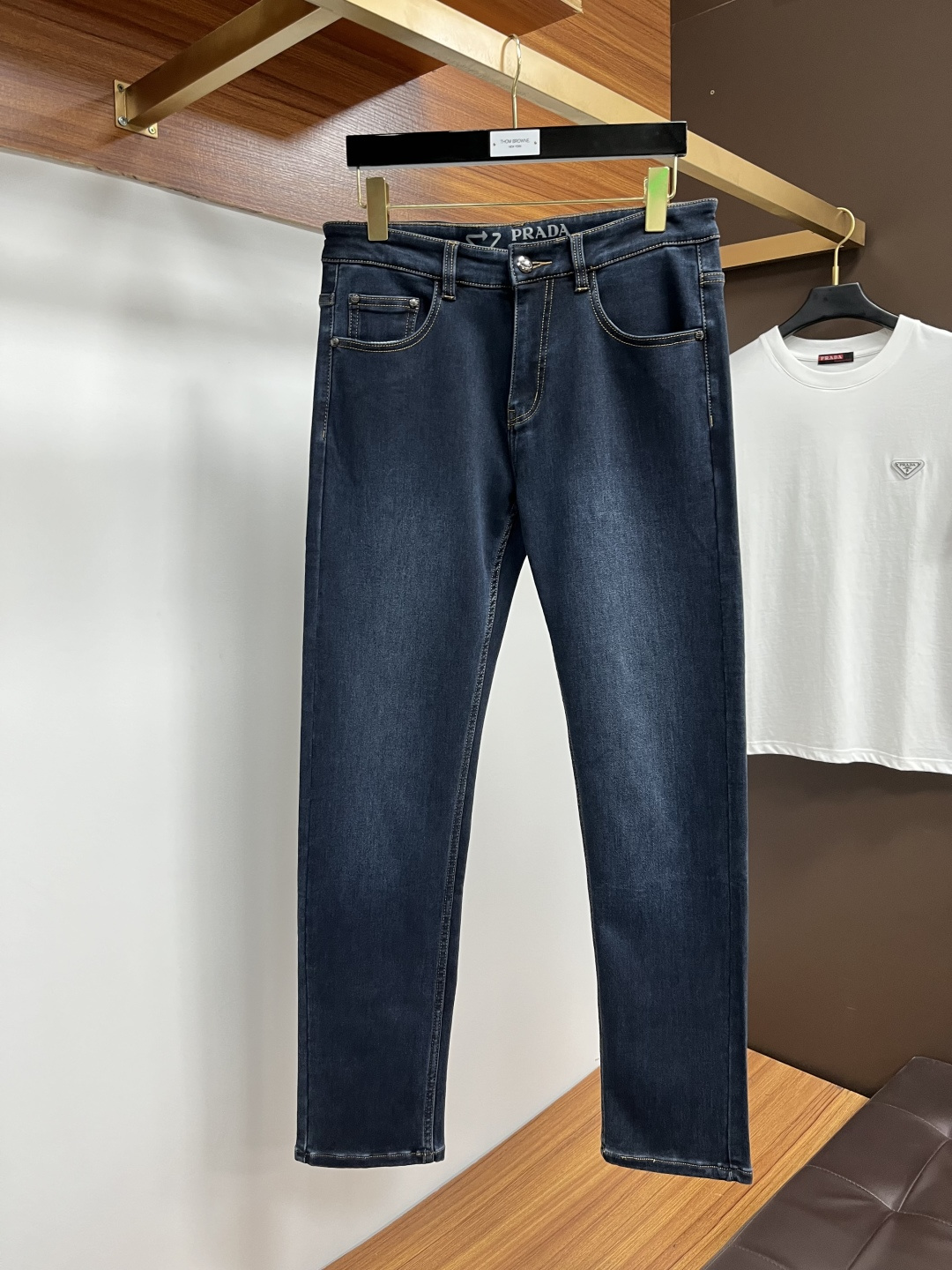 Prada 2025 Fall Men's European Business Casual Jeans. High-quality, comfortable fabric. Versatile for office or weekends. Slim fit, sizes 29-40.